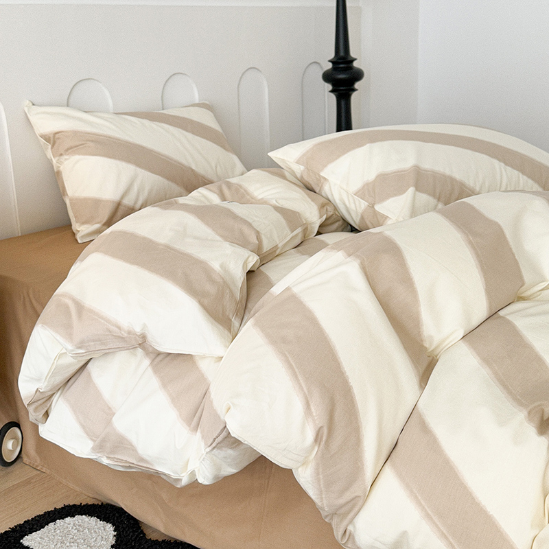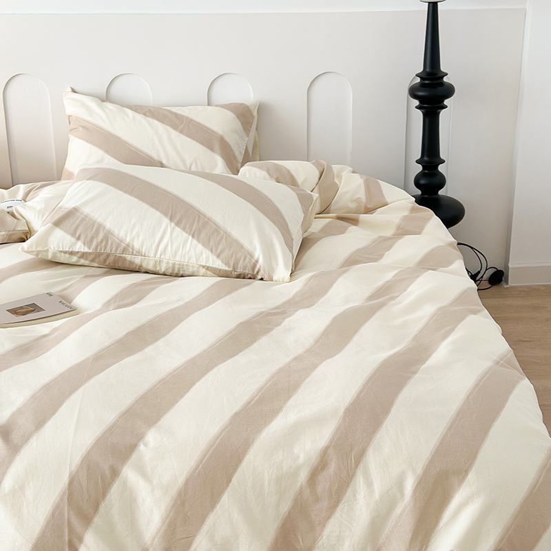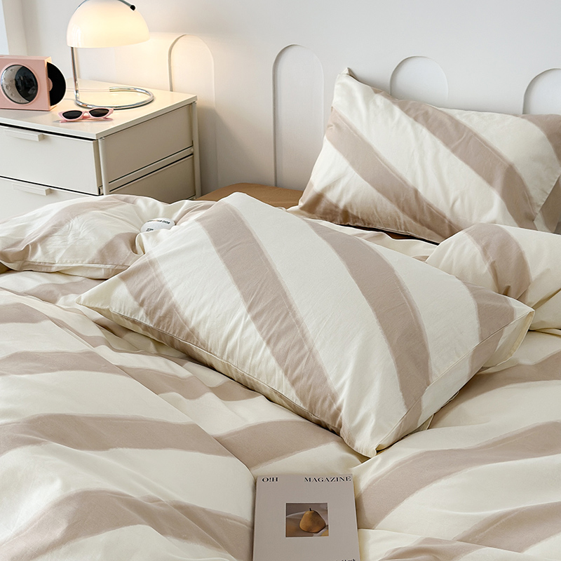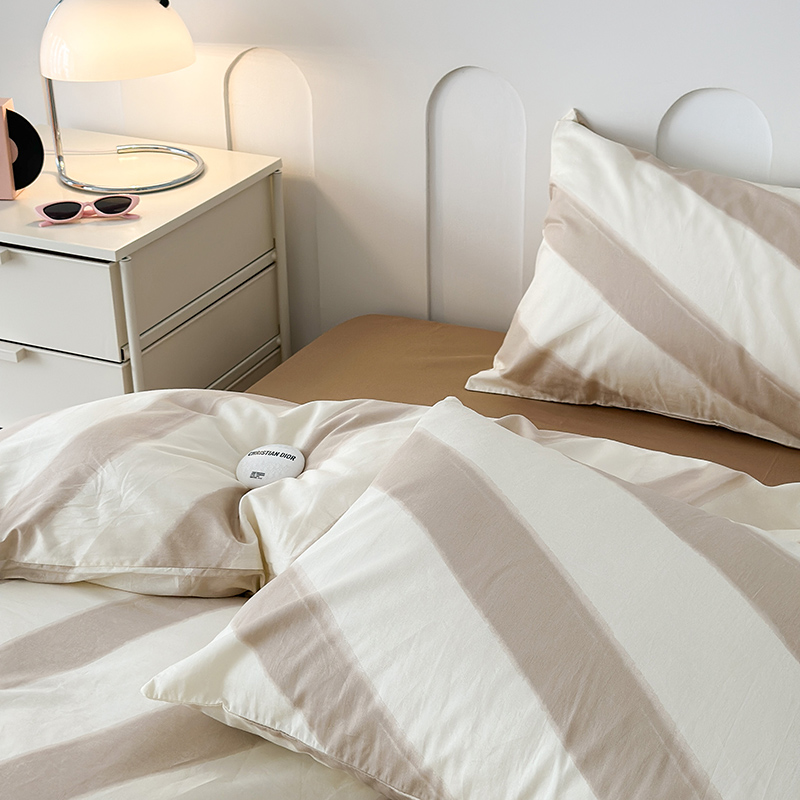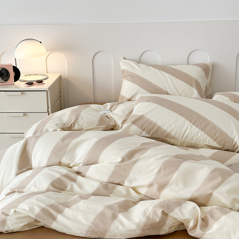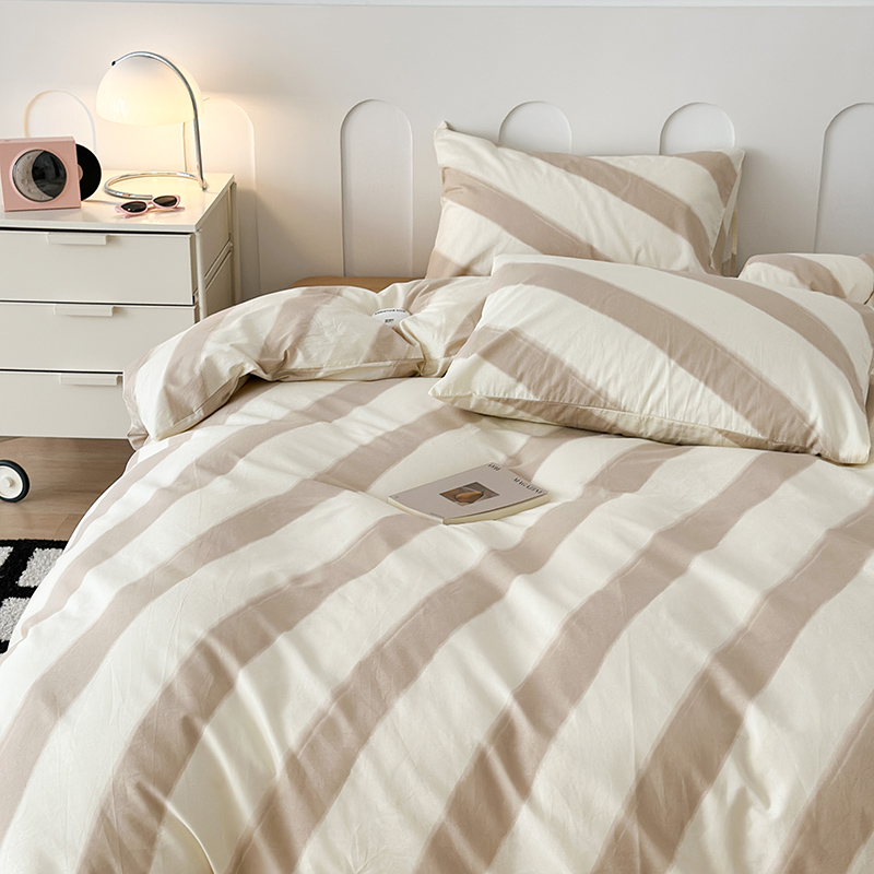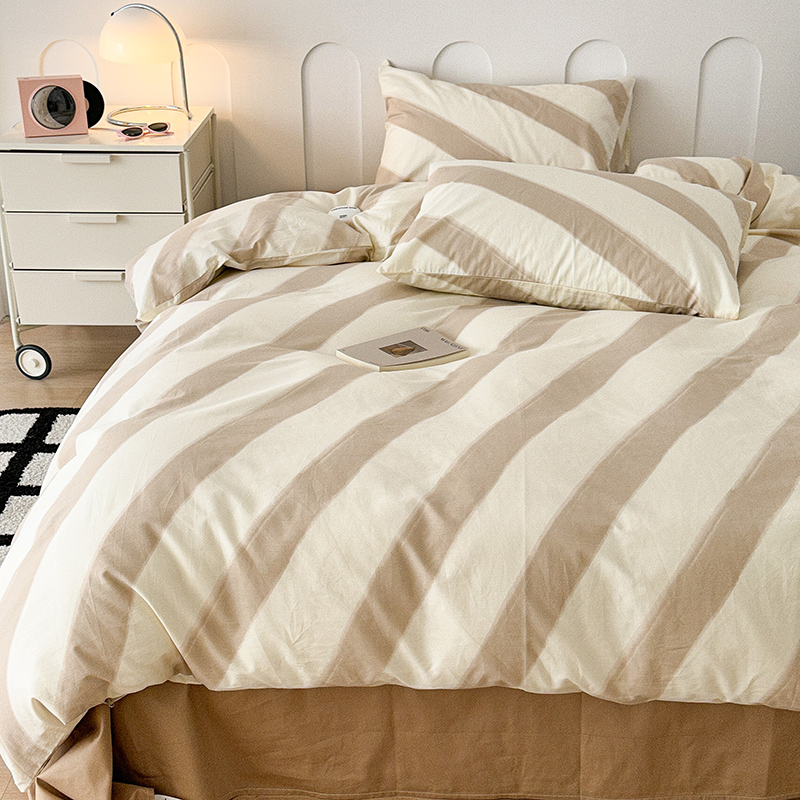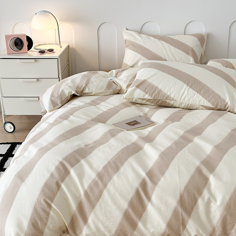 昔可家纺 2023新款多巴胺少女风条纹全棉四件套 奶茶条