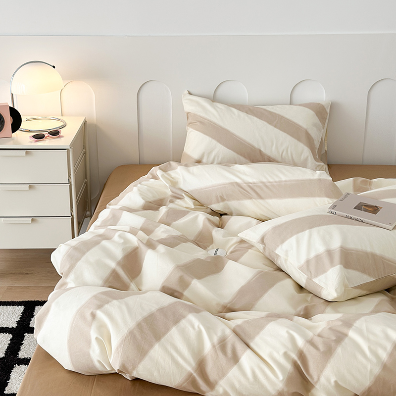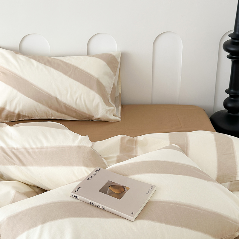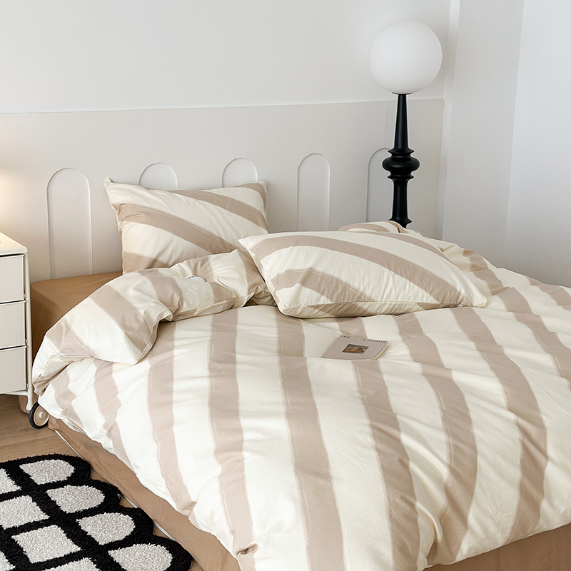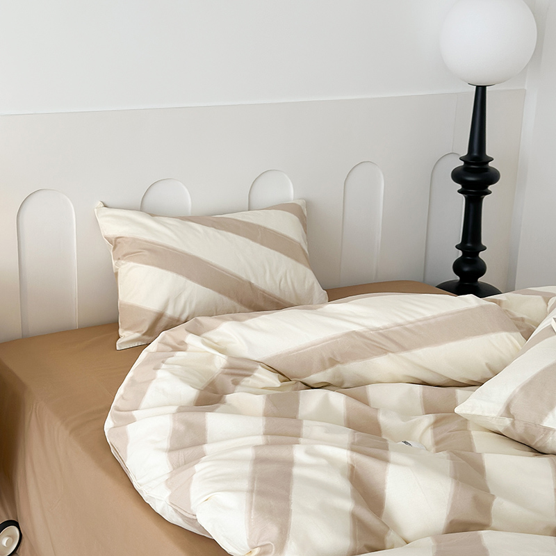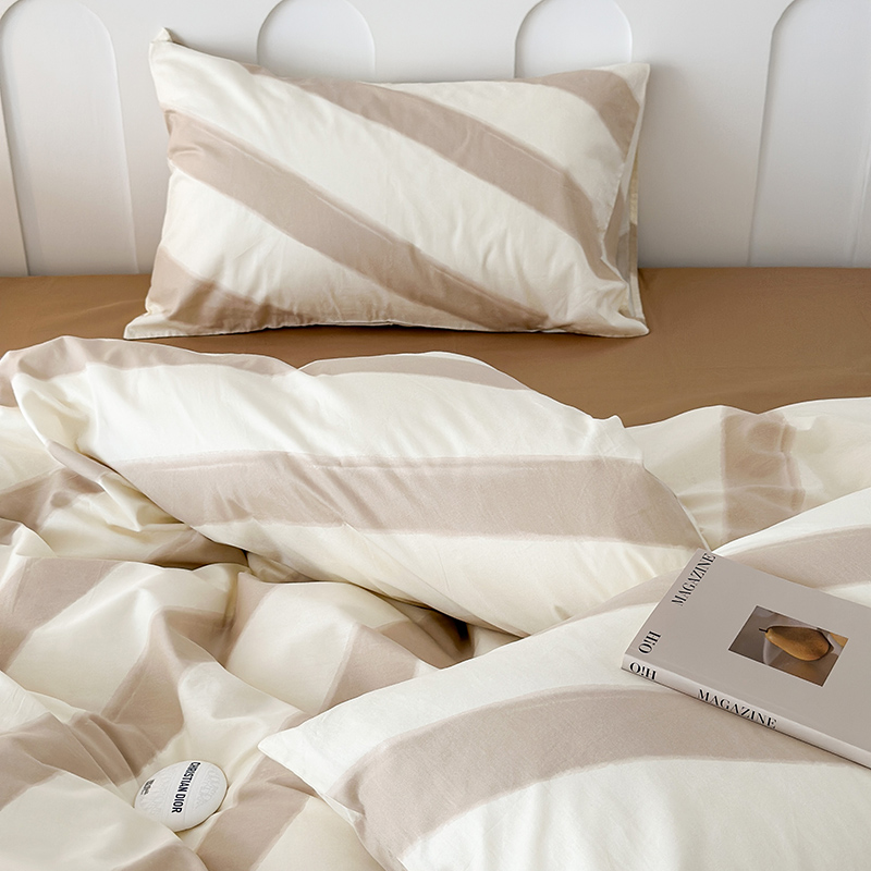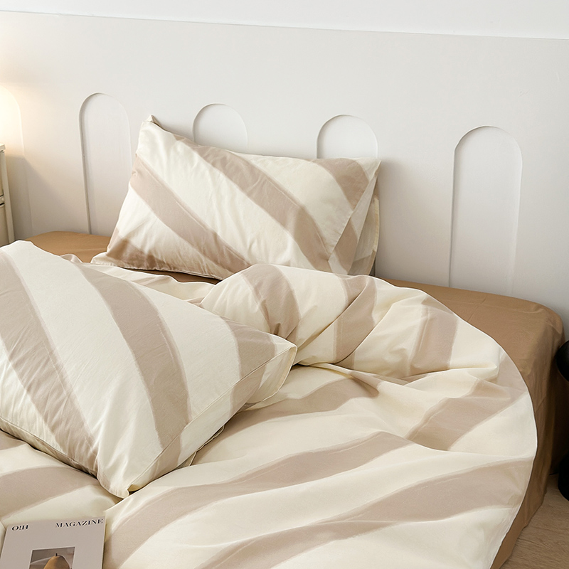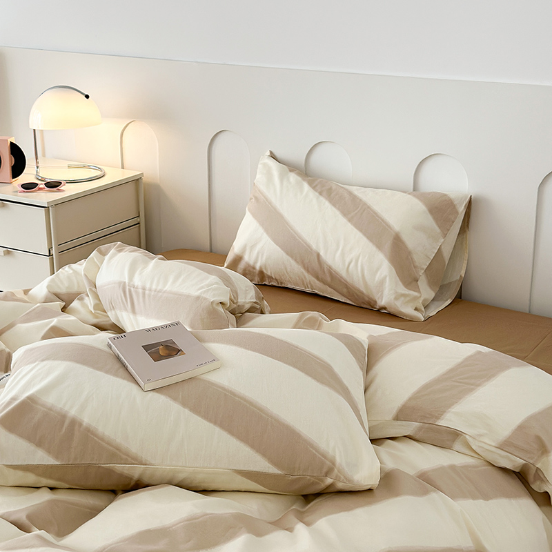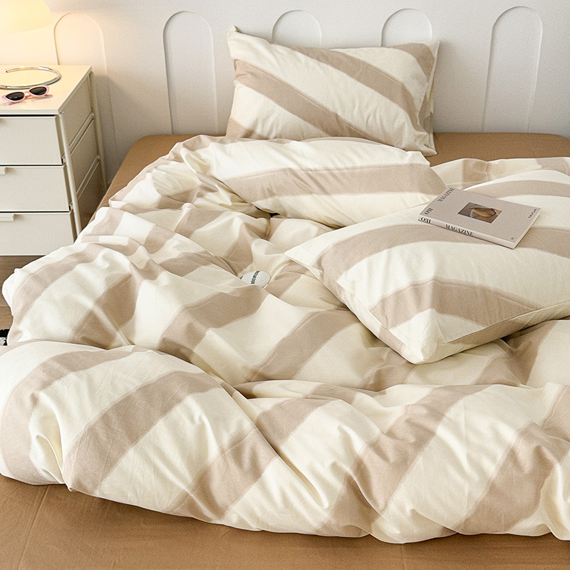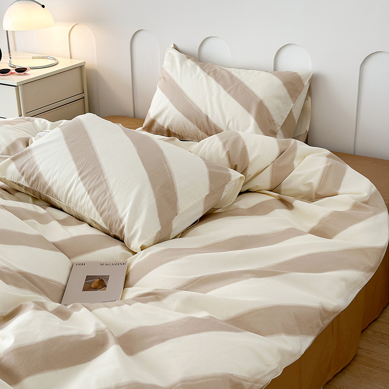 昔可家纺 2023新款多巴胺少女风条纹全棉四件套 奶茶条