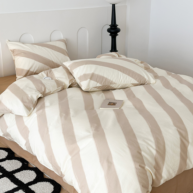 商品名称:昔可家纺 2023新款多巴胺少女风条纹全棉四件套 奶茶条