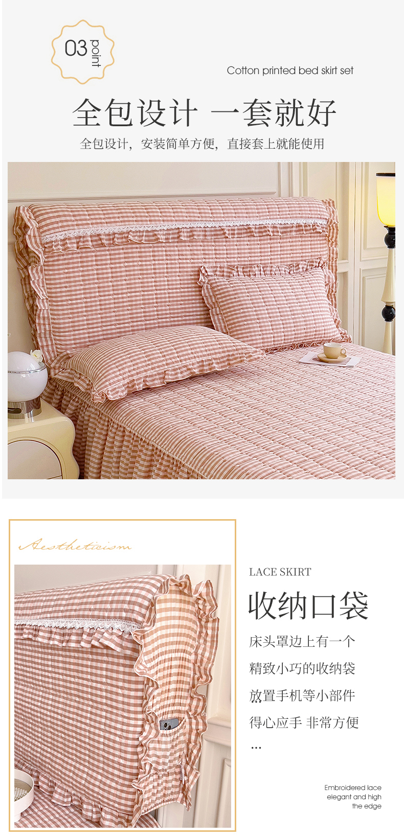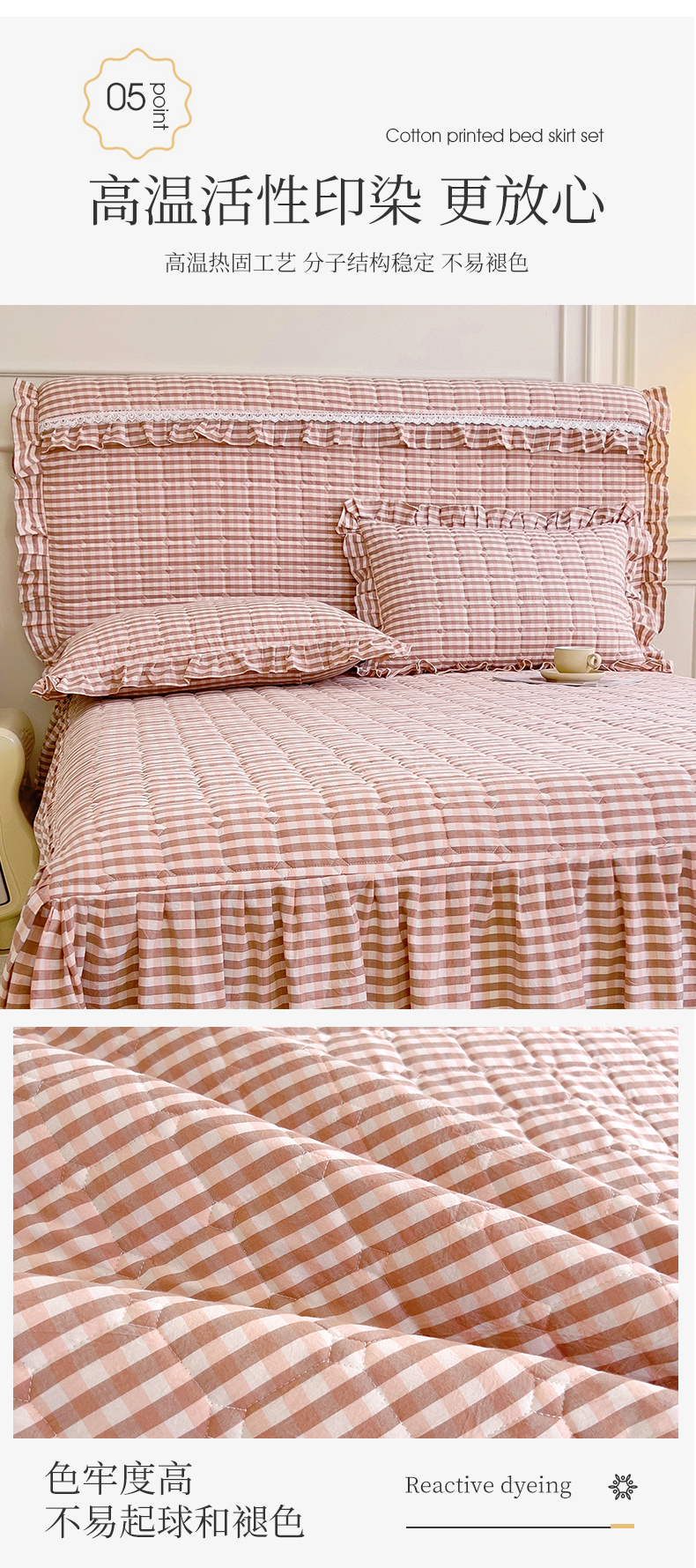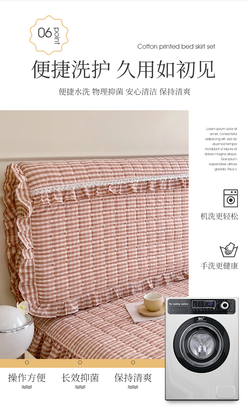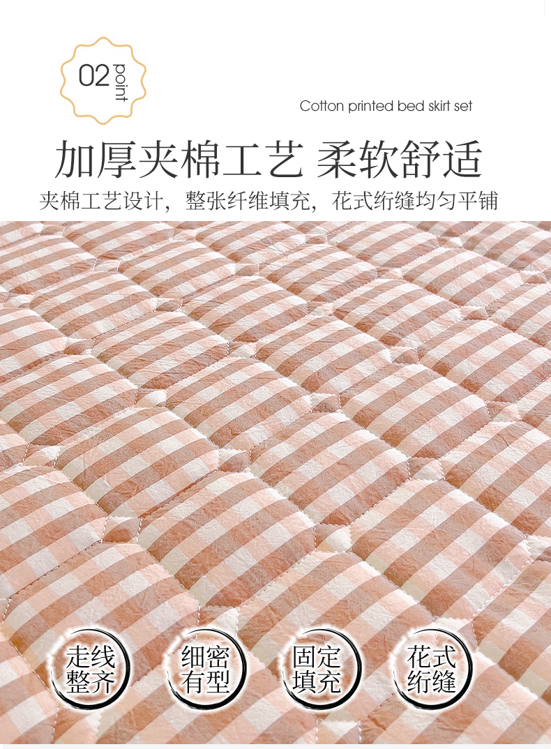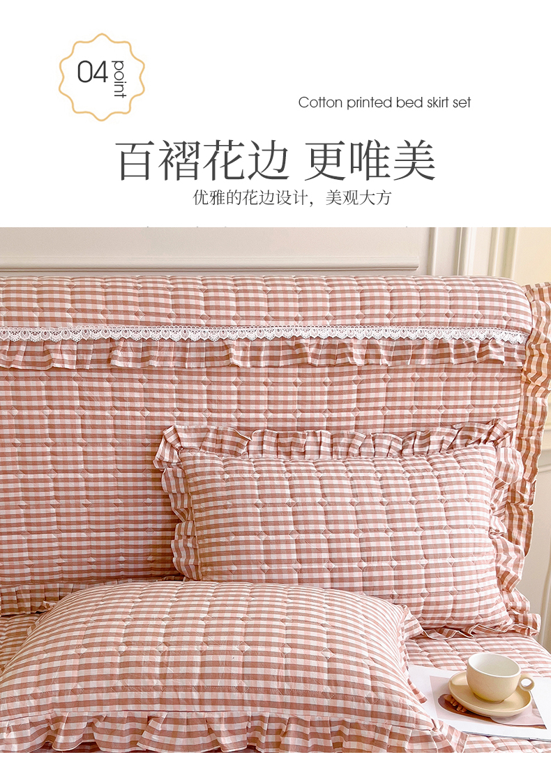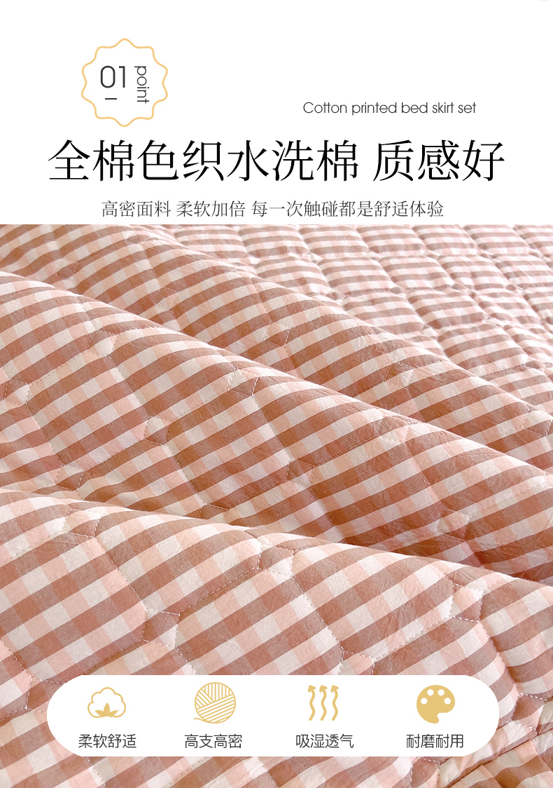 (总)十个点家纺 2025新款加厚磨毛木棉床裙三件套-格小格系列,格小格-粉,格小格-金驼,格小格-咖,格小格-兰,格小格-绿,格小格-玉