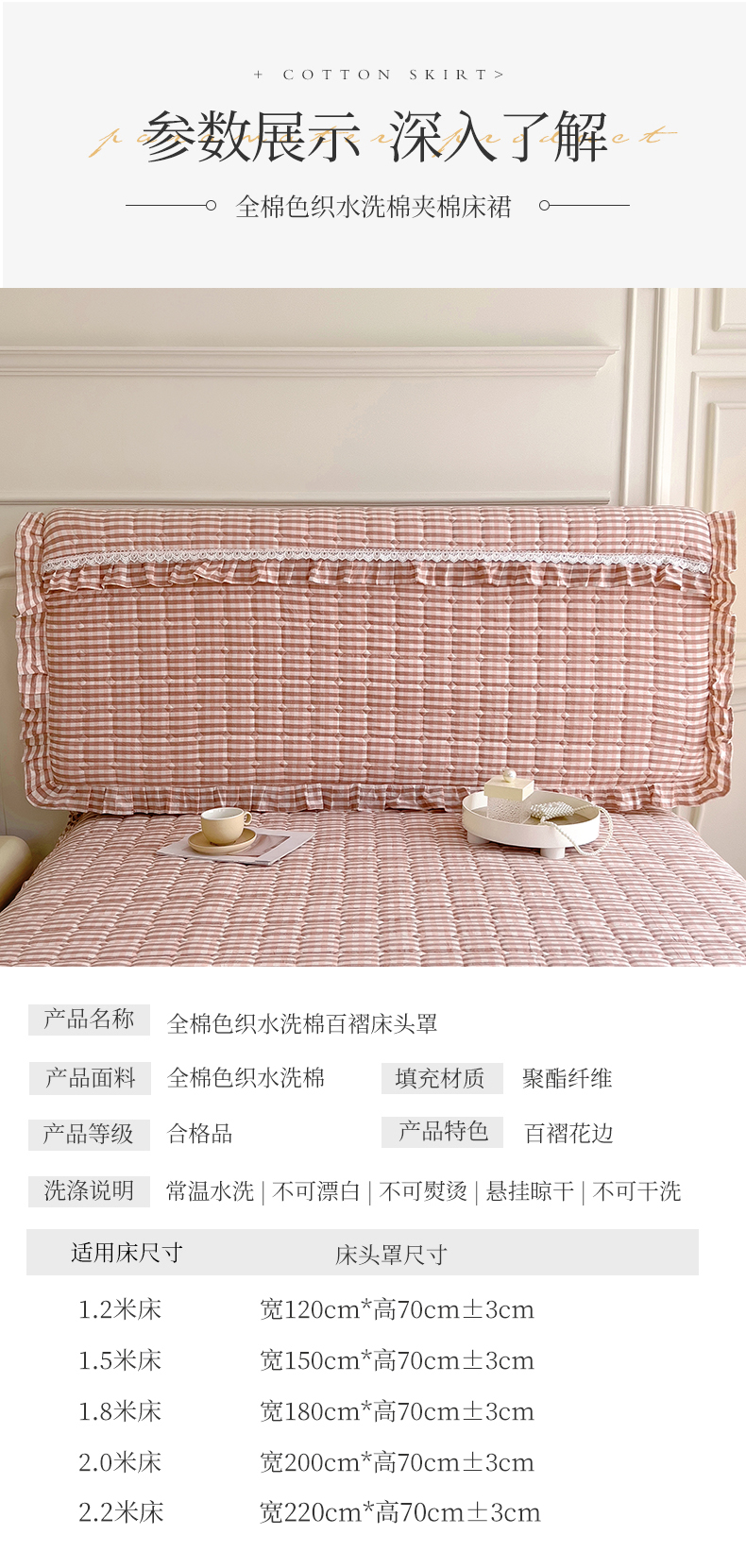 (总)十个点家纺 2025新款千鸟格磨毛绗缝夹棉纯色花边床头罩,经典白色,经典兰色,经典浅灰,经典浅驼,经典深灰,经典玉粉
