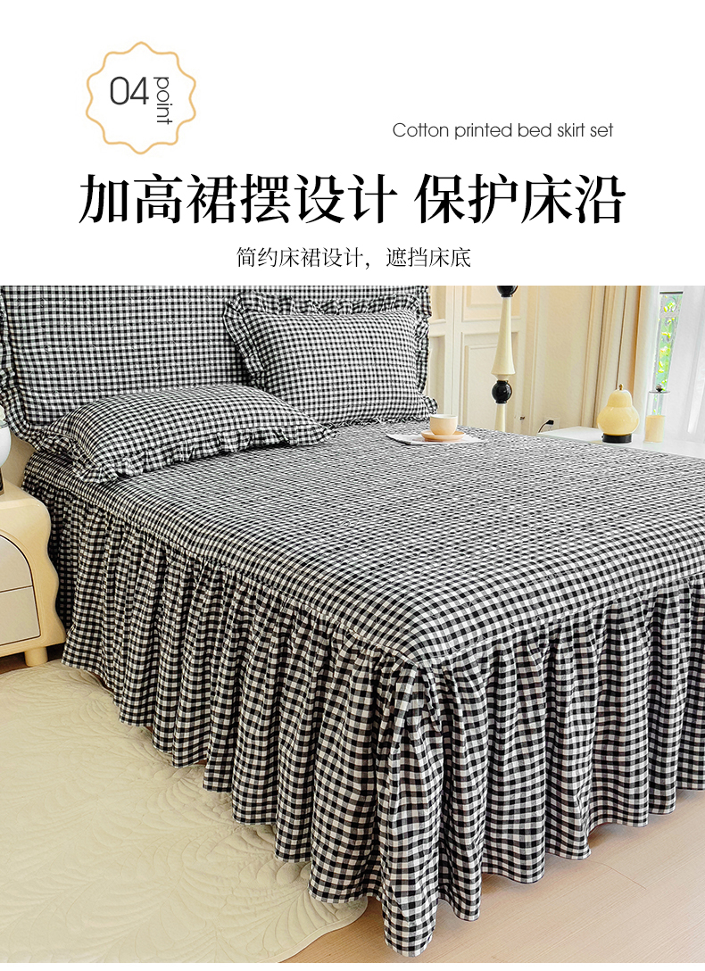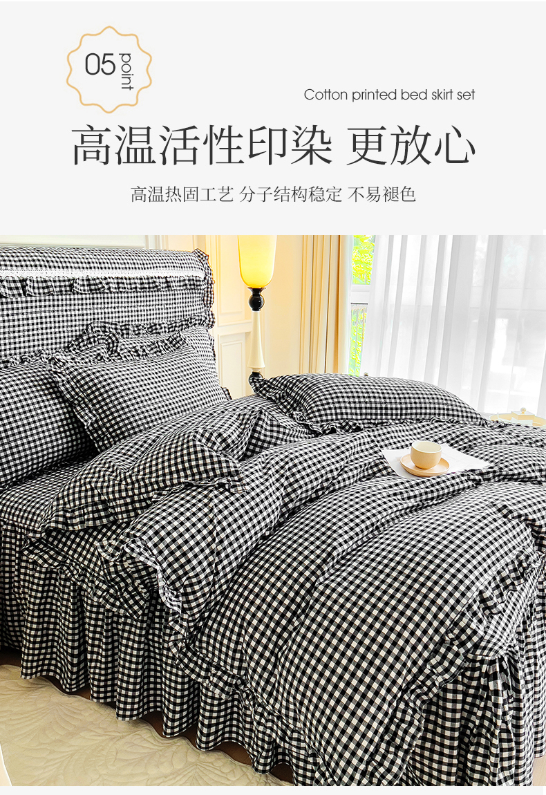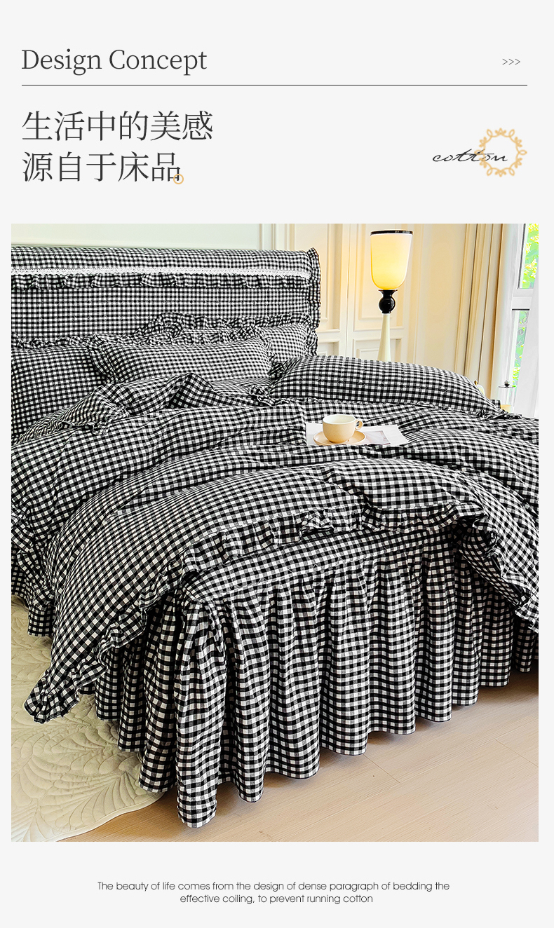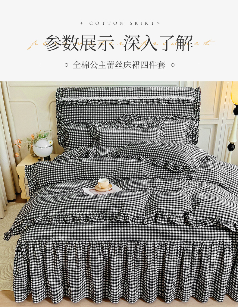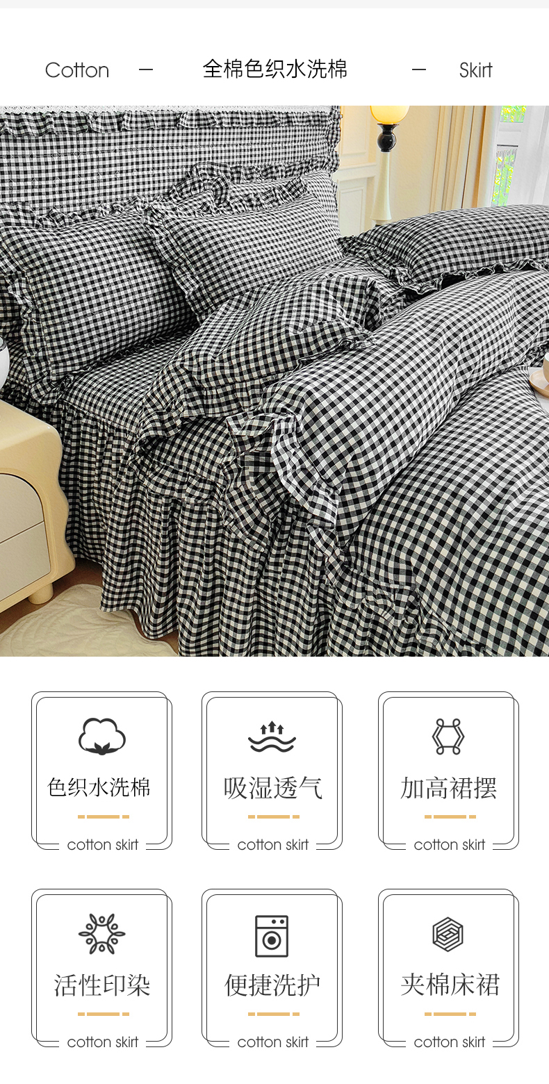 当前位置: 91家纺网 > 商品网购 > 床品套件 > 四件套 > 水洗棉四件套 > 十个点 2024新款色织水洗棉韵格系列床裙款四件套 黑白小格