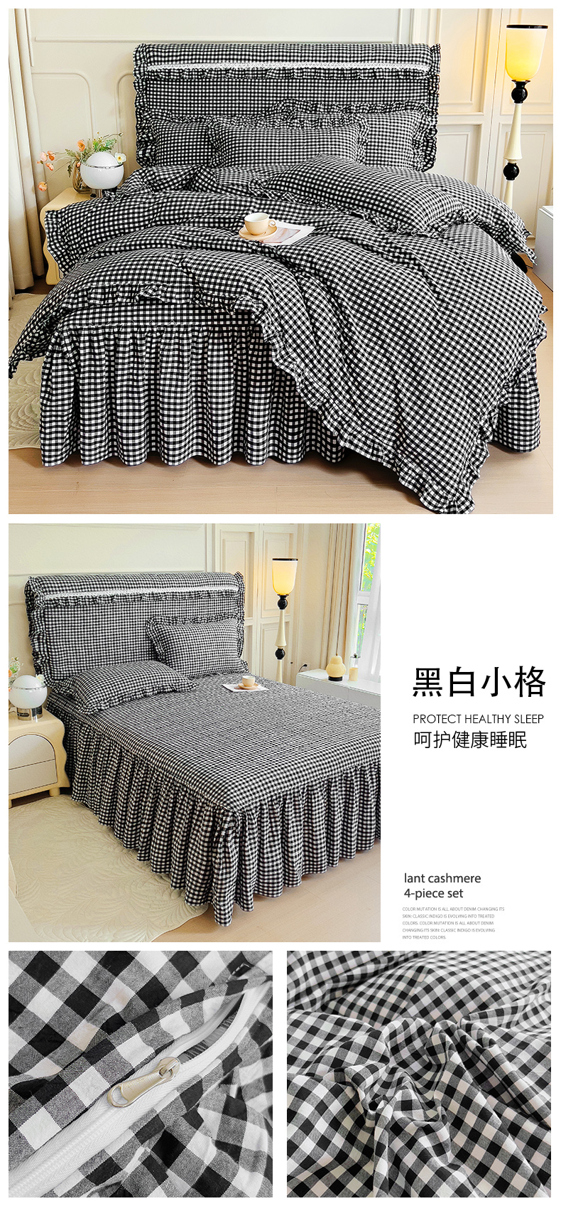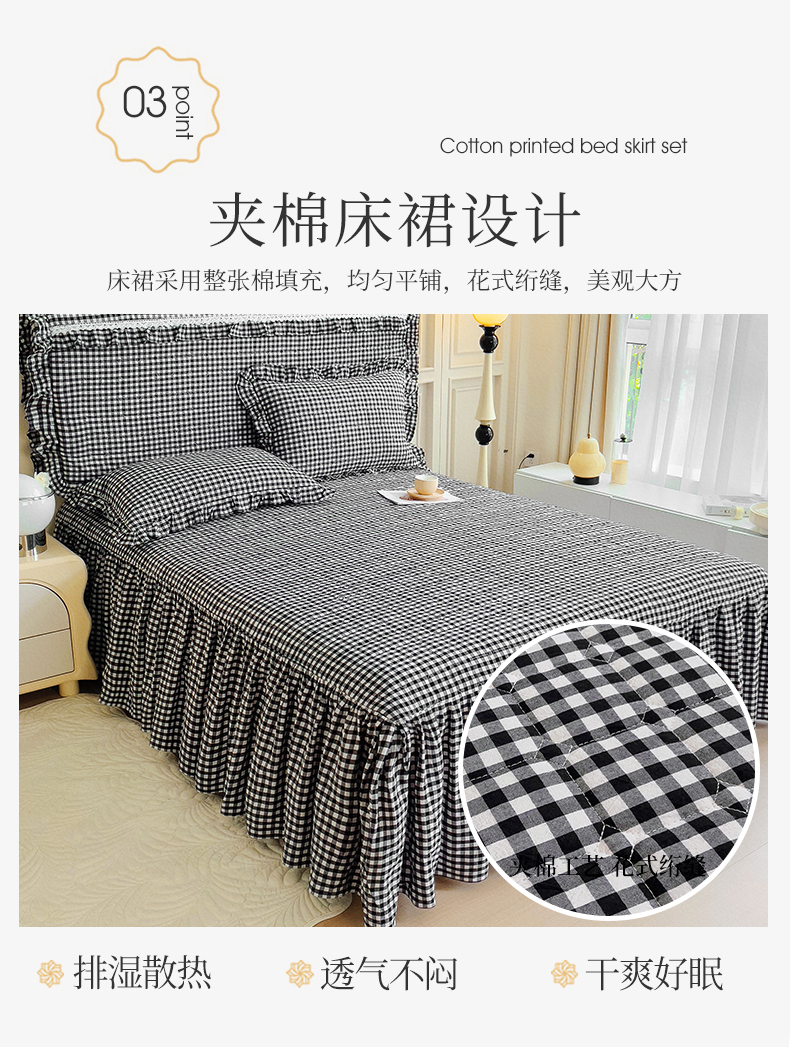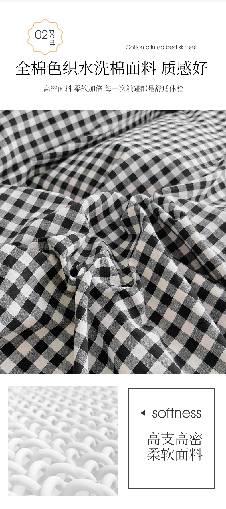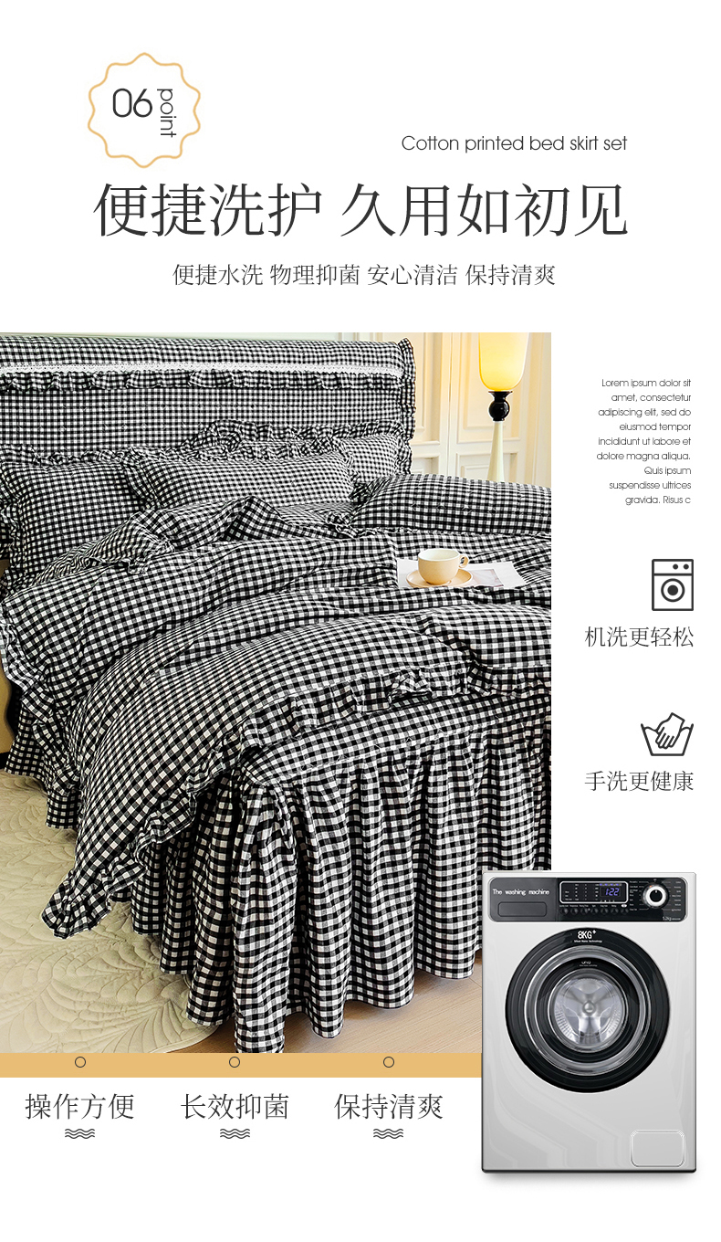 当前位置: 91家纺网 > 商品网购 > 床品套件 > 四件套 > 水洗棉四件套 > 十个点 2024新款色织水洗棉韵格系列床裙款四件套 黑白小格