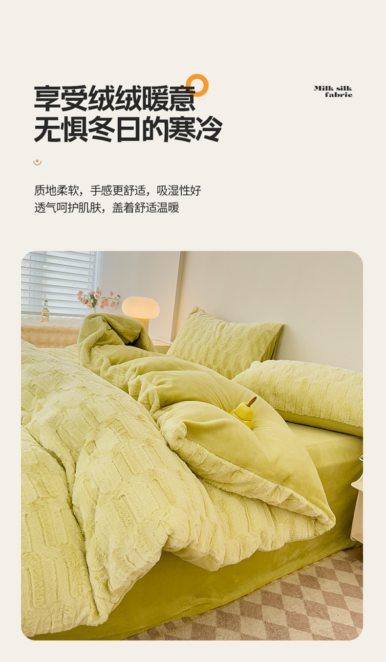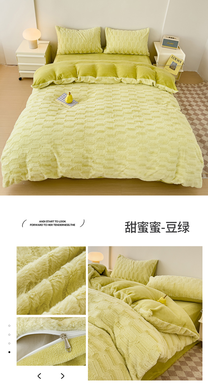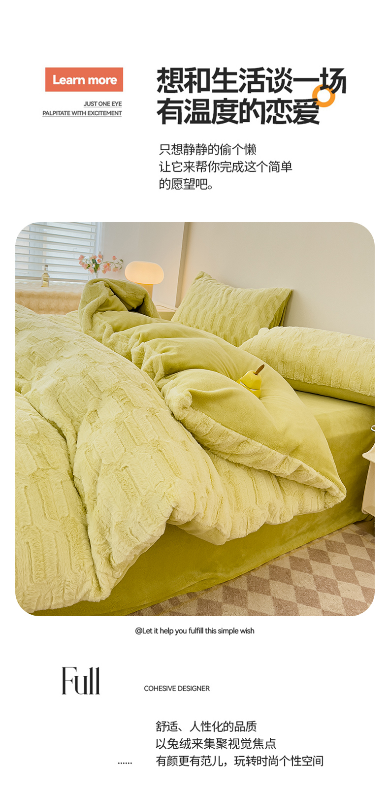 商品名称:珺柔2023款兔绒纯色双拼四件套 甜蜜蜜-豆绿