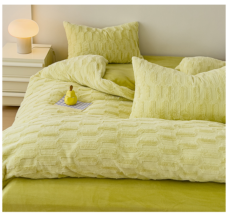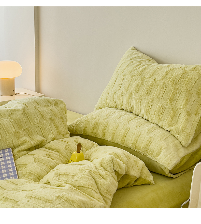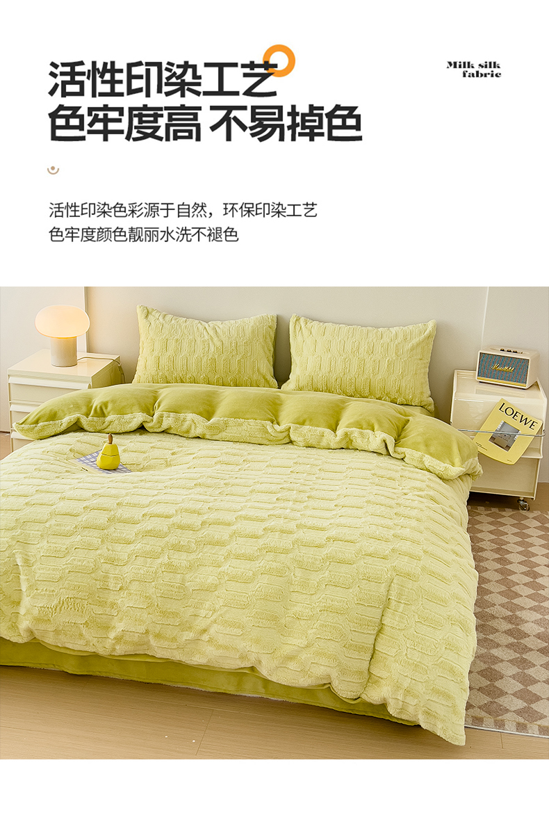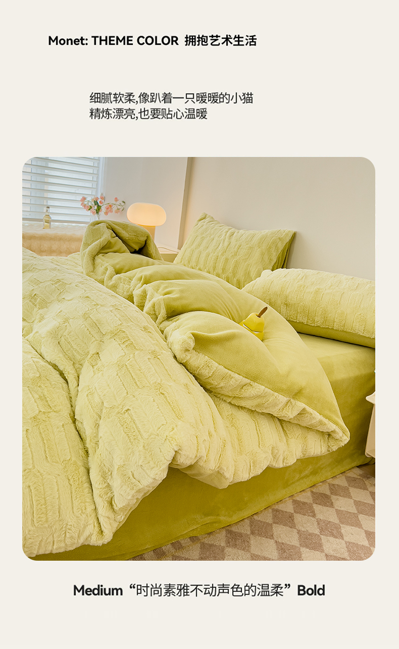 商品名称:珺柔2023款兔绒纯色双拼四件套 甜蜜蜜-豆绿