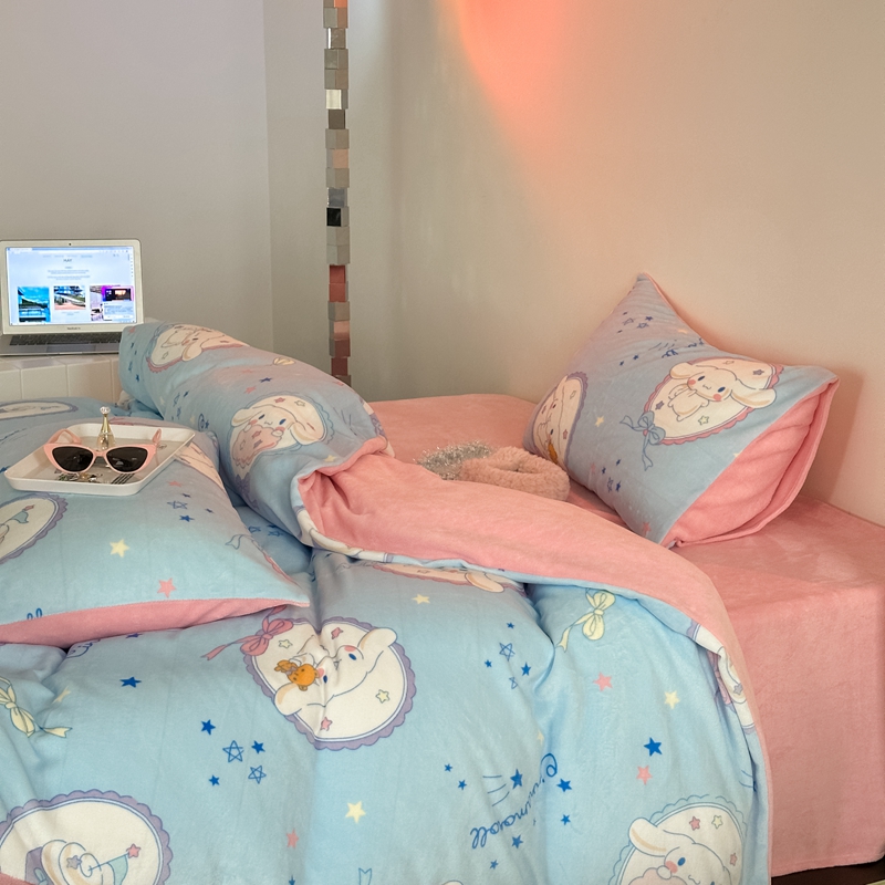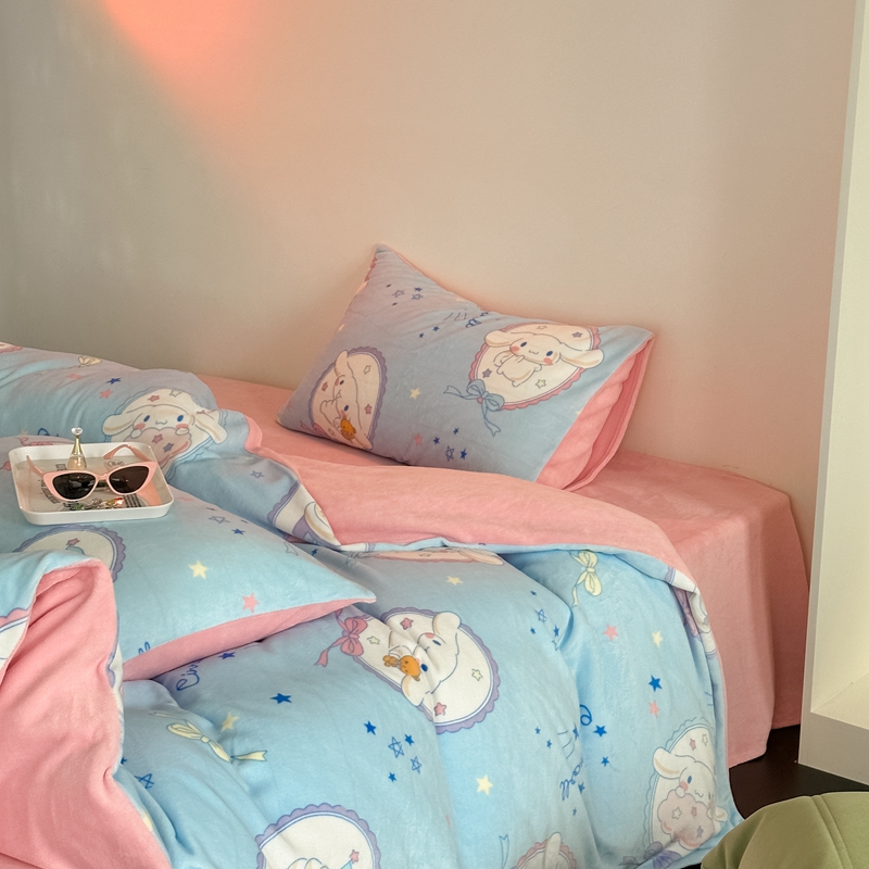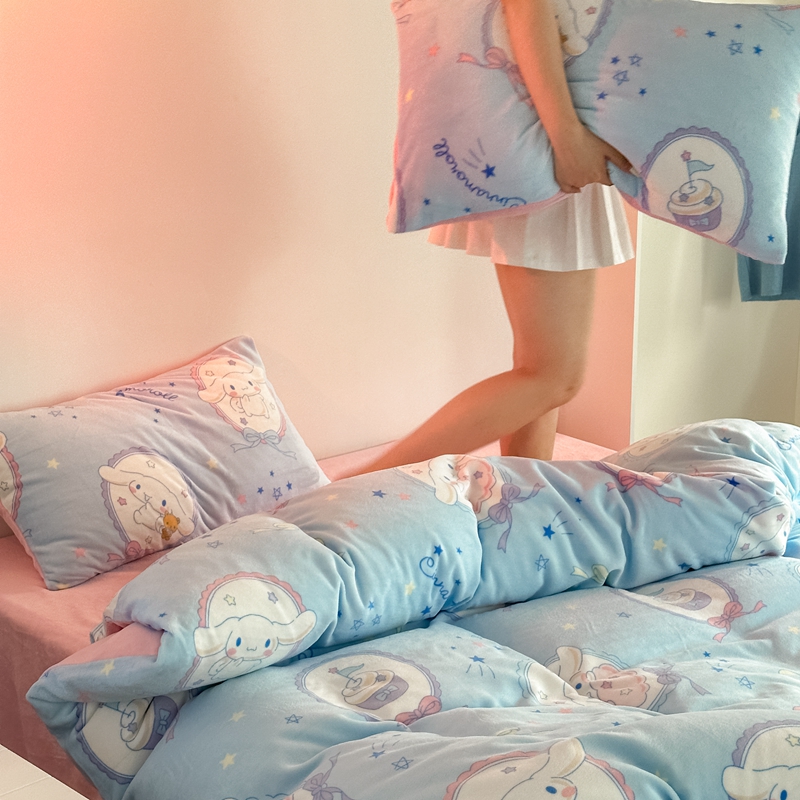 美乐迪家纺 2023新款正版三丽鸥牛奶绒四件套 蛋糕大耳狗