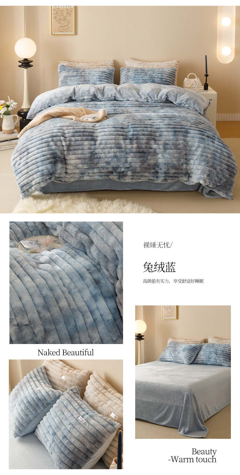 山茶家纺 2023新款纯色高克重兔毛绒牛奶绒四件套 兔绒蓝