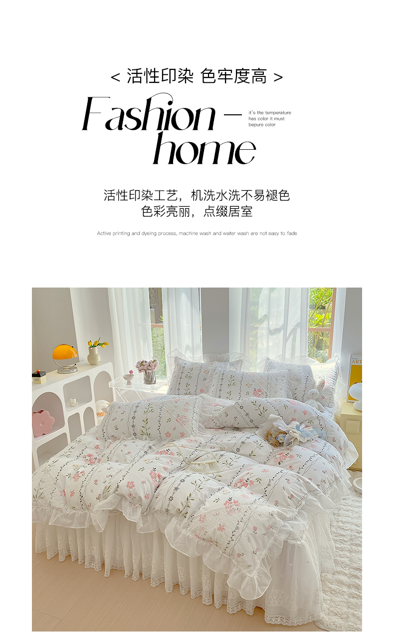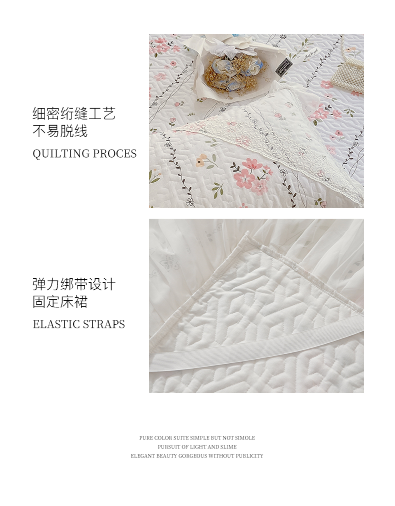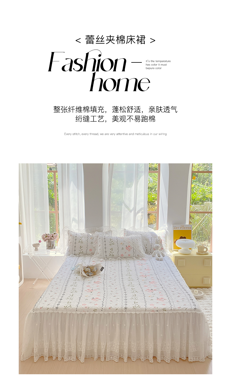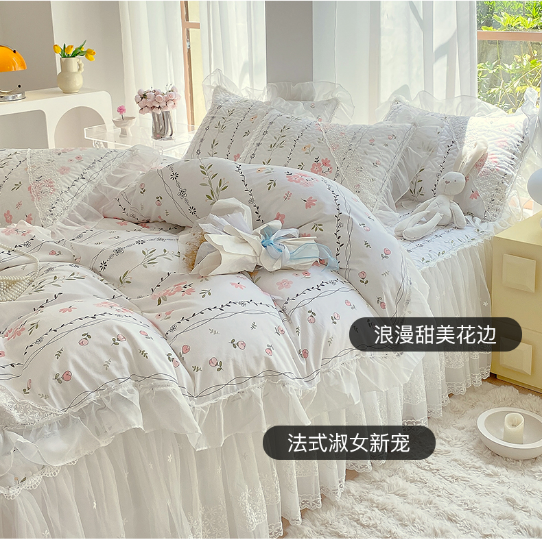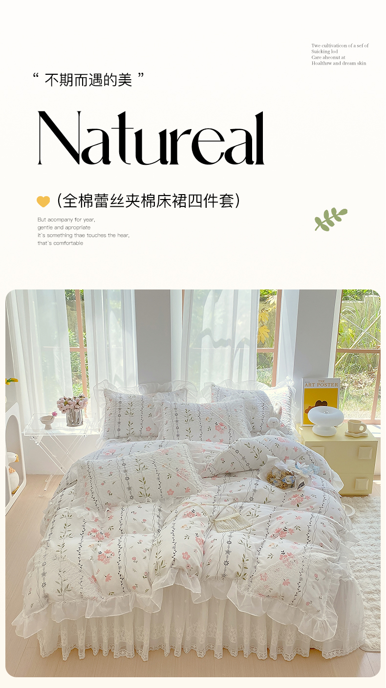当前位置: 91家纺网 > 商品网购 > 床品套件 > 四件套 > 全棉普通四件套 > 罗艺轩家纺2024新款全棉蕾丝夹棉床裙忆江南系列-四件套 忆江南~清新雅韵