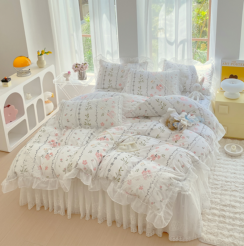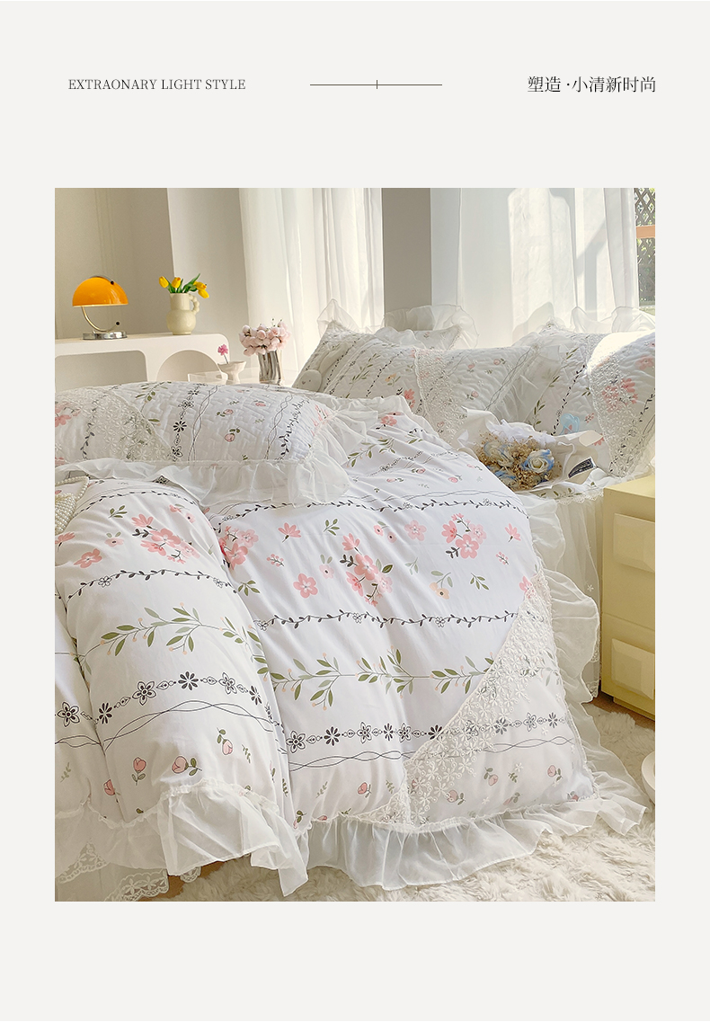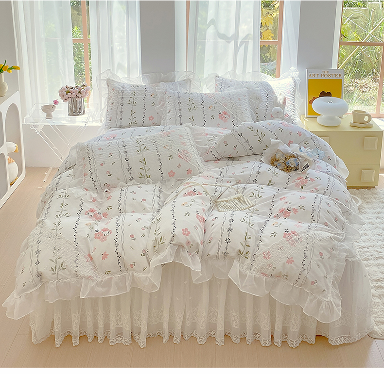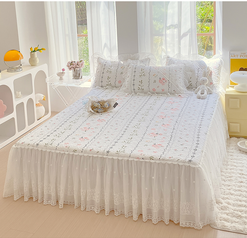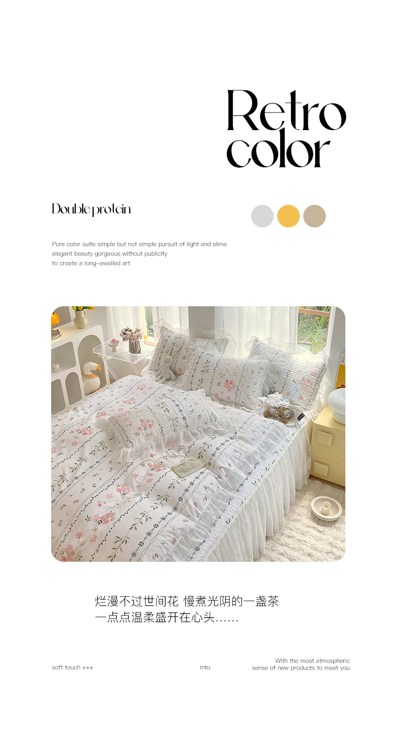 当前位置: 91家纺网 > 商品网购 > 床品套件 > 四件套 > 全棉普通四件套 > 罗艺轩家纺2024新款全棉蕾丝夹棉床裙忆江南系列-四件套 忆江南~清新雅韵