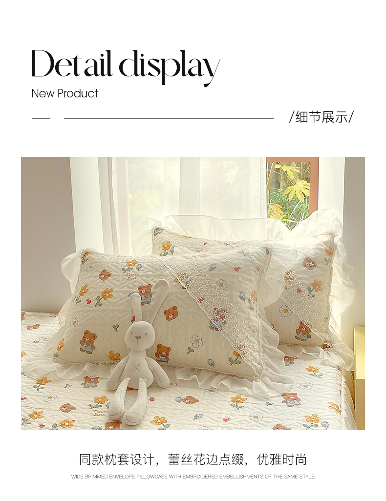 罗艺轩家纺2024新款全棉蕾丝夹棉床裙忆江南系列-床裙三件套 忆江南~安妮小熊