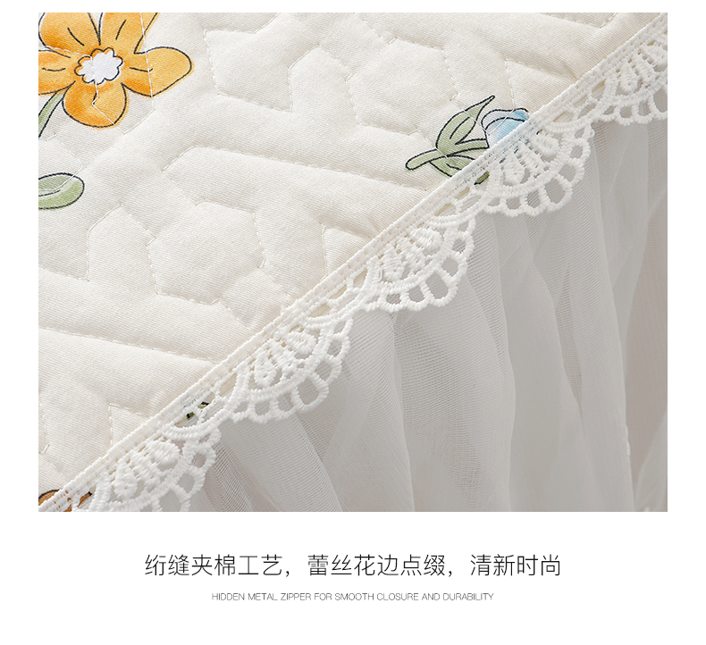 • 91家纺网 家纺一手货源 找家纺 罗艺轩家纺2024新款全棉蕾丝夹棉床裙忆江南系列-床裙三件套 忆江南~安妮小熊