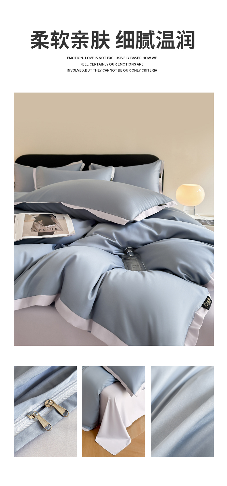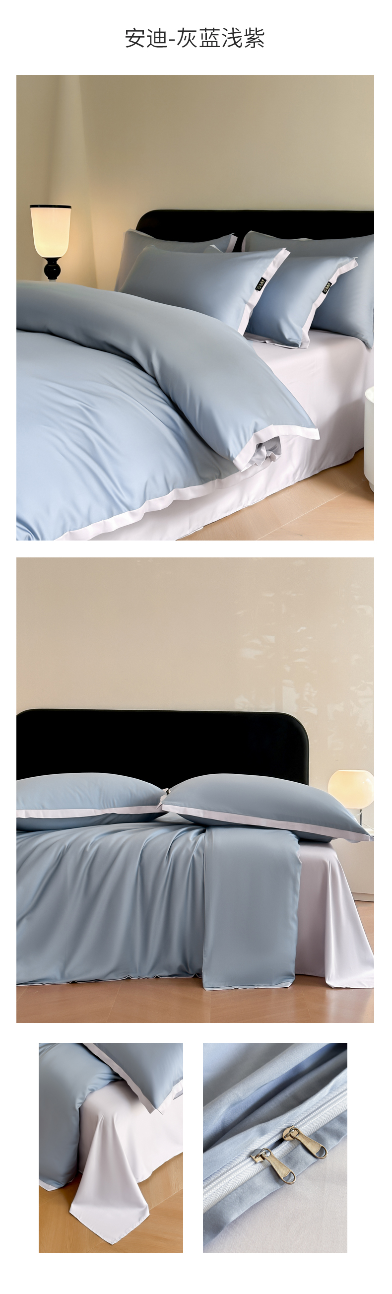当前位置: 91家纺网 > 商品网购 > 床品套件 > 四件套 > 长绒棉四件套 > 618家纺2023新款180支长绒棉高支贡缎四件套 安迪-灰蓝浅紫