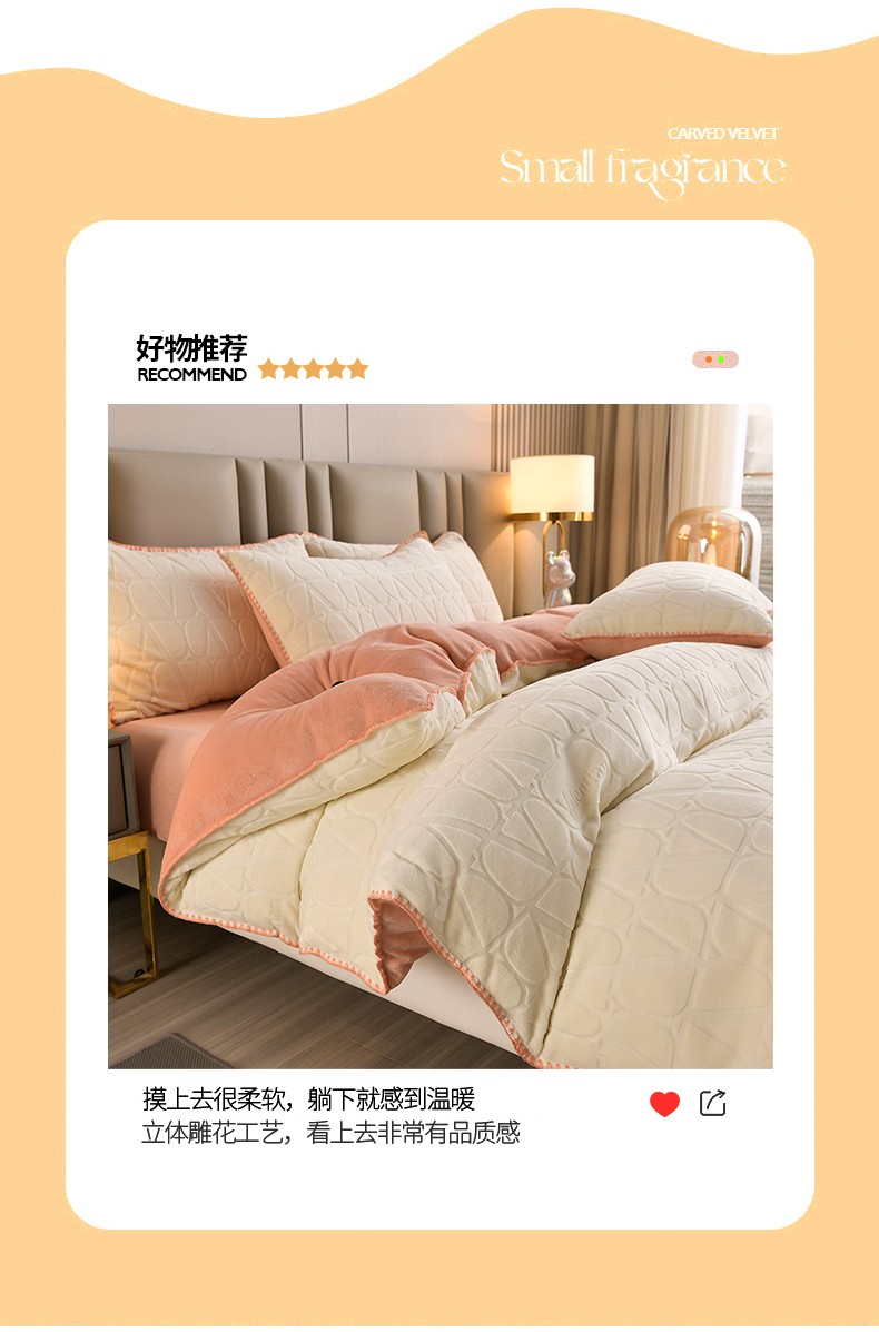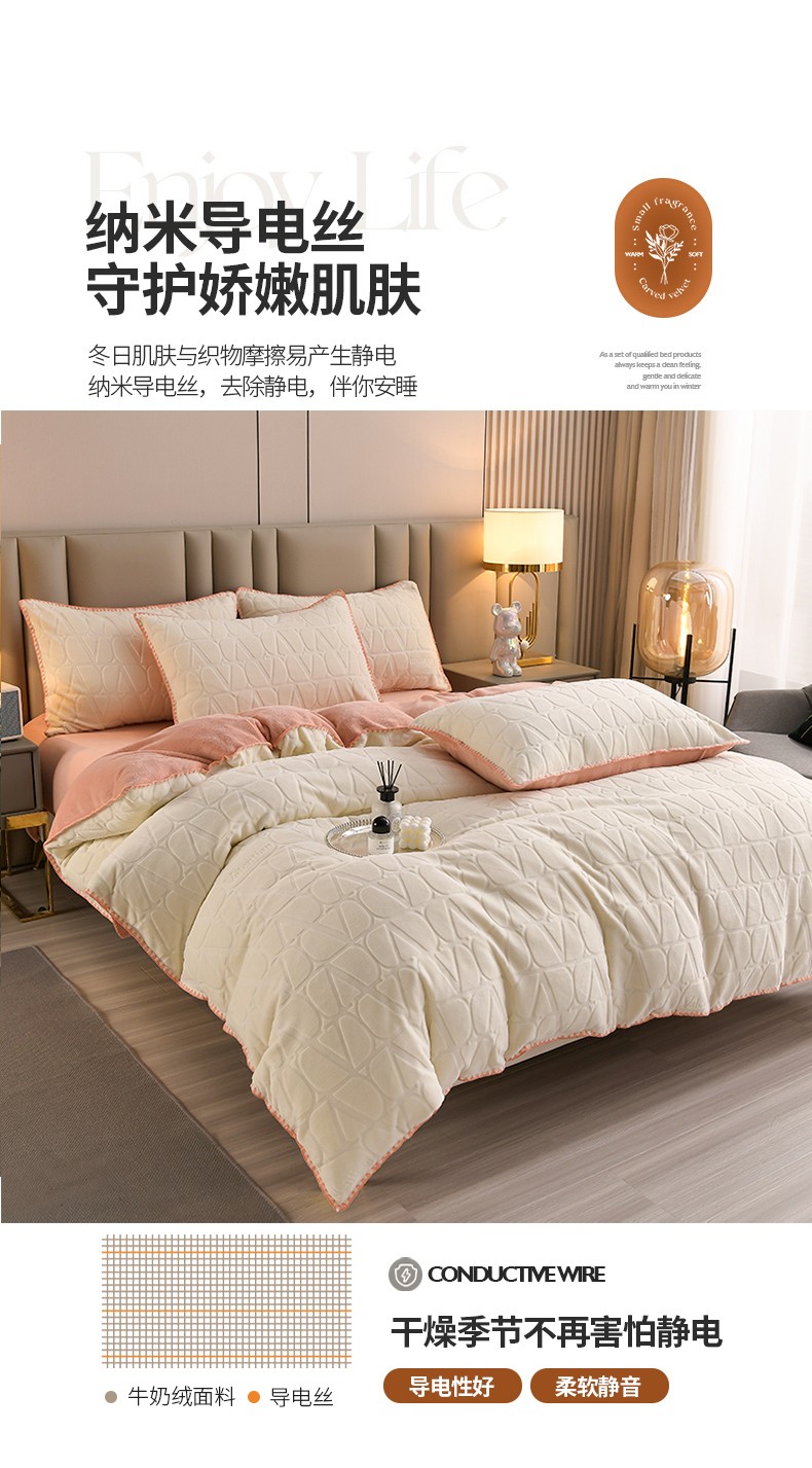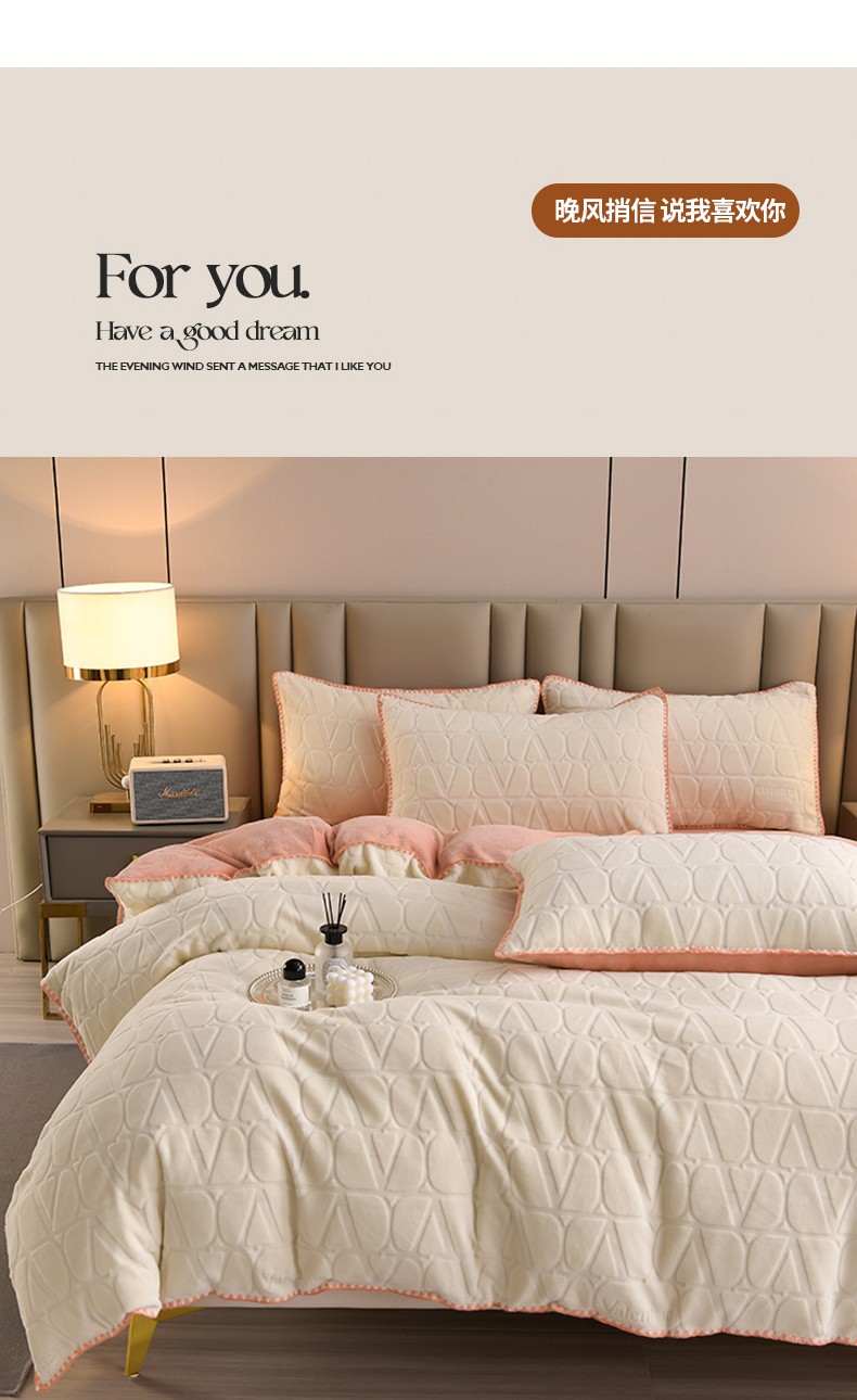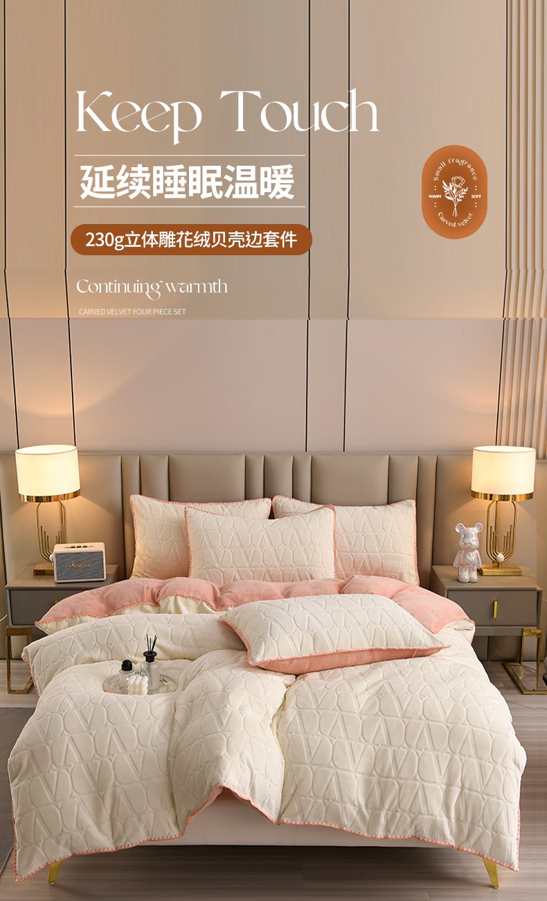 商品名称:(总)菡宝 2023新款雕花绒被套牛奶绒四件套230g克贝壳边