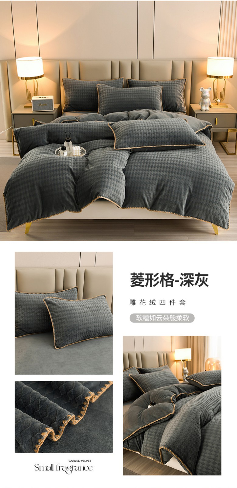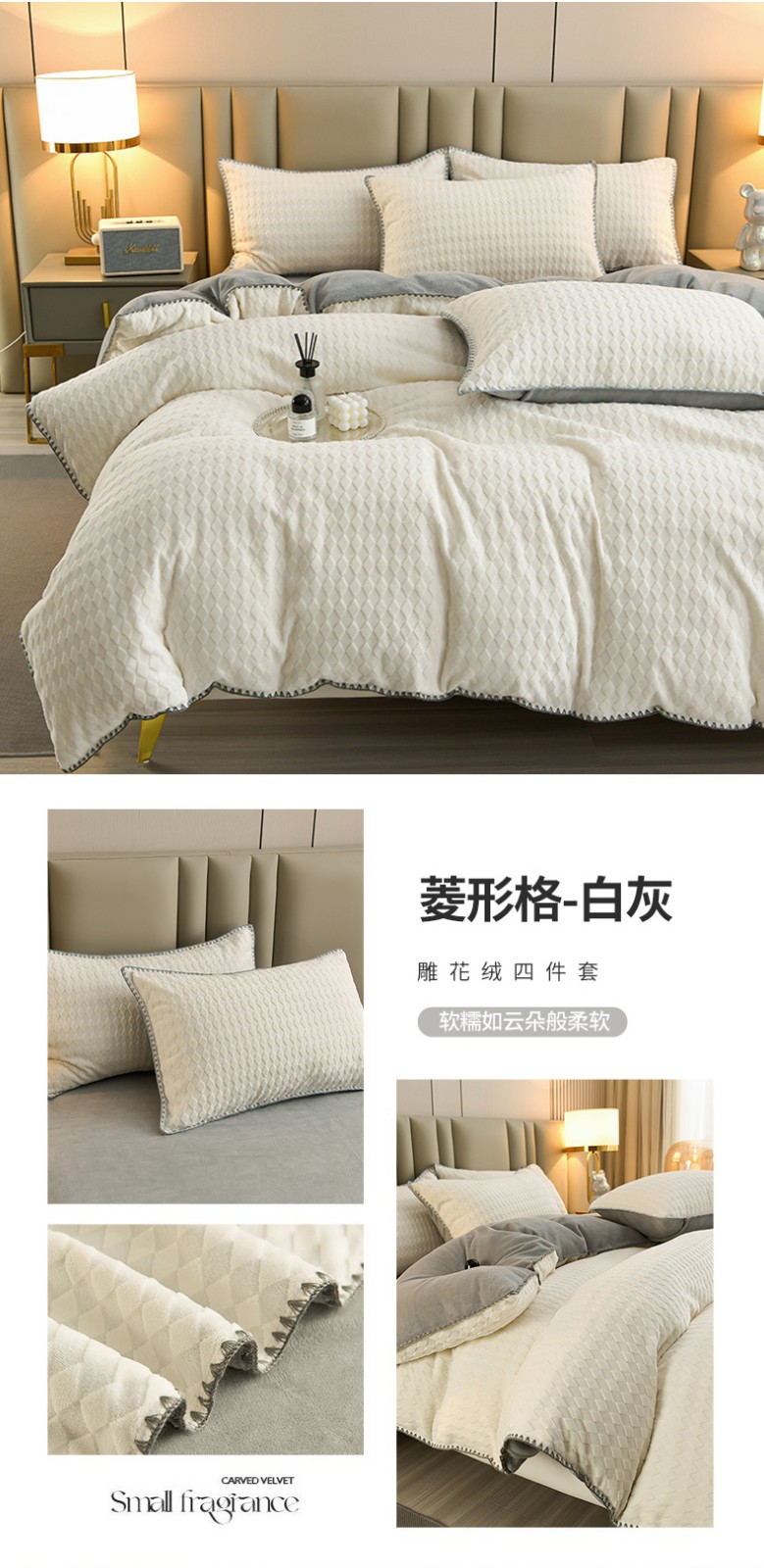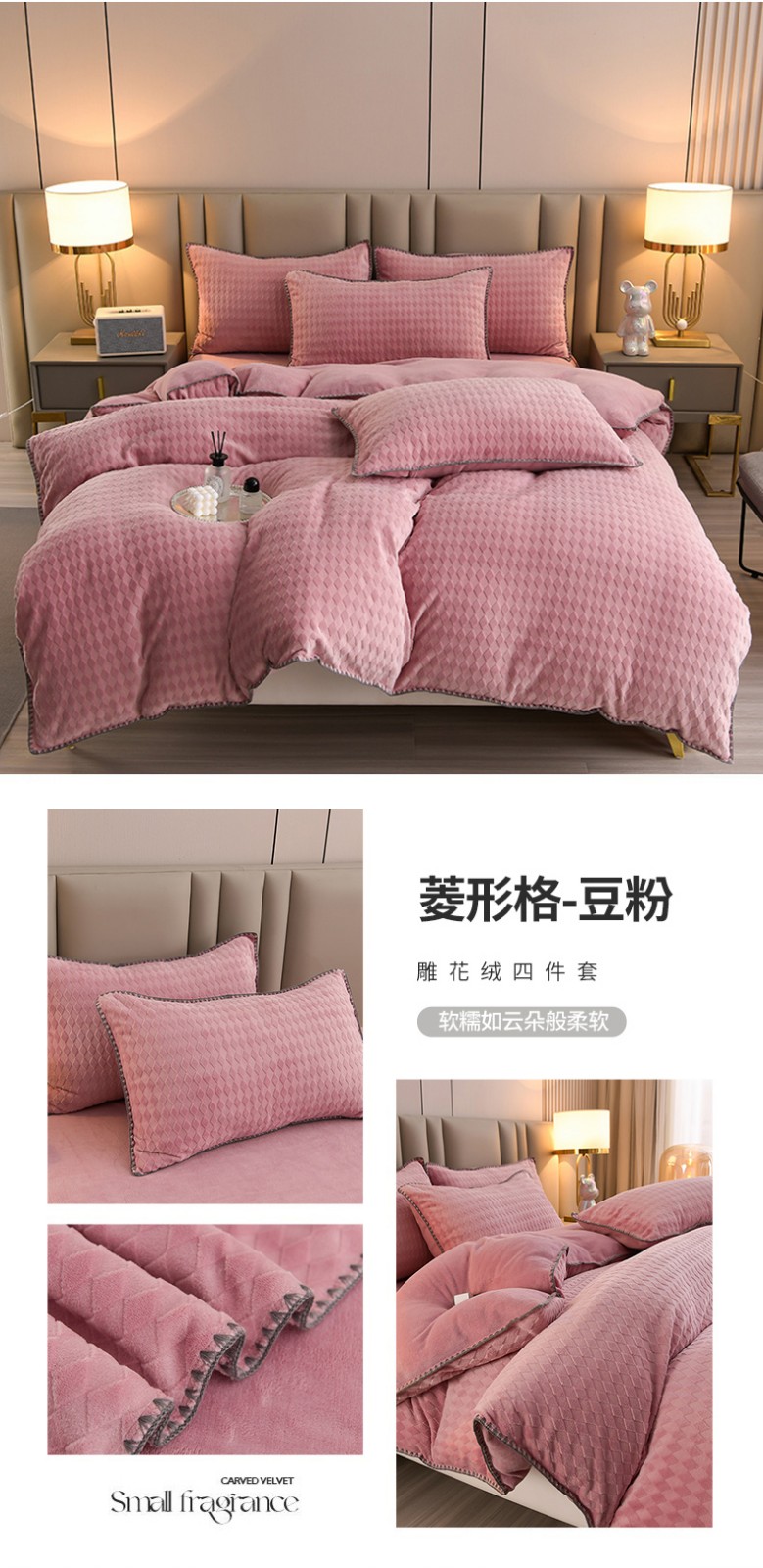 (总)菡宝2025新款工艺款贝壳边雕花绒简约良品风牛奶绒四件套-梵西系列 支持定做定制尺寸,梵西灰,梵西紫,米娅灰,米娅粉,洛璃灰,洛璃紫