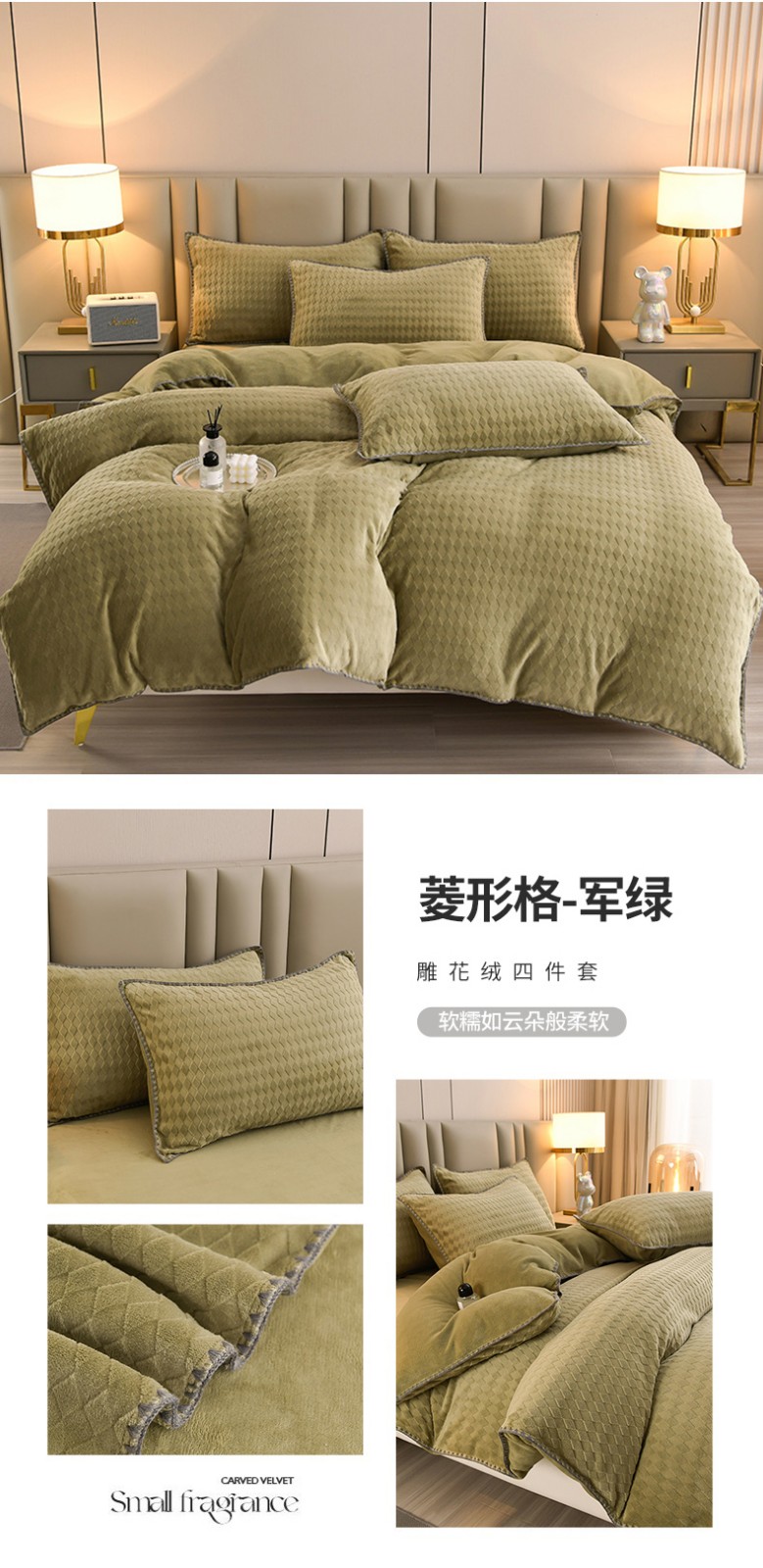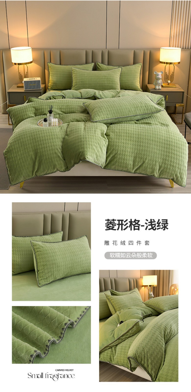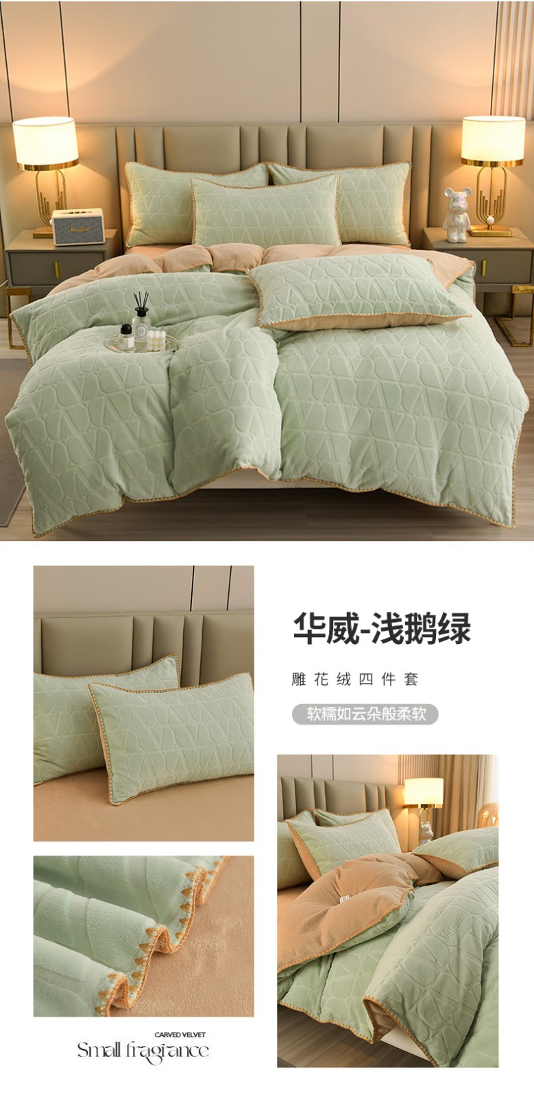 (总)菡宝 【第二批】2025雕花绒牛奶绒四件套-行云流水-支持定做定制尺寸,行云流水-豆绿,行云流水-豆紫,行云流水-米杏