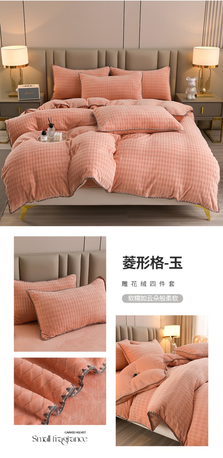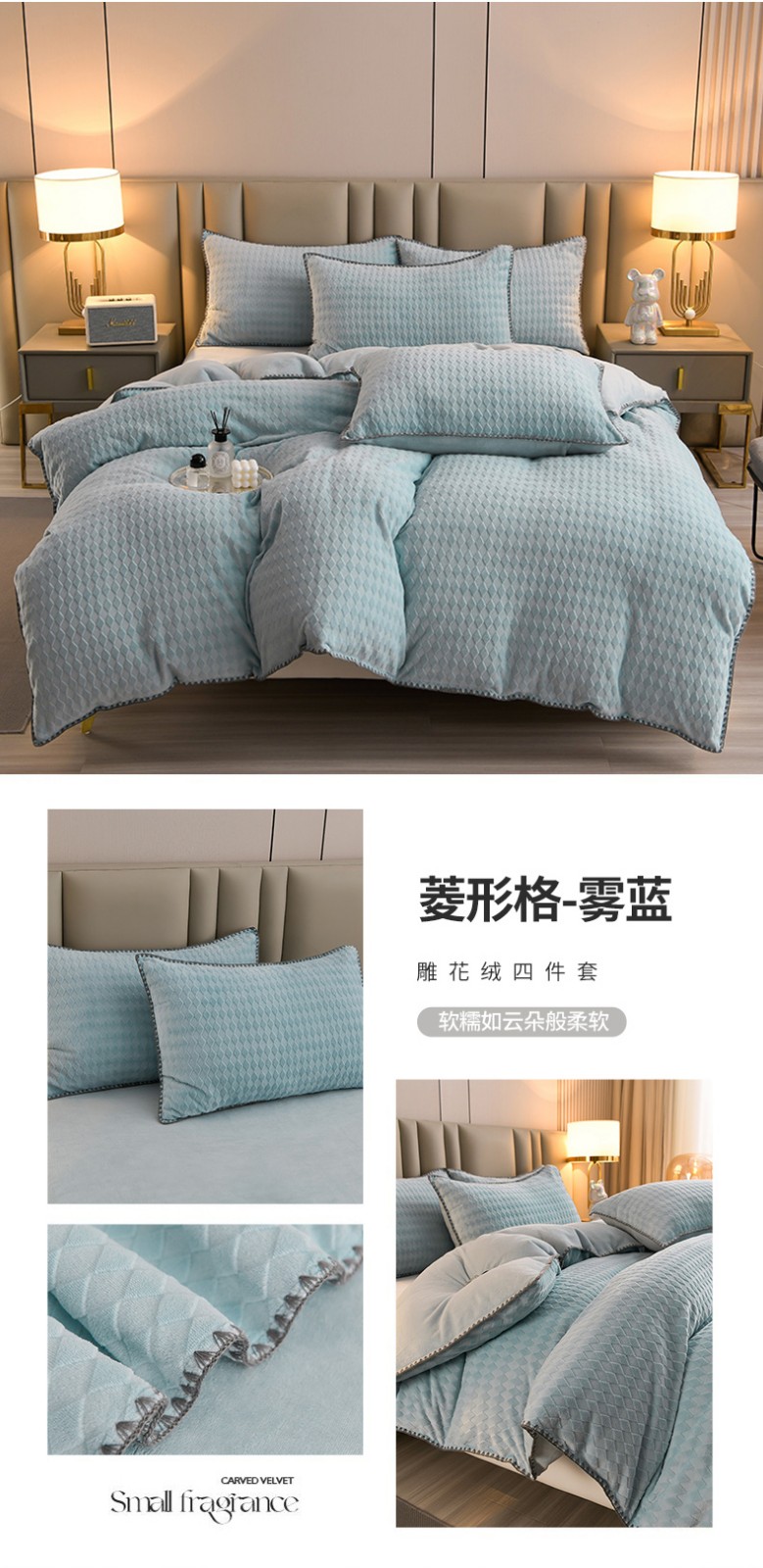 (总)菡宝 【第一批】2025雕花绒牛奶绒四件套-邦尼兔-支持定做定制尺寸,蔓朵蓝,邦尼兔蓝,玫瑰花香粉,玫瑰花香杏,倾羽,笙如夏花粉,笙如夏花蓝,笙如夏花绿,图澜朵,玫瑰花香蓝,郁金花香紫