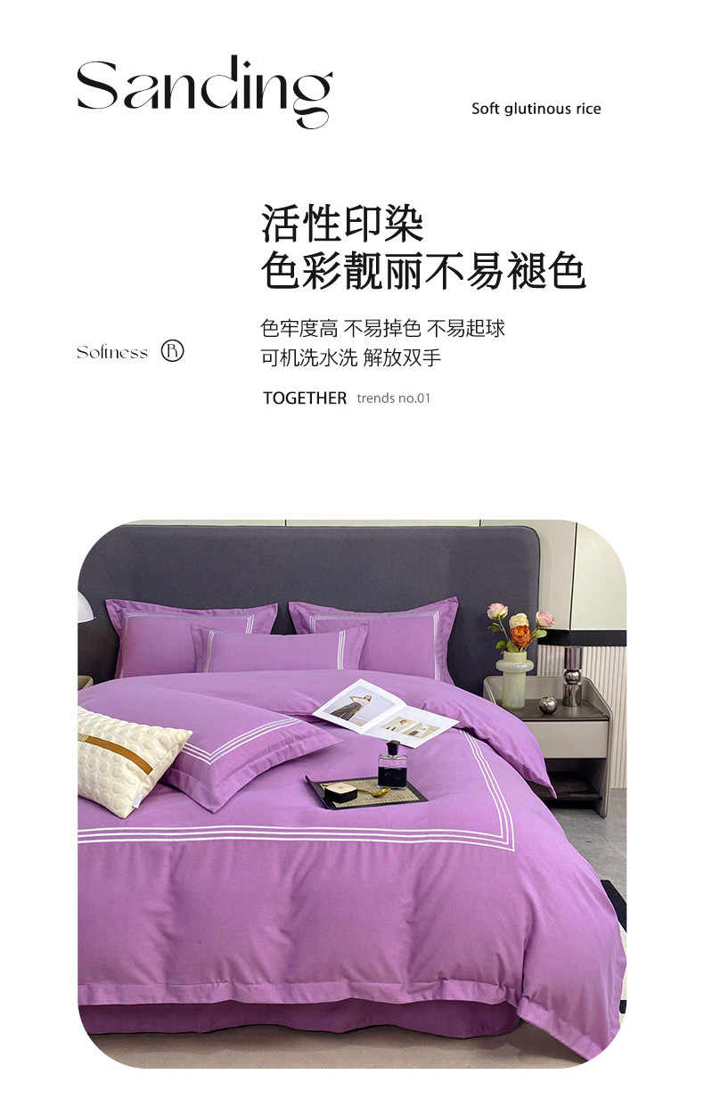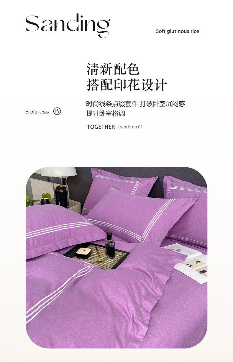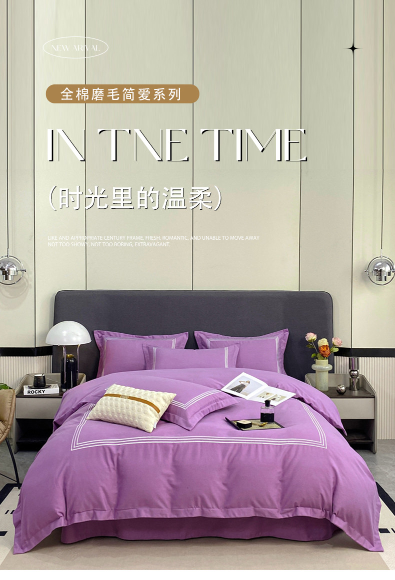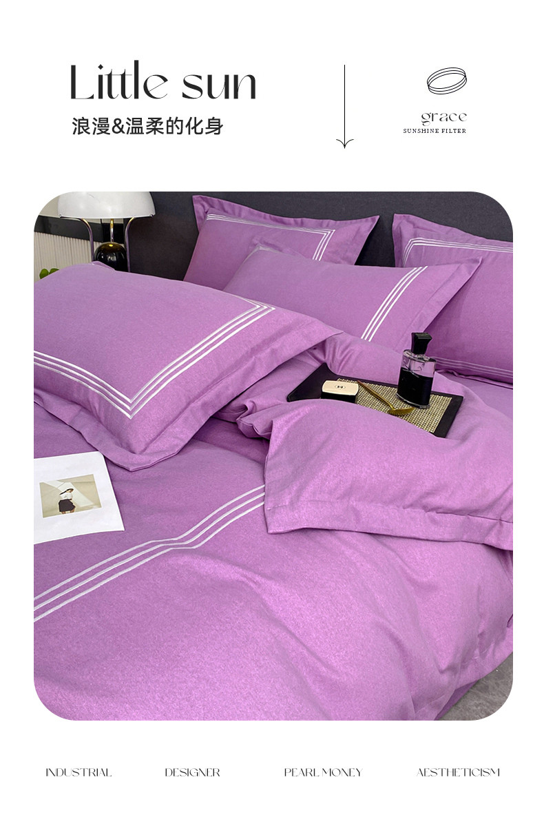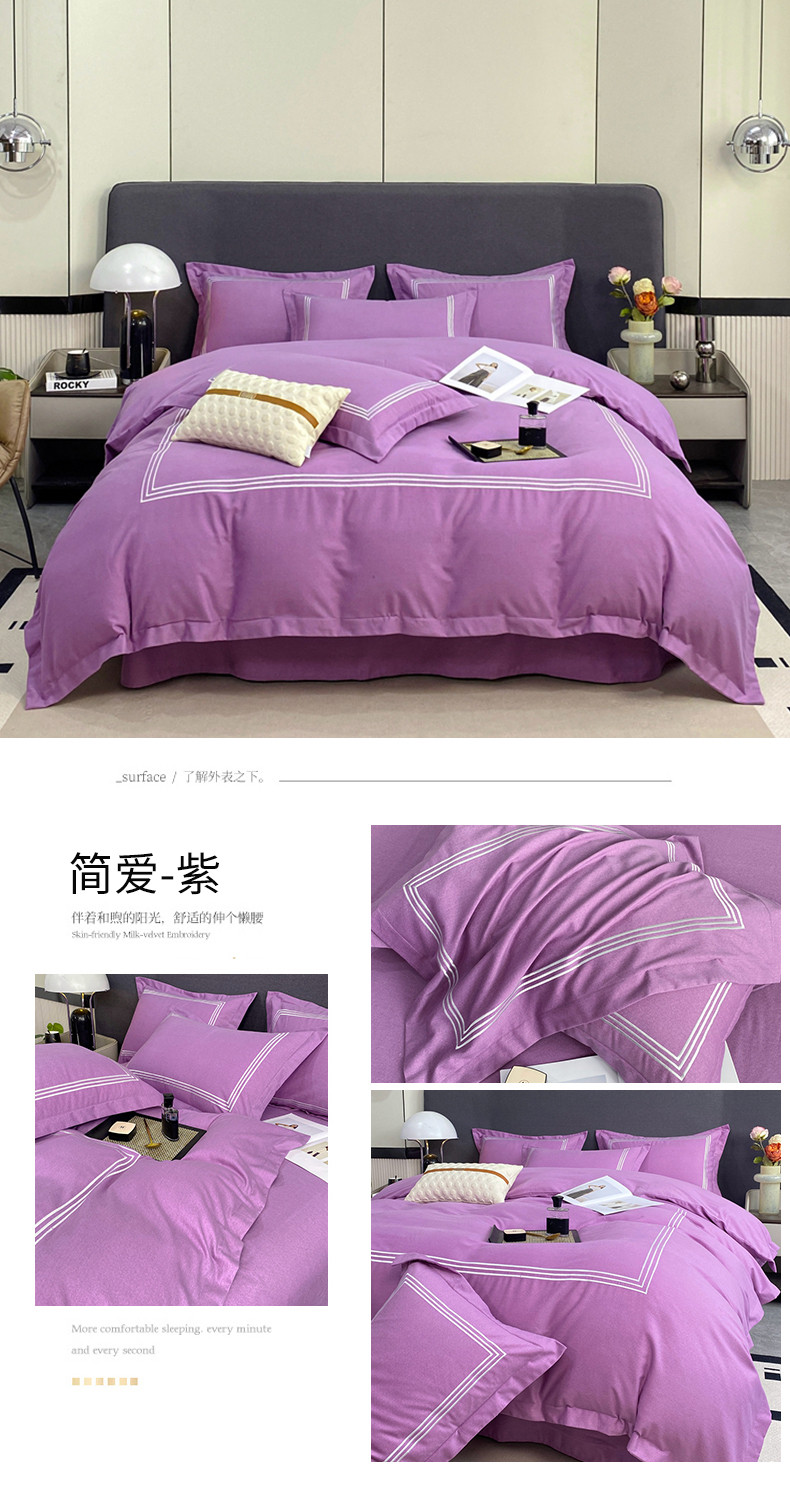 N先生 2023秋冬新款全棉加厚磨毛四件套-简爱系列 简爱-紫