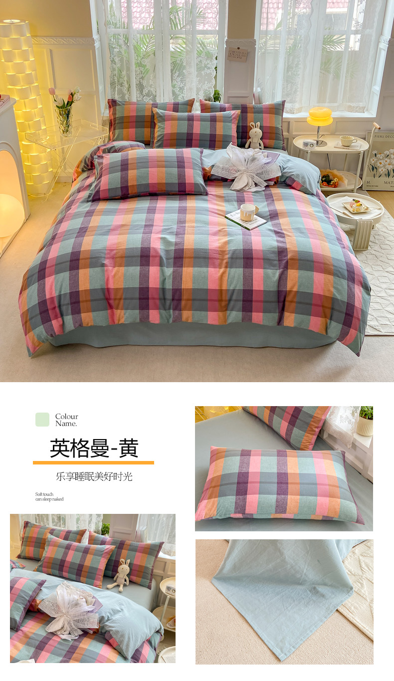 当前位置: 91家纺网 > 商品网购 > 床品套件 > 四件套 > 水洗棉四件套 > 米可 2025新款全棉色织水洗棉四件套英格曼-黄