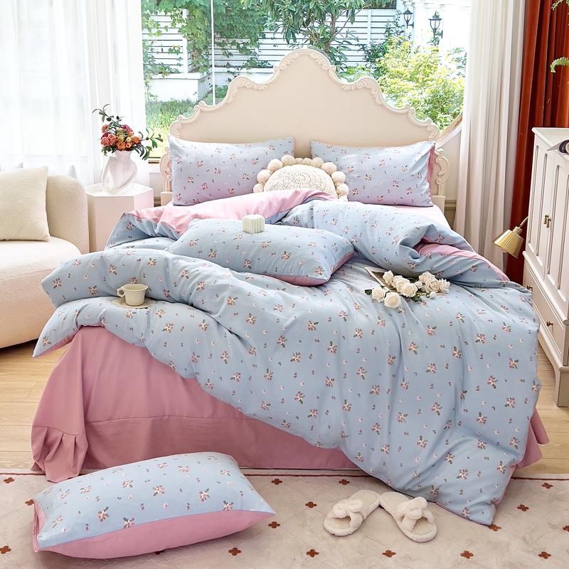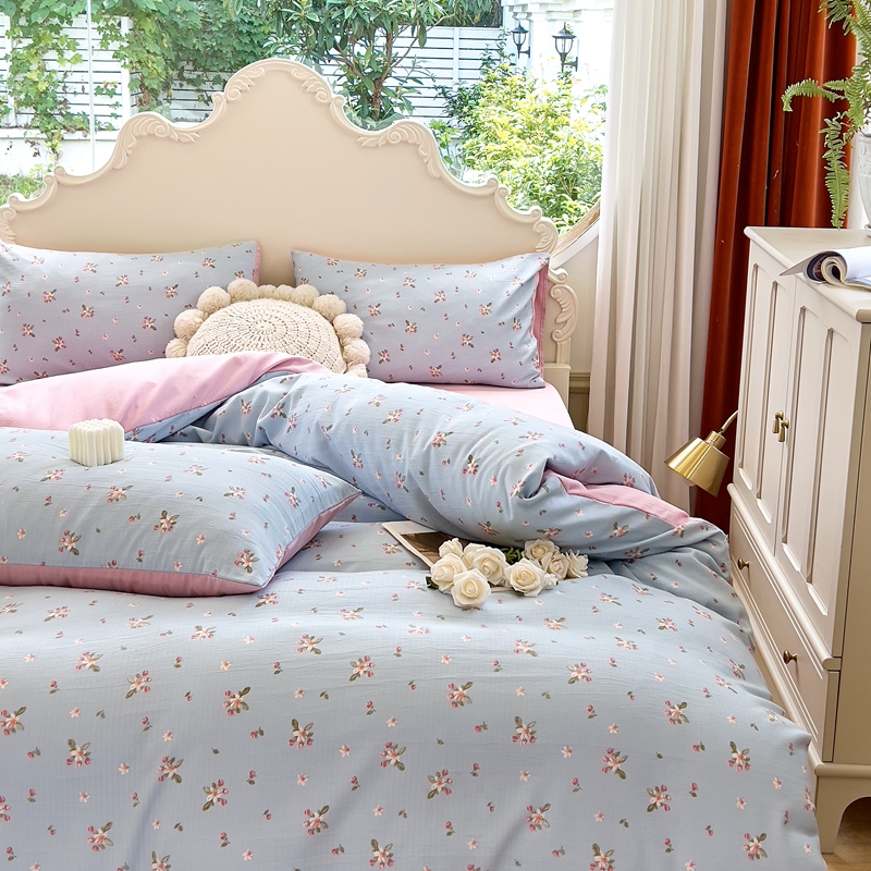 梦莱斯 2023新款小竺棉印花四件套 花溪蓝