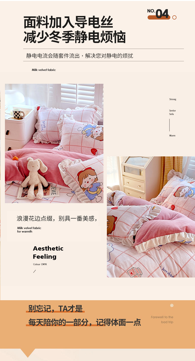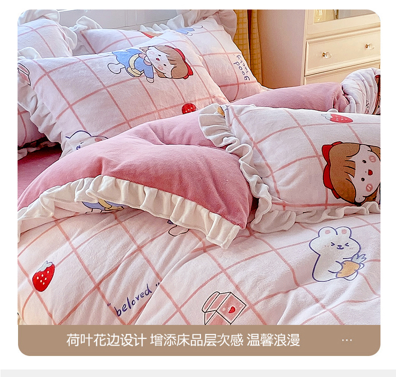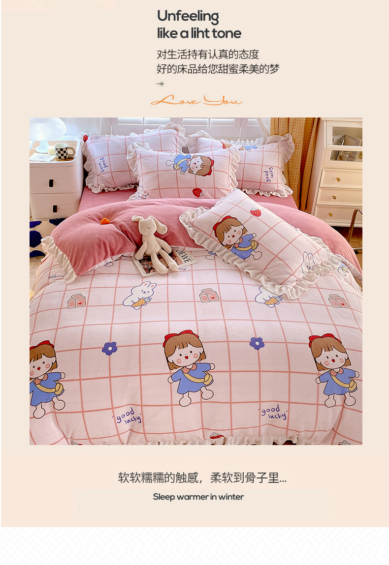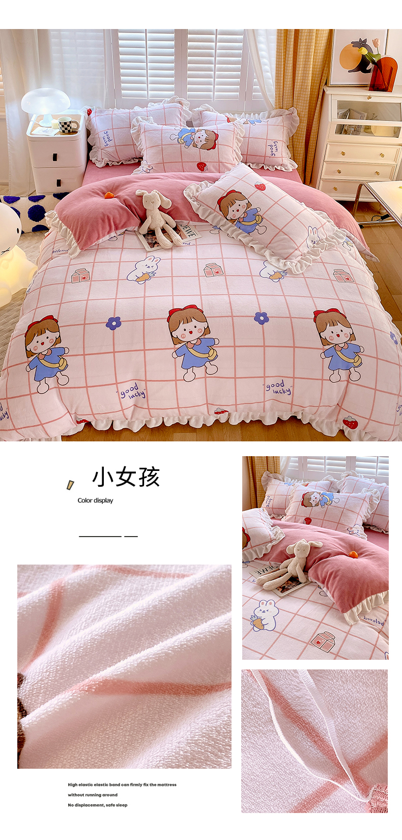 商品名称:宜家坊 2023新款直播韩版印花花边款牛奶绒四件套 小女孩