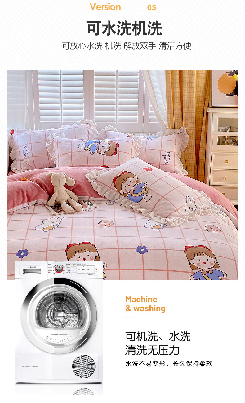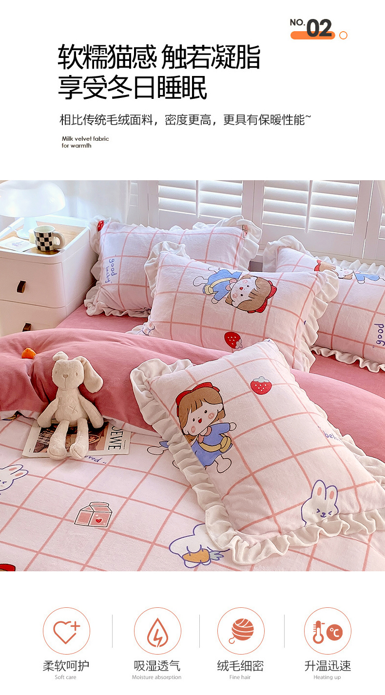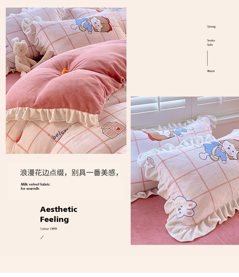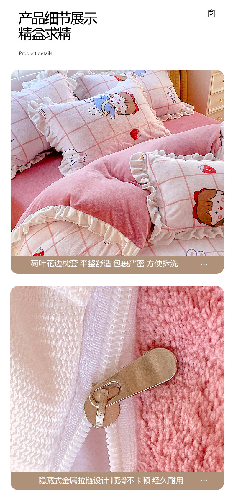 商品名称:宜家坊 2023新款直播韩版印花花边款牛奶绒四件套 小女孩