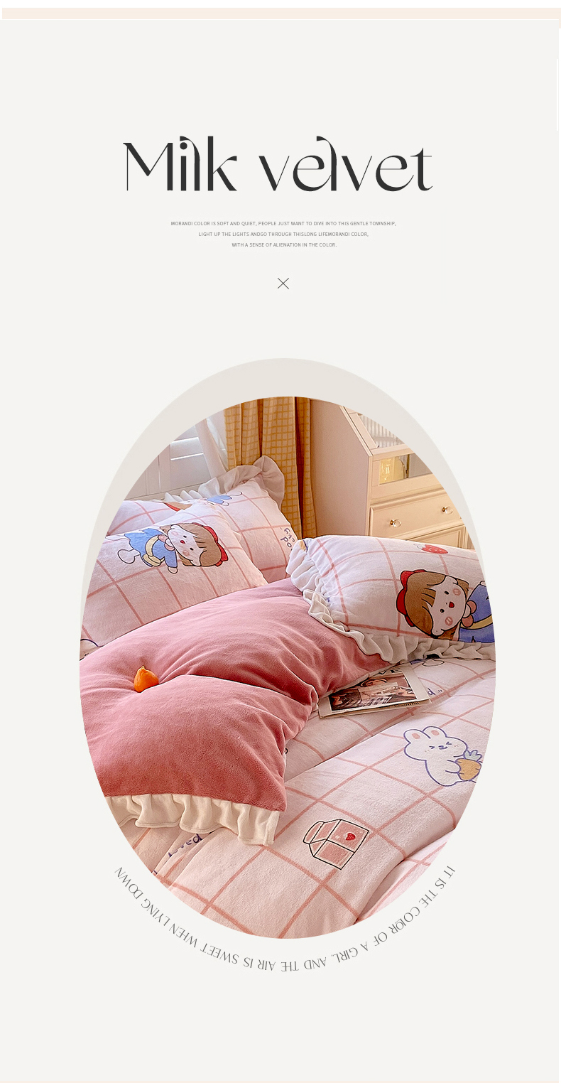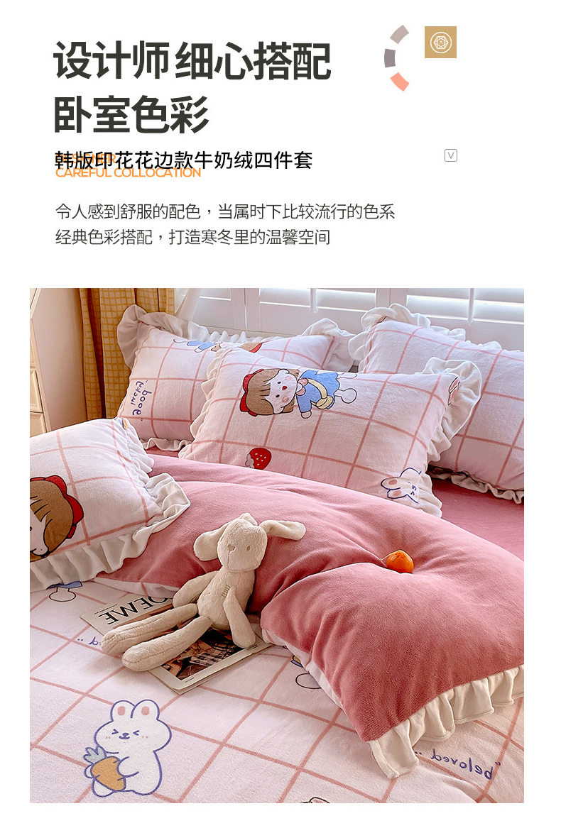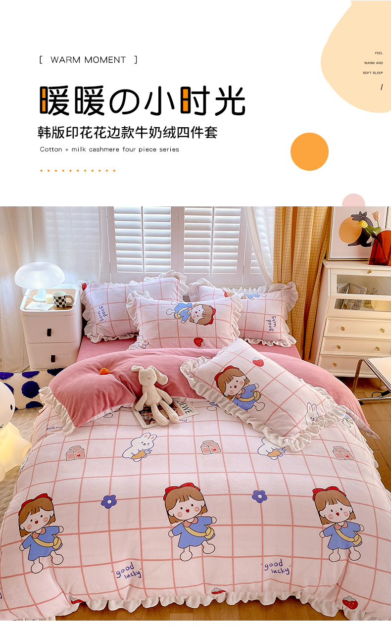 宜家坊 2023新款直播韩版印花花边款牛奶绒四件套 小女孩