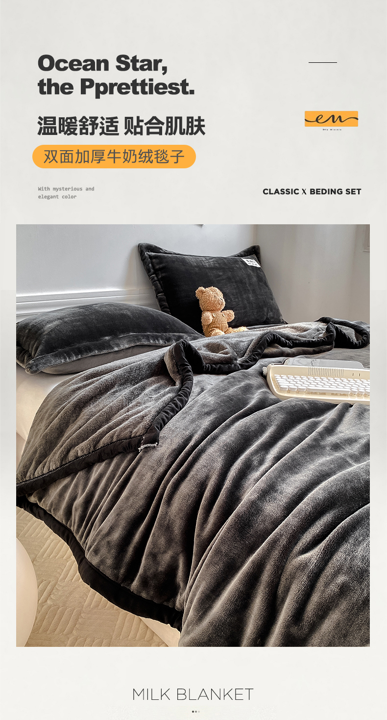 当前位置: 91家纺网 > 商品网购 > 毛毯休闲毯绒毯 > 毛毯 > 慕木家纺 2025新款牛奶绒双面绒纯色印花毛毯盖毯三件套 深灰
