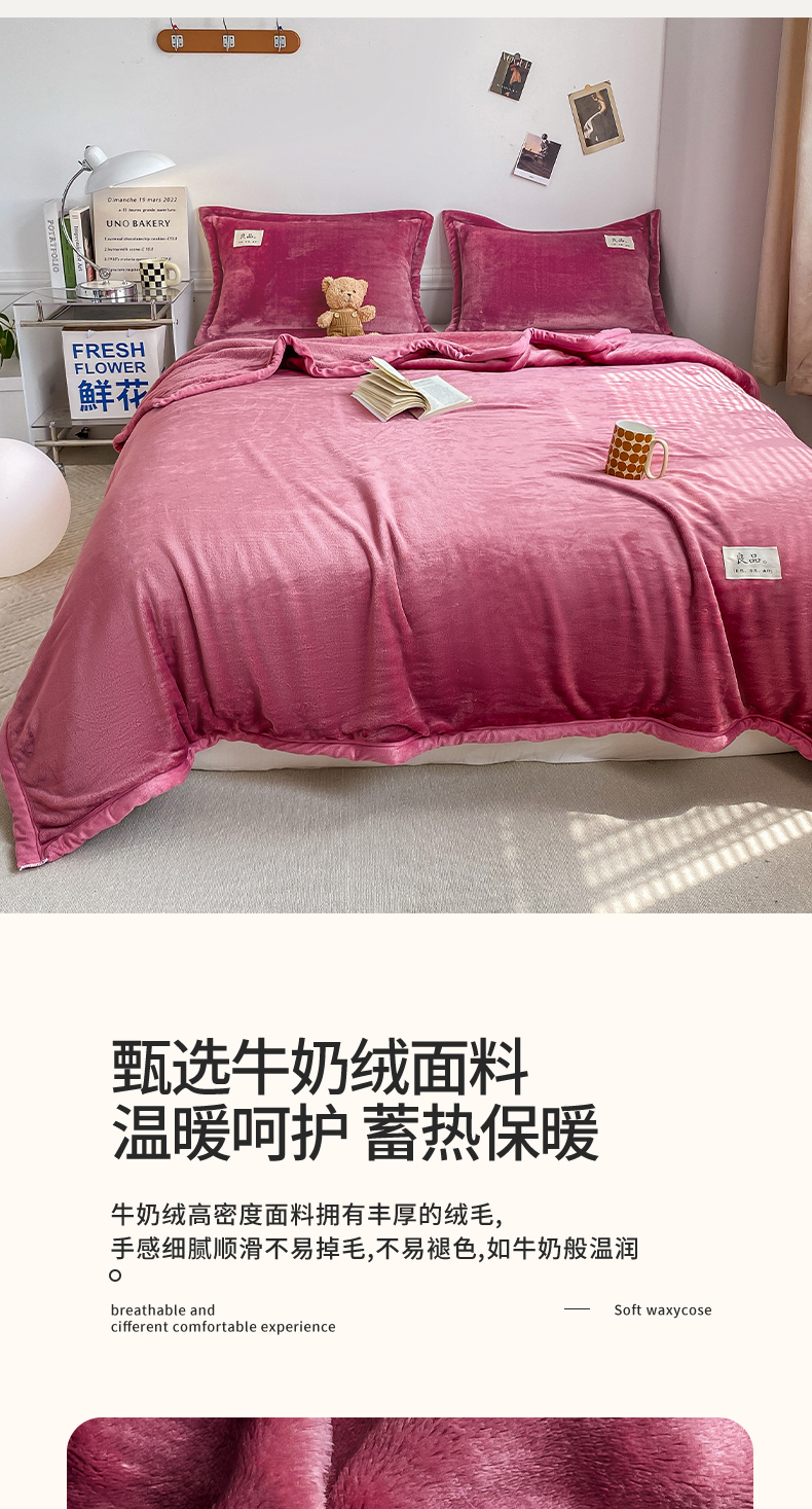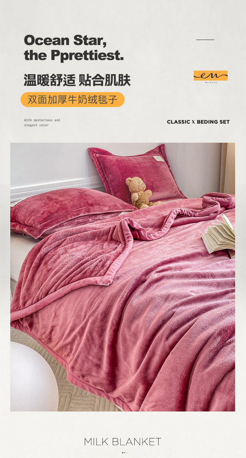当前位置: 91家纺网 > 商品网购 > 毛毯休闲毯绒毯 > 毛毯 > 慕木家纺 2025新款牛奶绒双面绒纯色印花毛毯盖毯三件套 豆沙