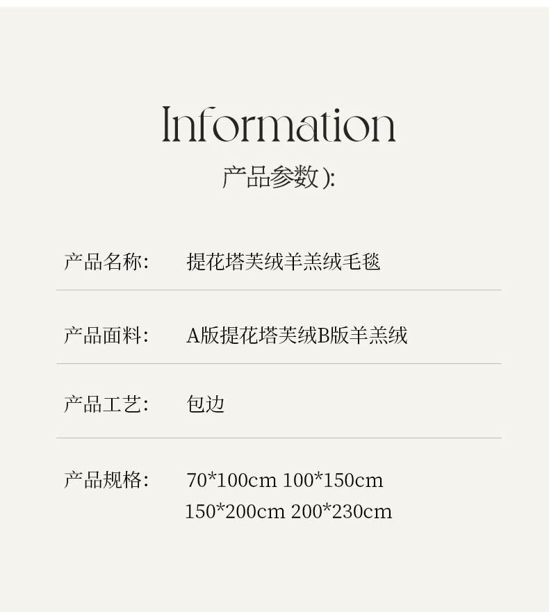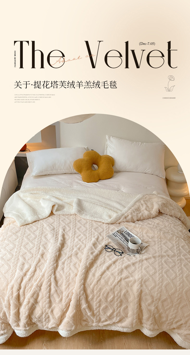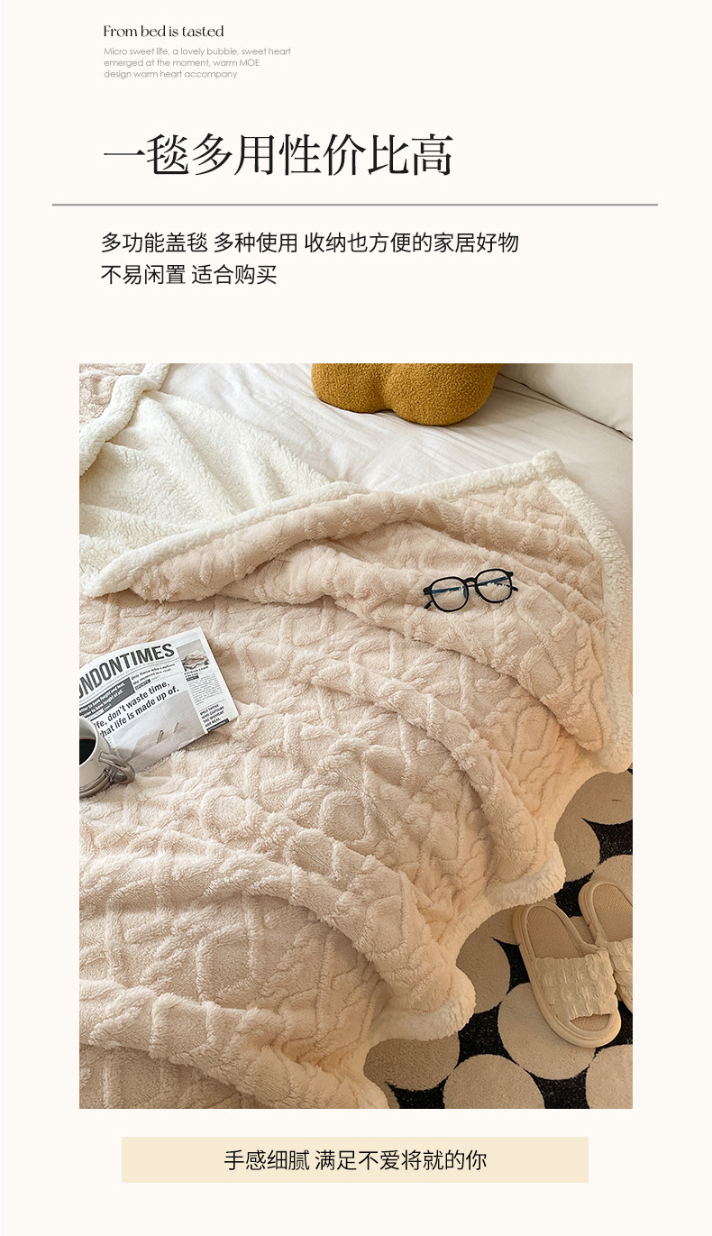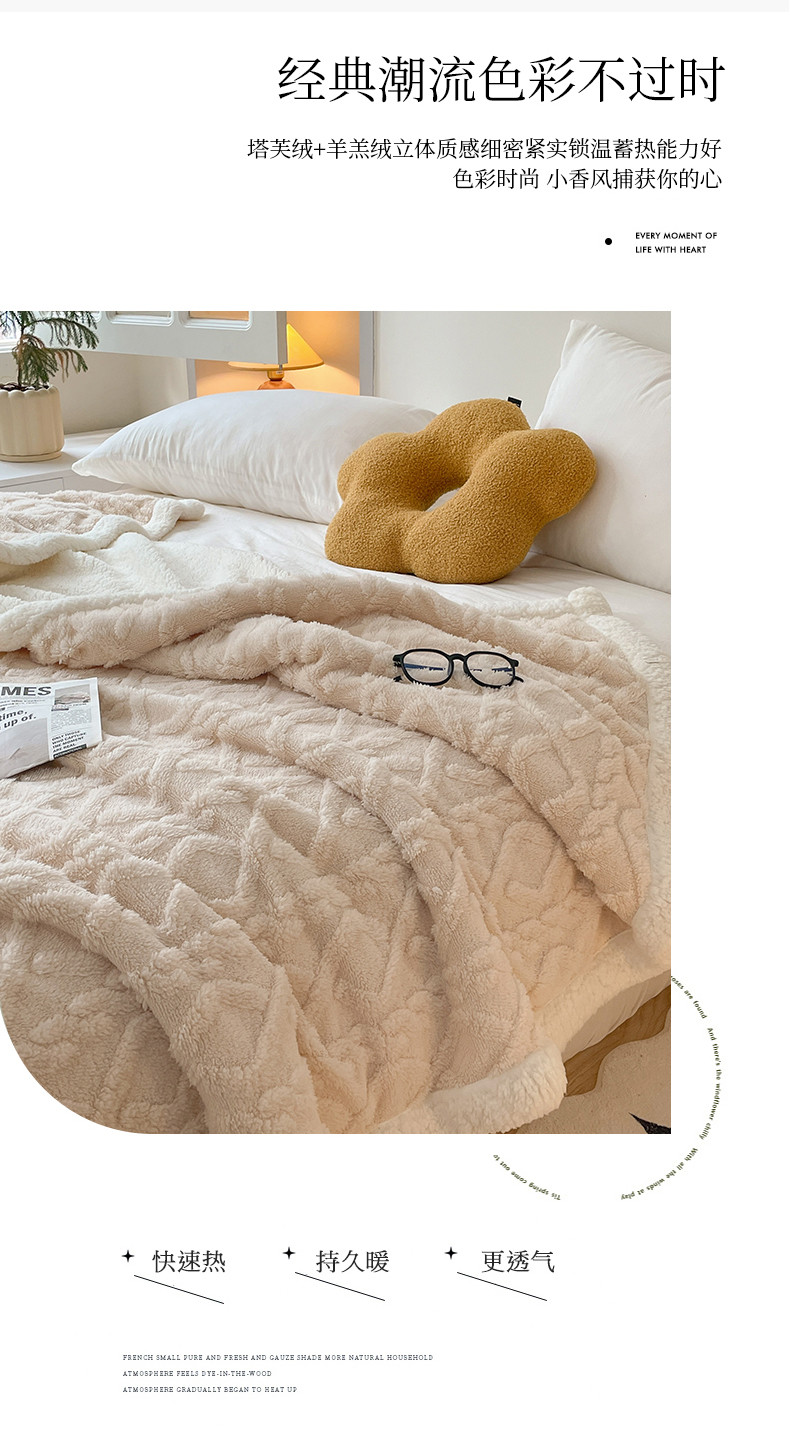 商品名称:欧邦 新款爆款AB版加厚提花塔芙绒羊羔绒毛毯 米白