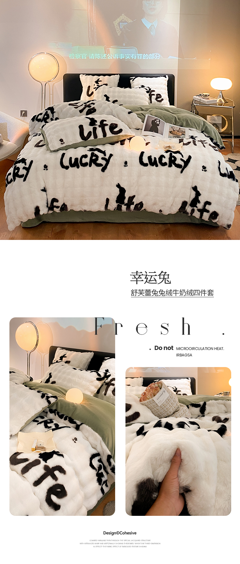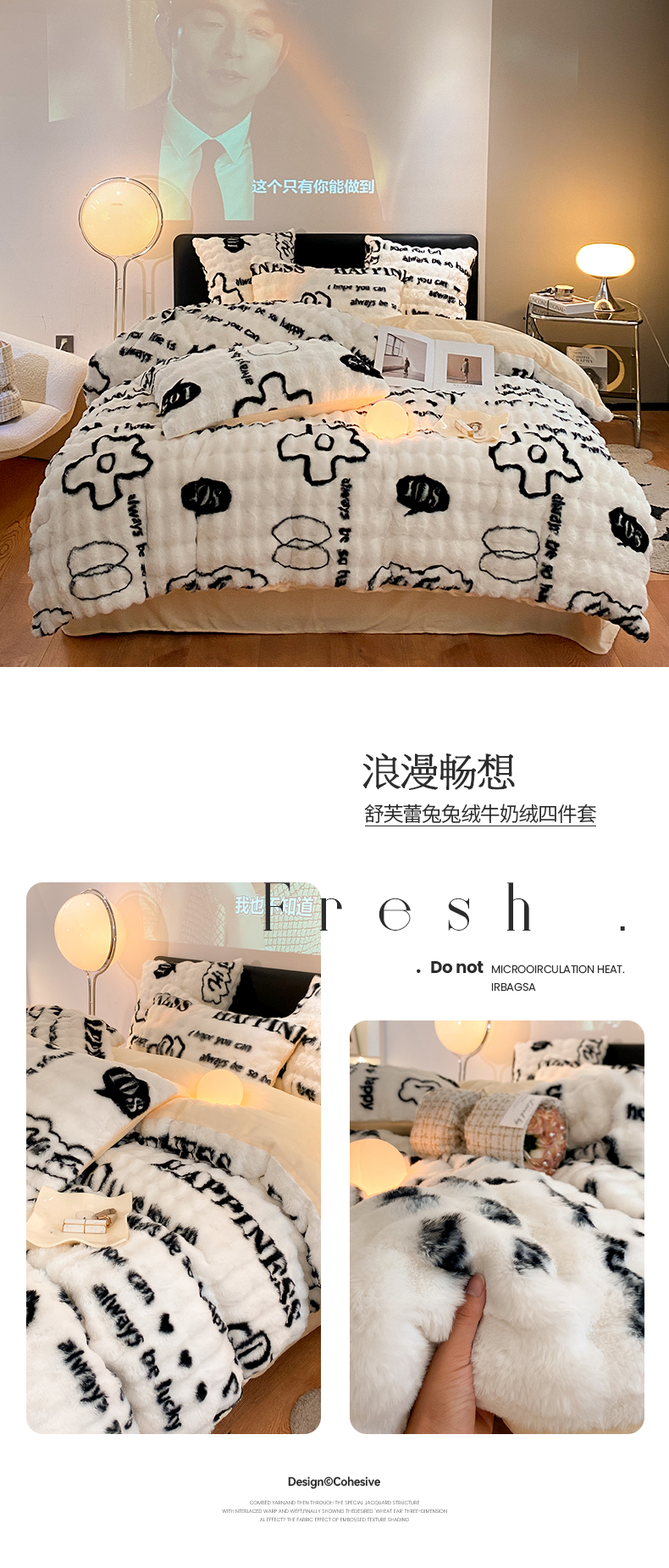 商品名称:(总)澳梵家居 2023舒芙蕾印花兔兔绒牛奶绒四件套