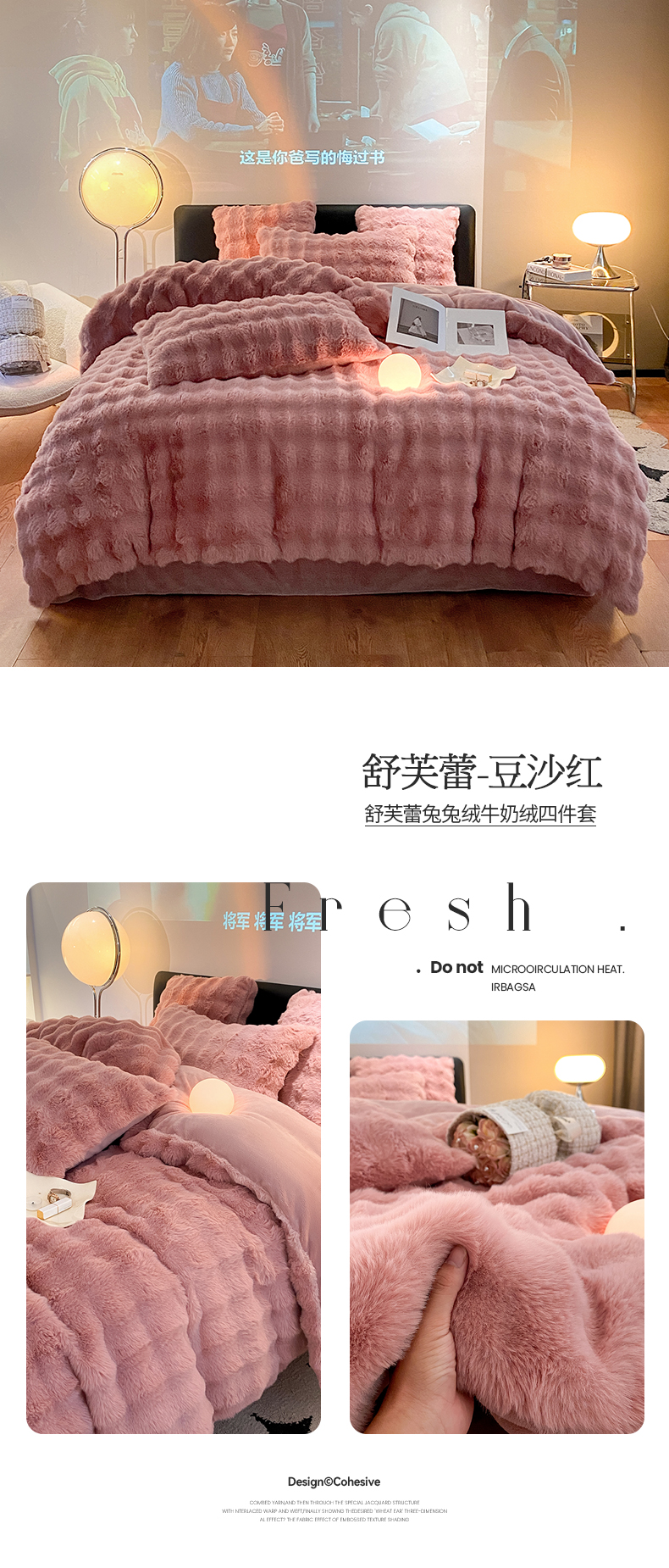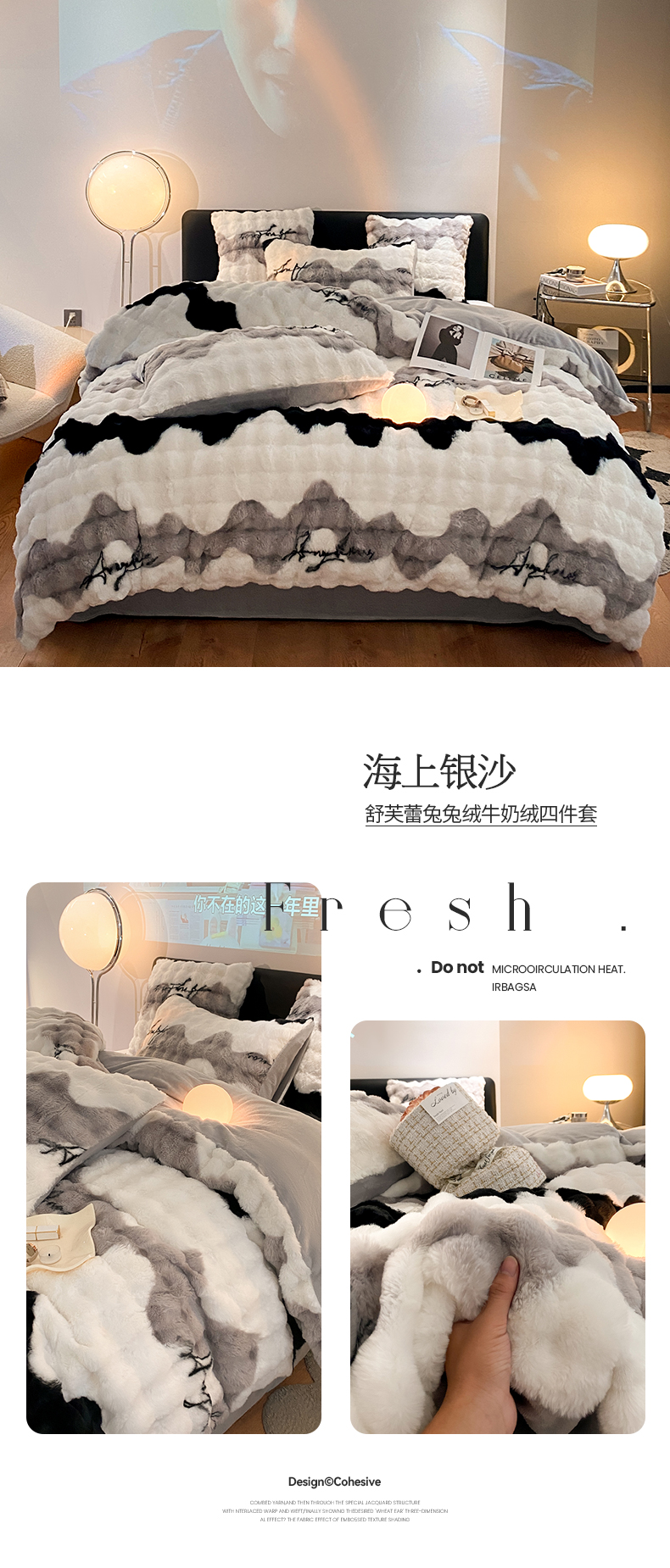 (总)澳梵 2023新款立体压花兔兔绒牛奶绒四件套,波浪-粉豆沙,波浪-橄榄绿,波浪-灰白,波浪-金典黑,波浪-卡其,玫瑰-豆绿,玫瑰-粉白,玫瑰-粉豆沙,玫瑰-天蓝,玫瑰-紫,米拉-豆绿,米拉-豆绿白,米拉-粉豆沙,米拉-浅紫,米拉-天蓝,米拉-卡其