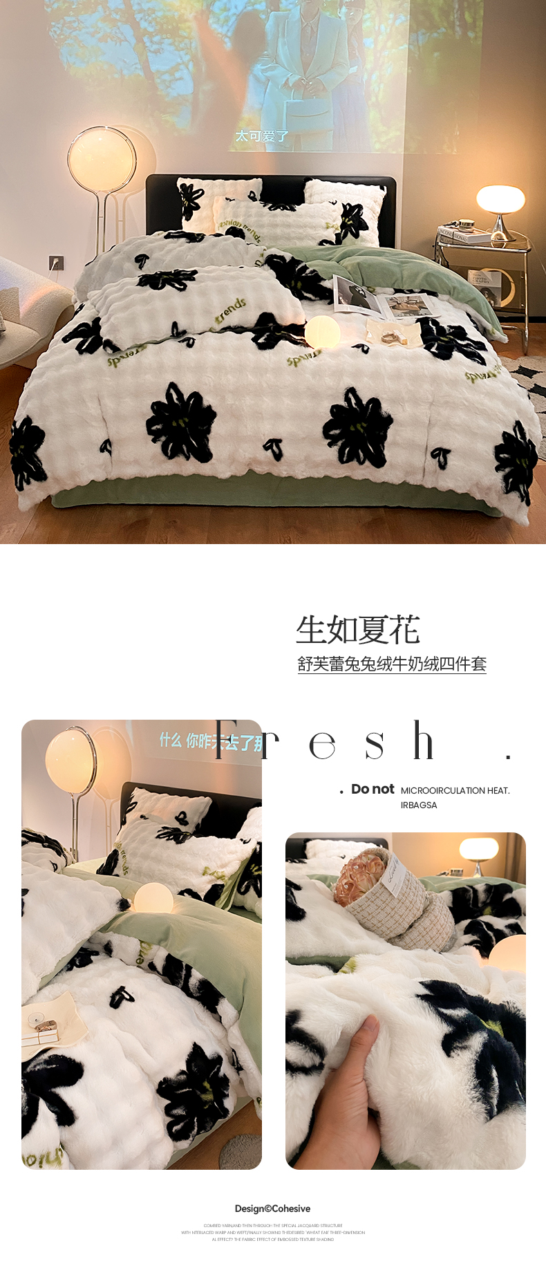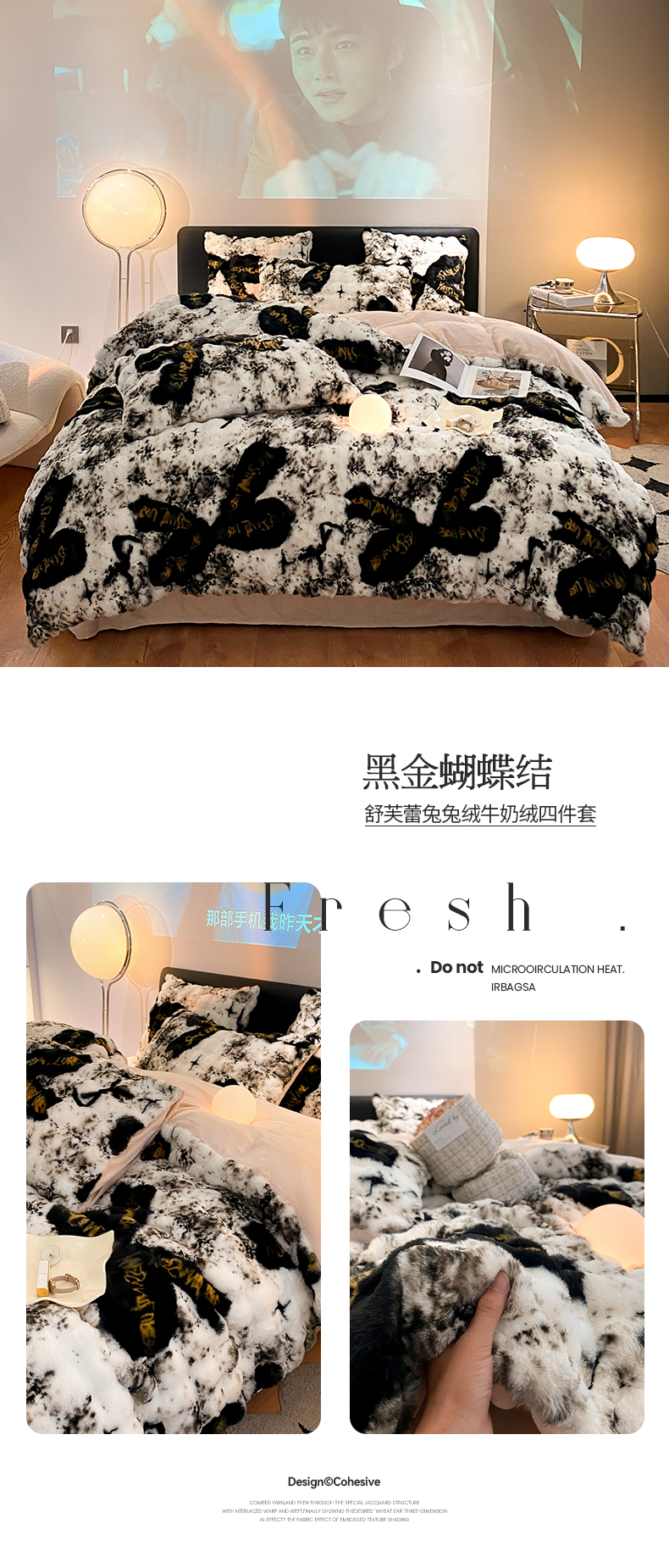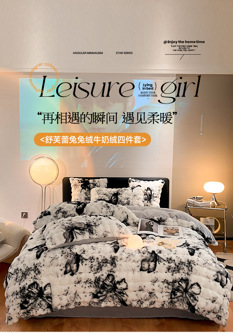(总)澳梵家居 2023舒芙蕾印花兔兔绒牛奶绒四件套