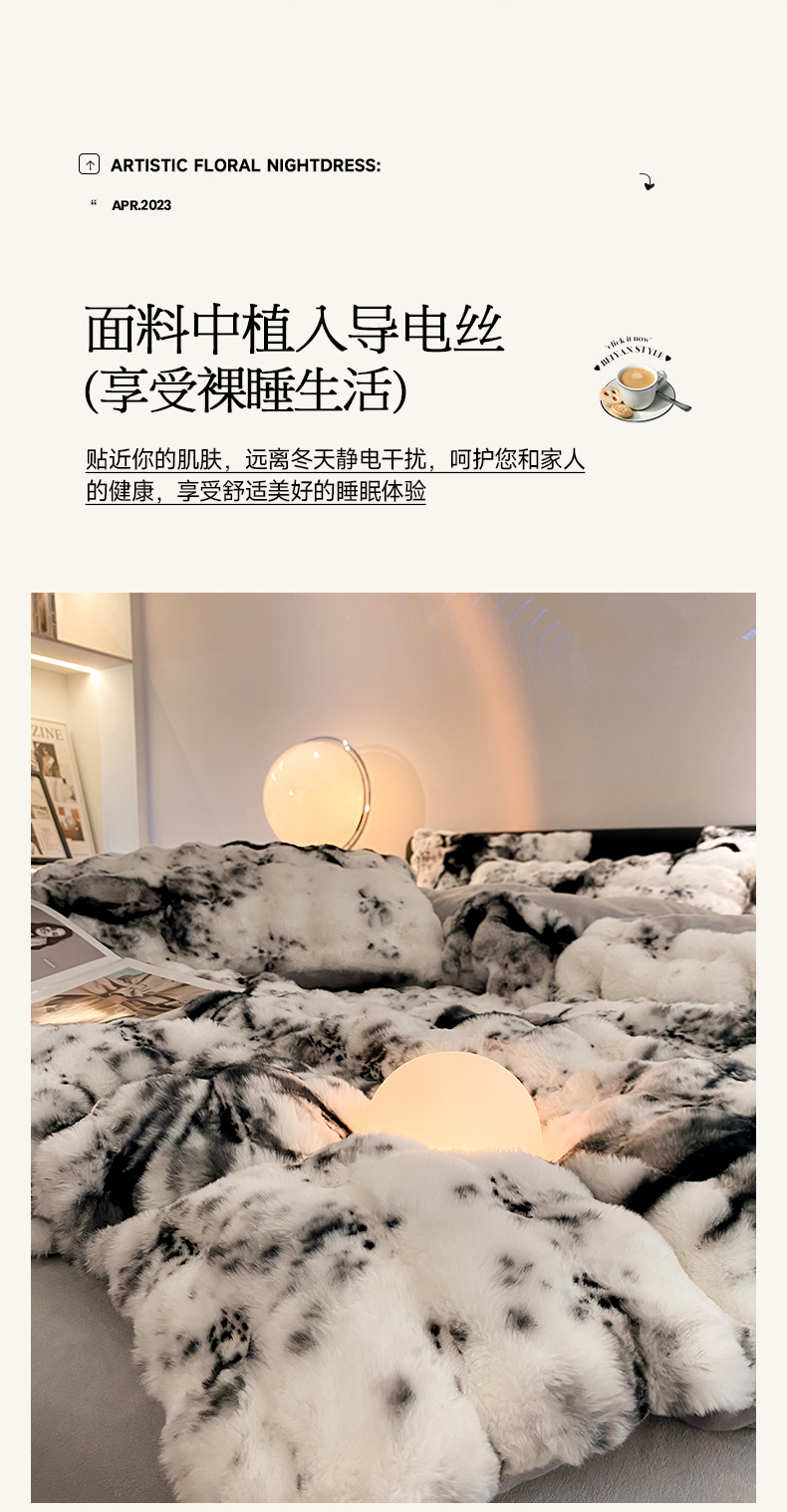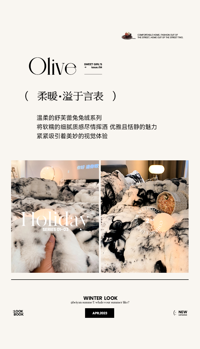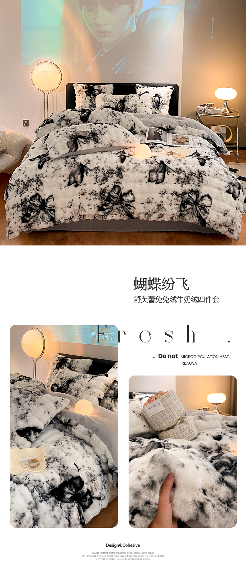 (总)澳梵家居 2023舒芙蕾印花兔兔绒牛奶绒四件套