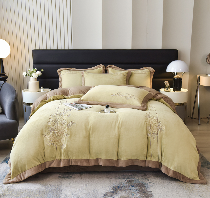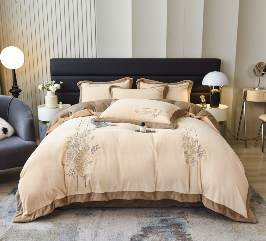 商品名称:(总)麻依 2023新款高克重牛奶绒刺绣四件套 遇晚亭系列