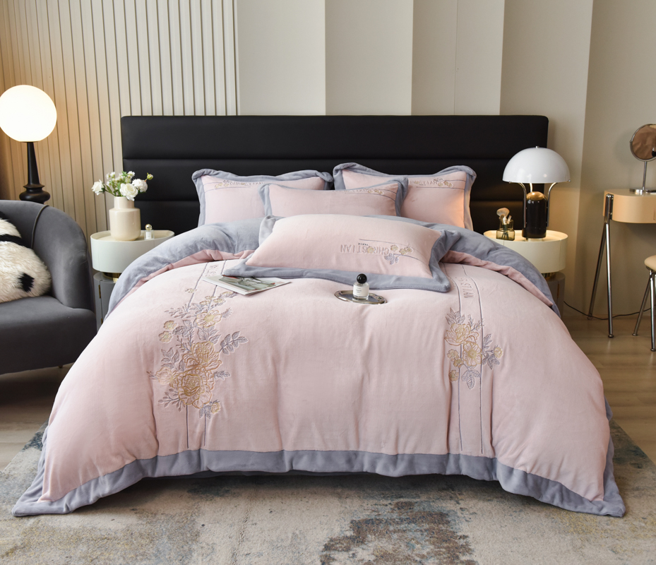 (总)麻依 2023新款高克重牛奶绒刺绣四件套 遇晚亭系列