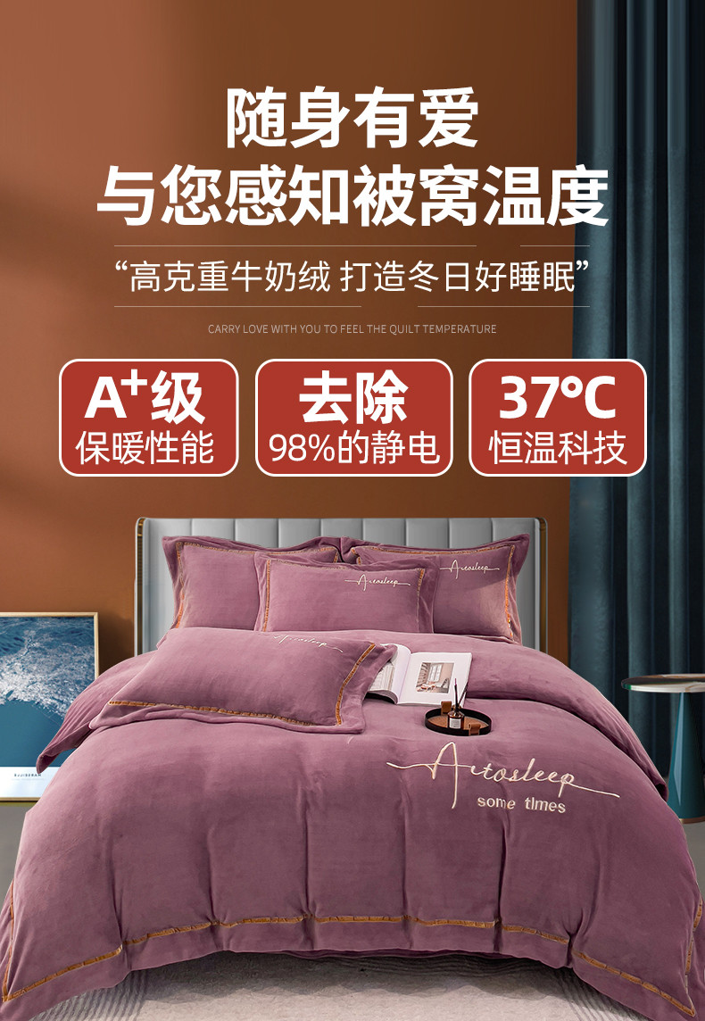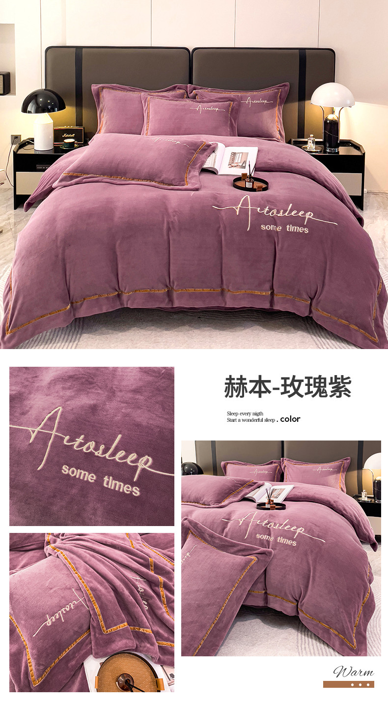当前位置: 91家纺网 > 商品网购 > 床品套件 > 四件套 > 牛奶绒四件套 > 露梦 2025新款高克重牛奶绒刺绣四件套-赫本 赫本-玫瑰紫