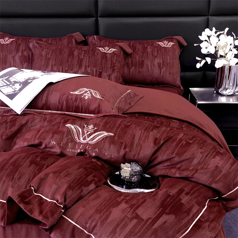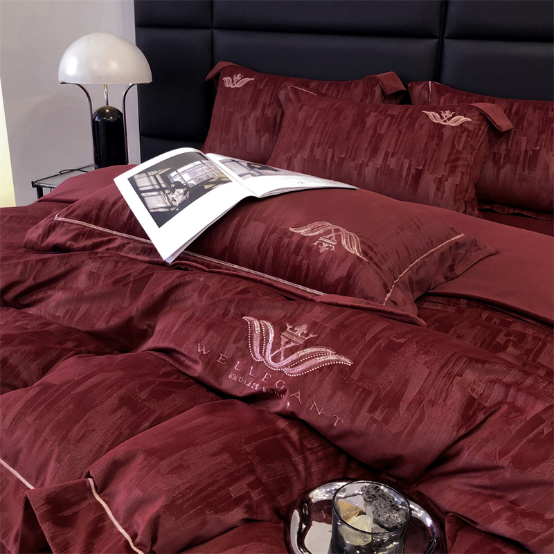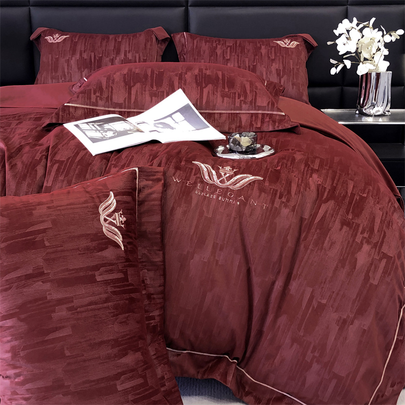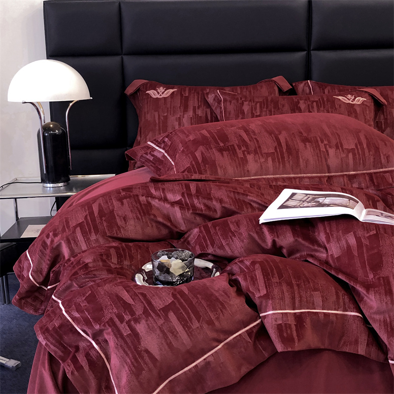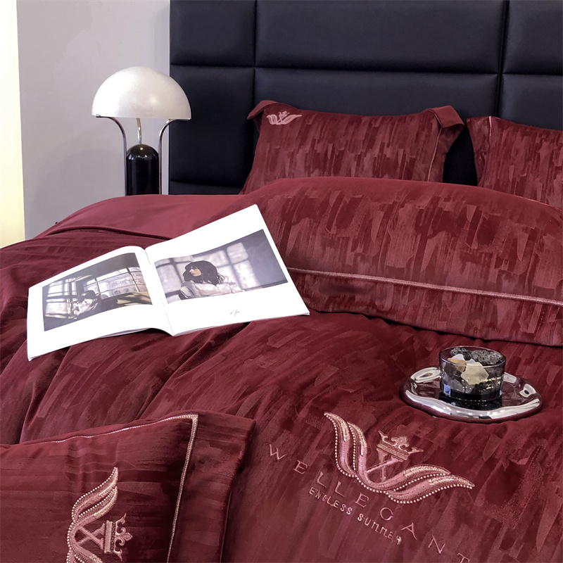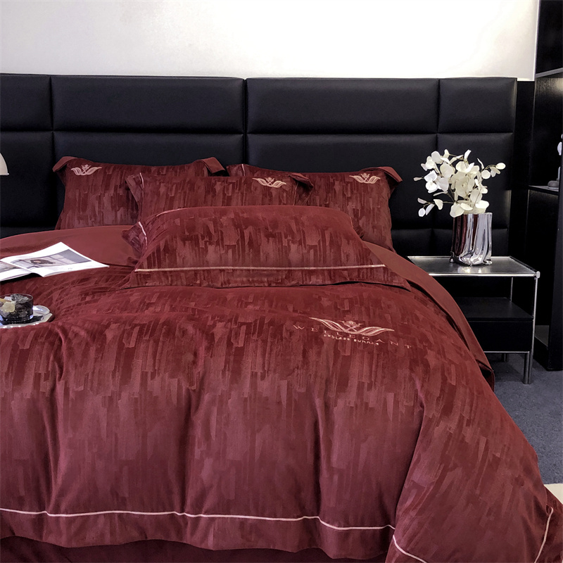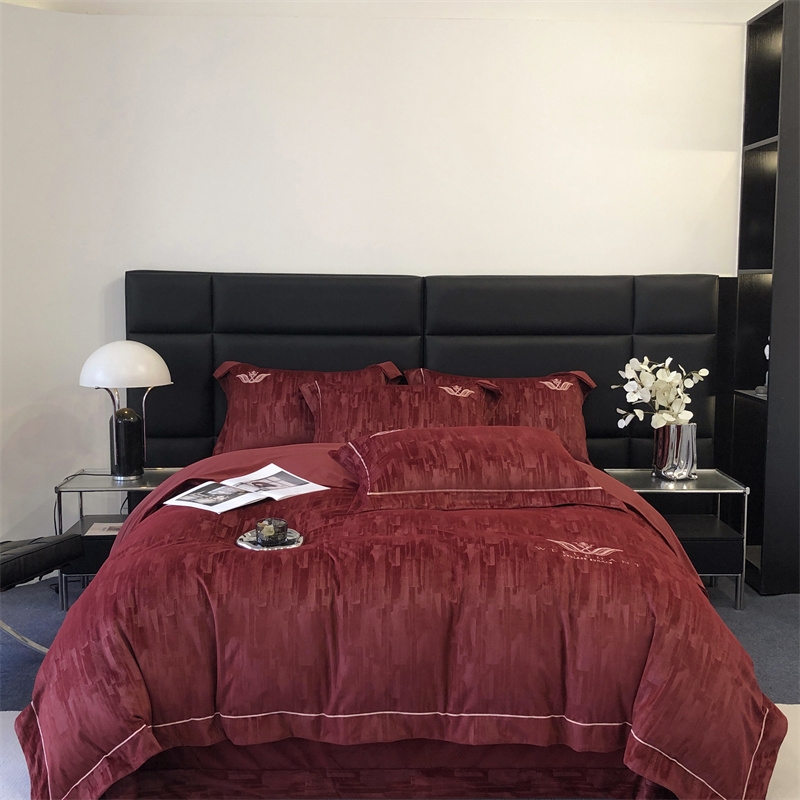 时亿 2023新款纯植物真丝绒四件套卡斯特 卡斯特-酒红