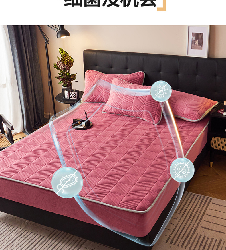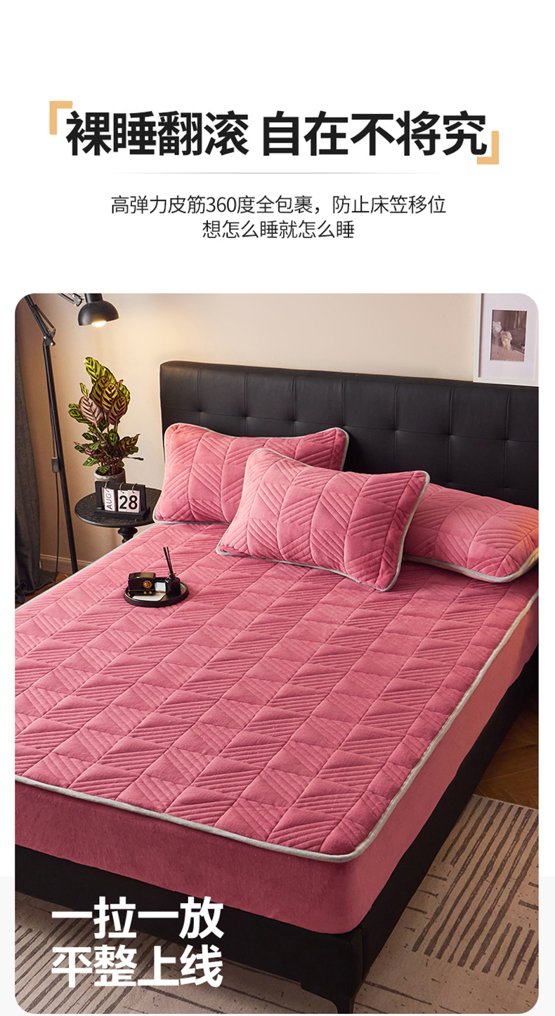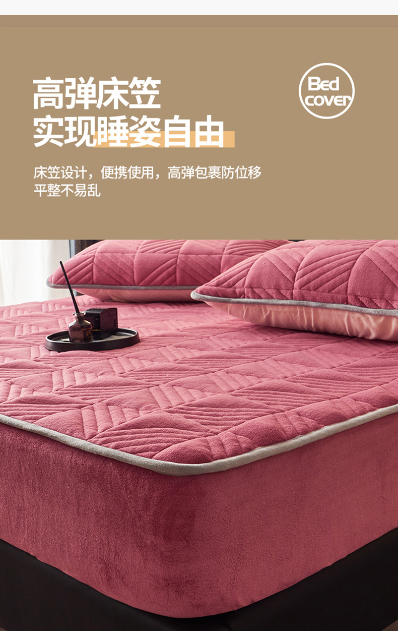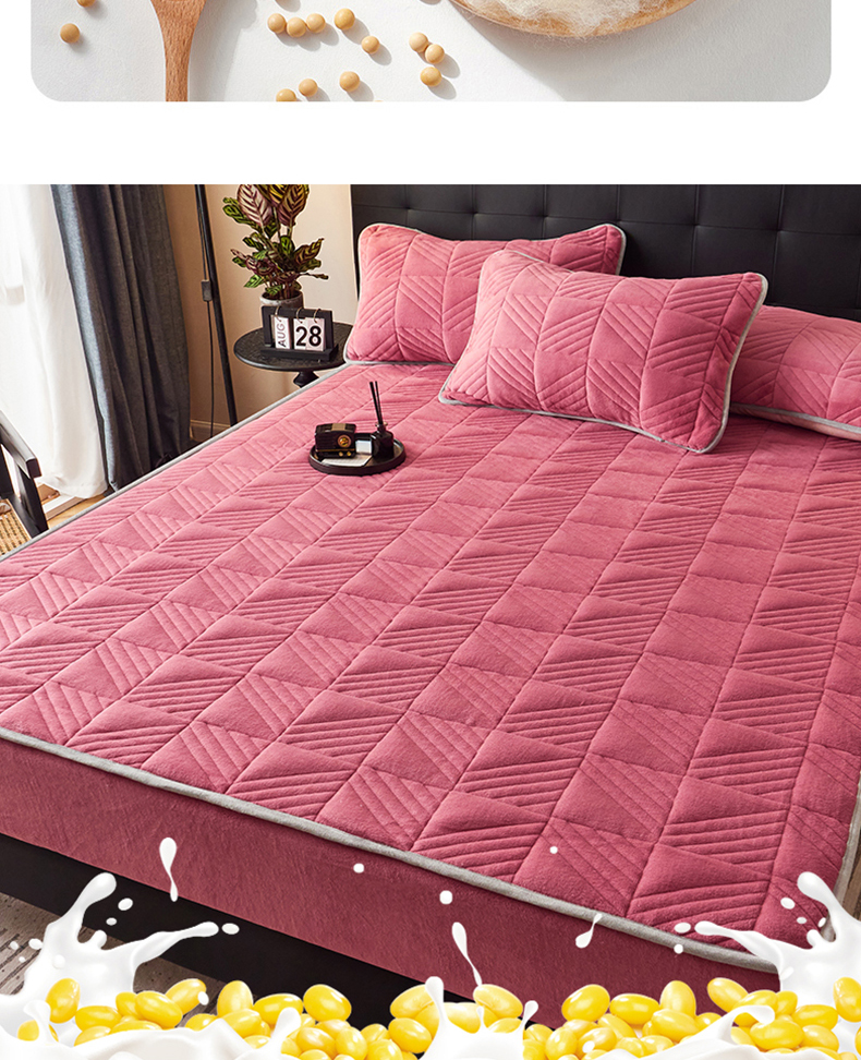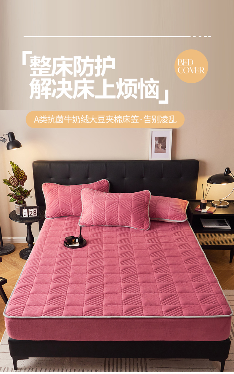 商品名称:全季家居2023新款A类大豆纤维抗静电牛奶绒夹棉床笠-纯色 豆沙