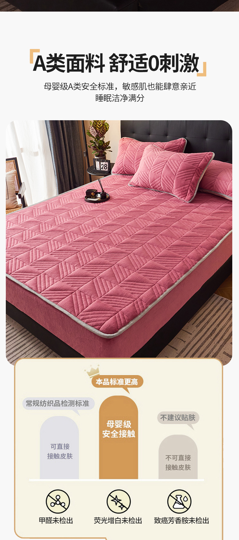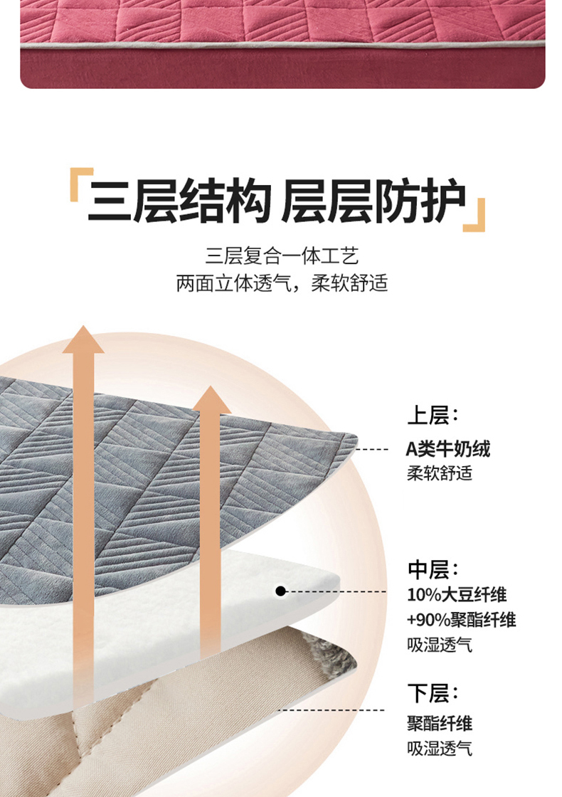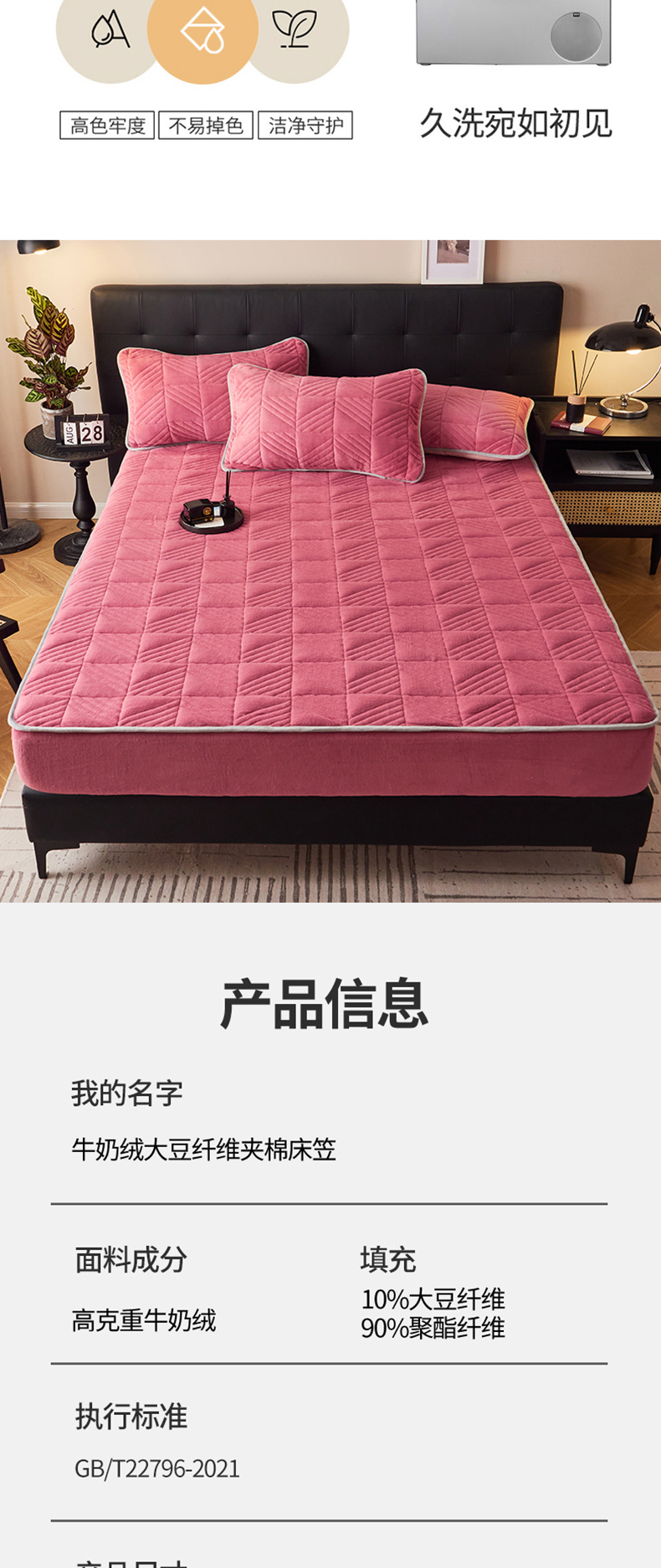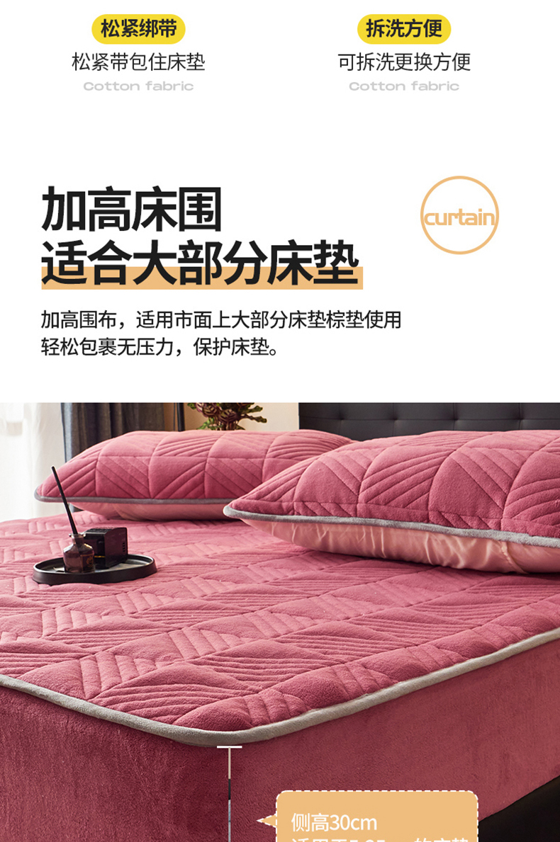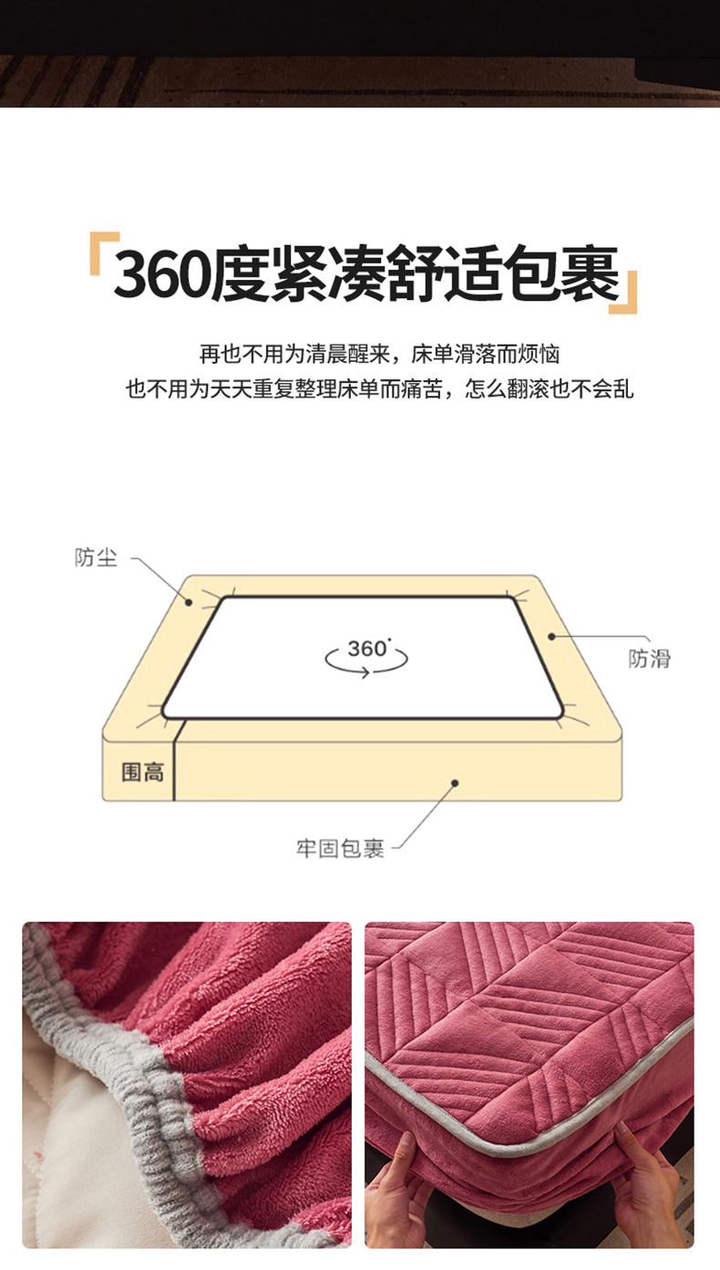 商品名称:全季家居2023新款A类大豆纤维抗静电牛奶绒夹棉床笠-纯色 豆沙