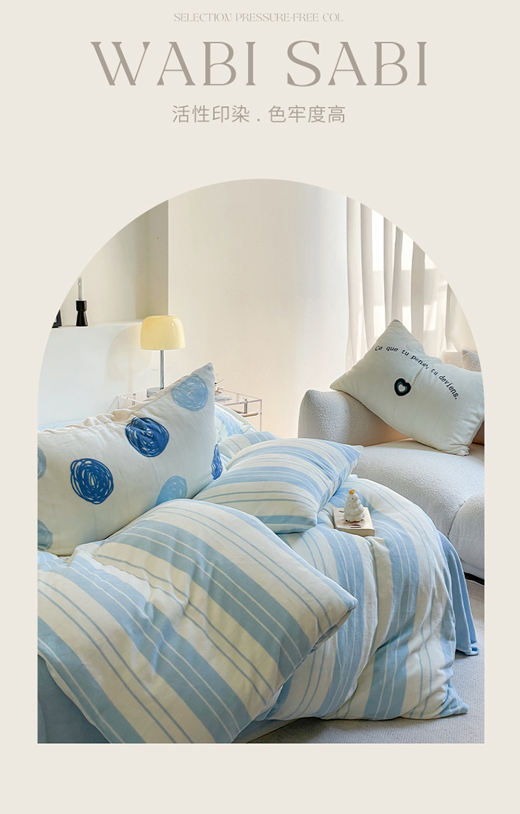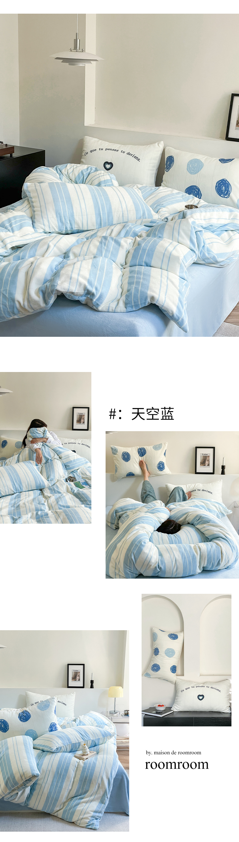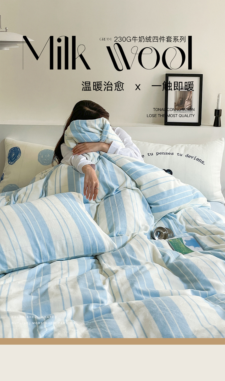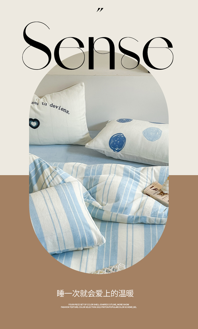 圆岛家纺 2023新款原创牛奶绒印花保暖四件套 天空蓝