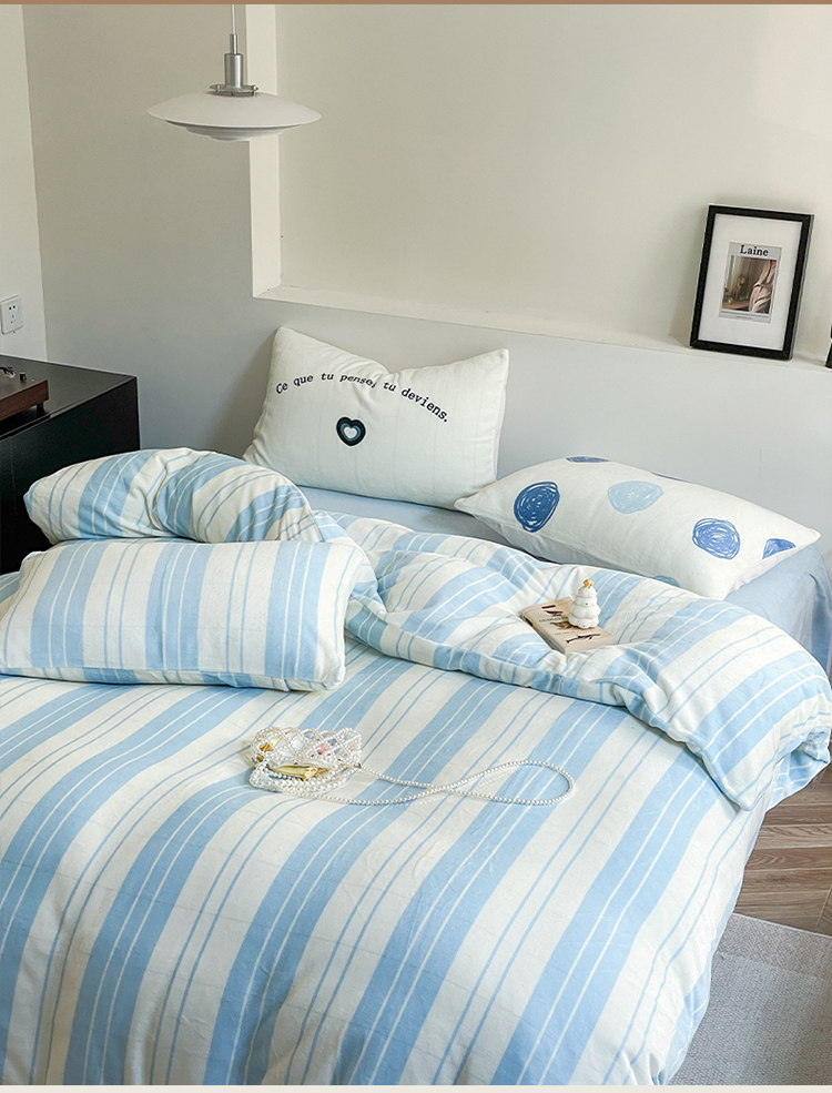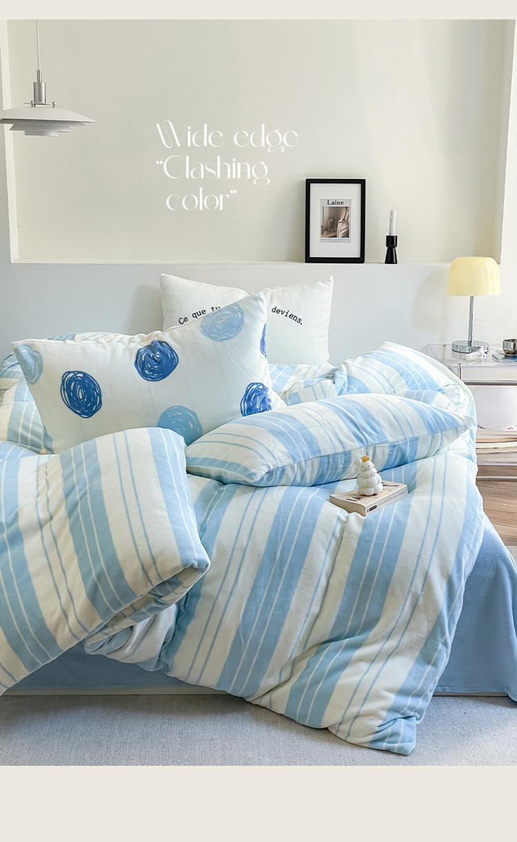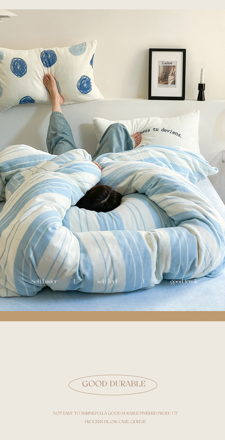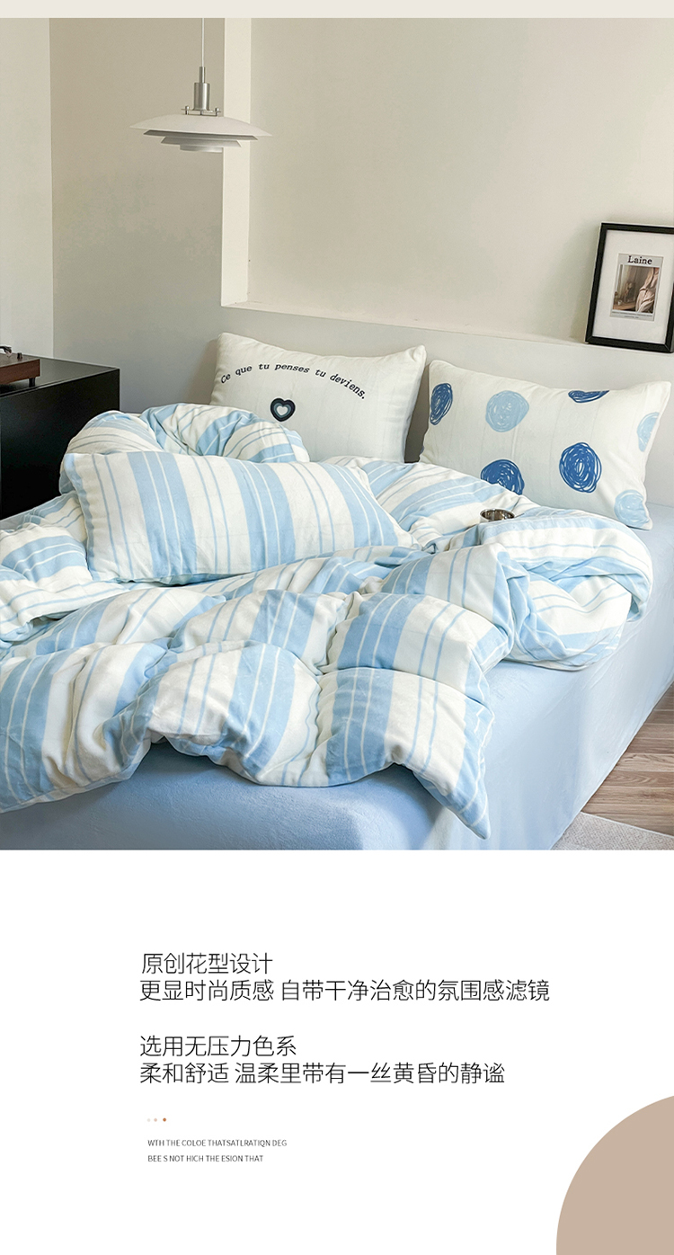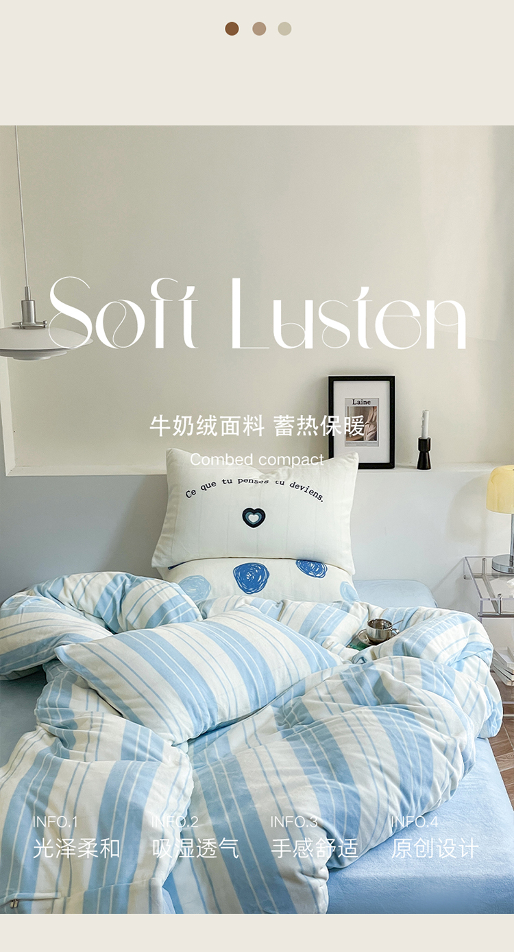 圆岛家纺 2023新款原创牛奶绒印花保暖四件套 天空蓝