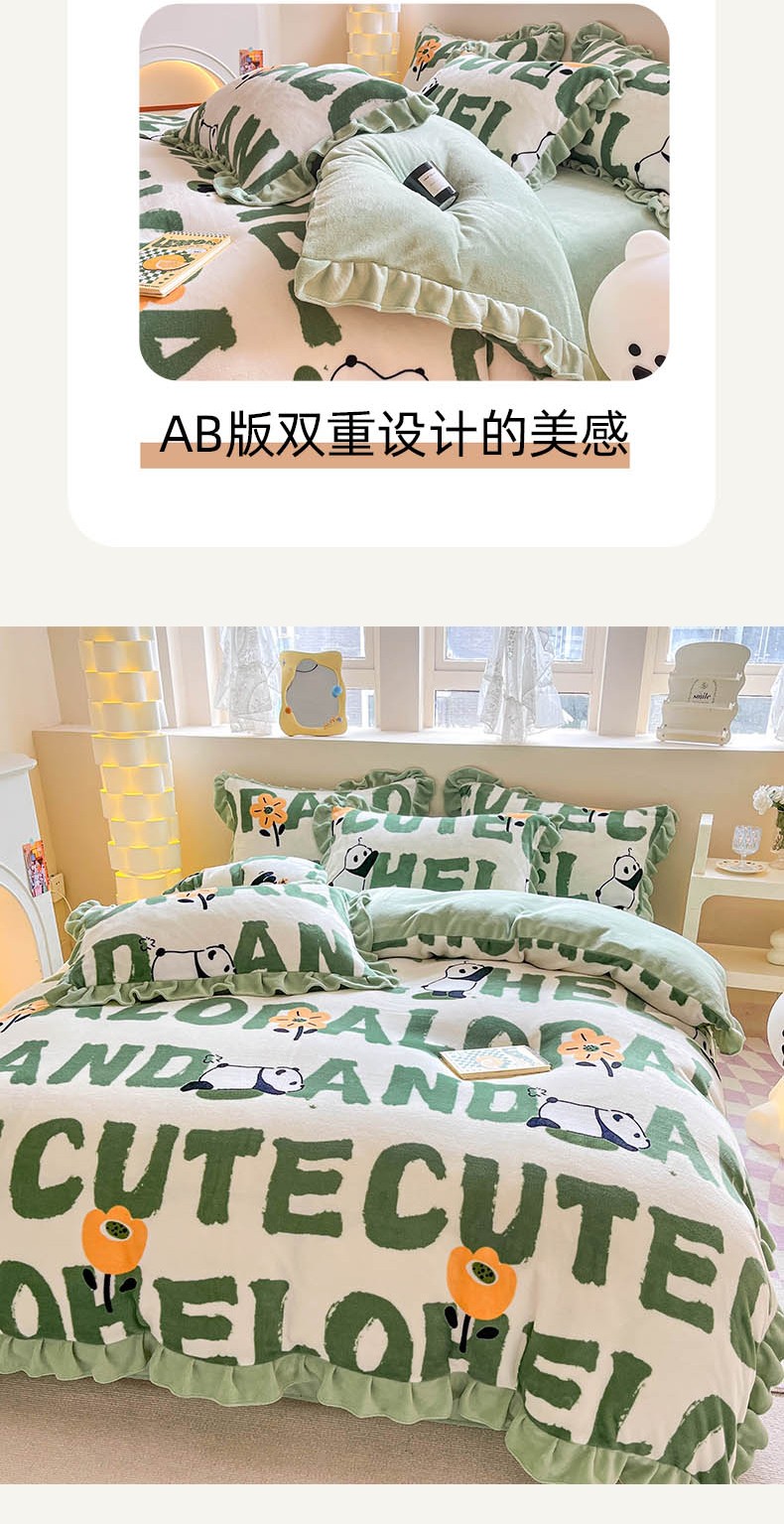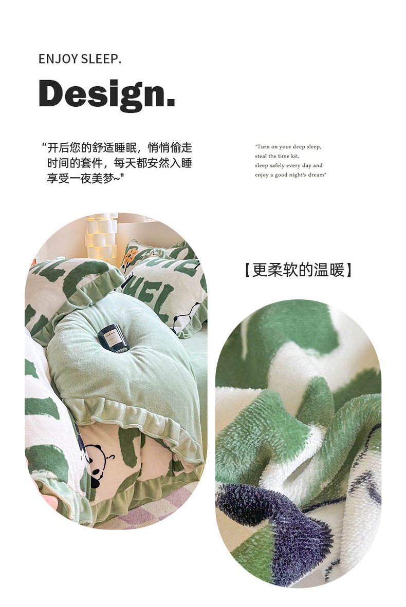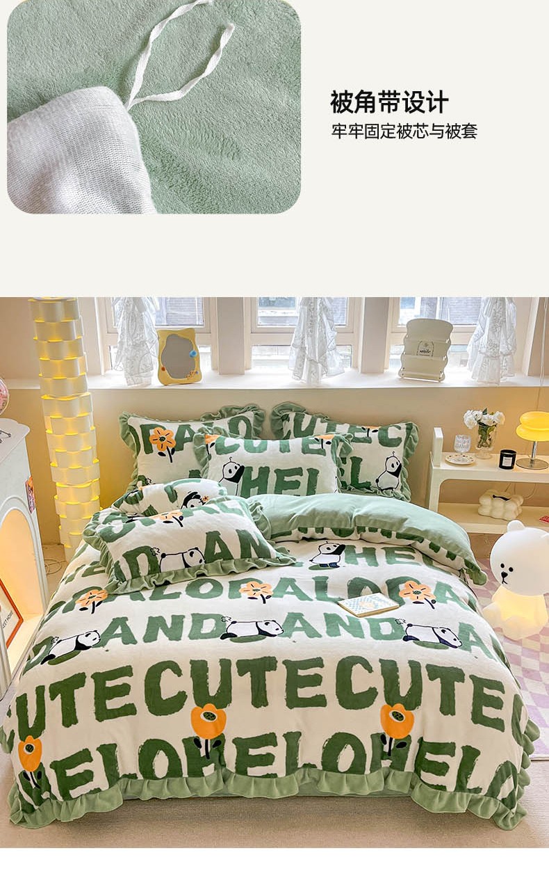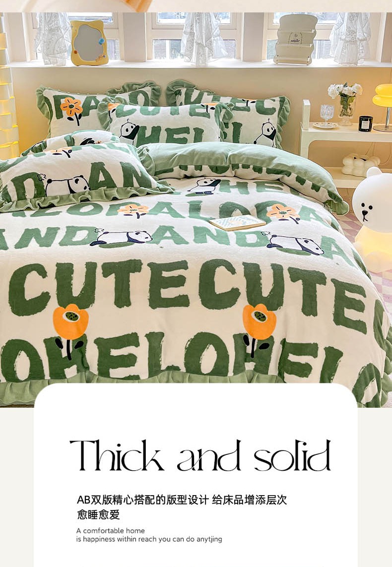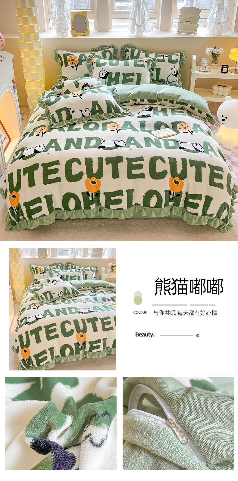 米莱 2023新款印花韩版牛奶绒四件套 熊猫嘟嘟