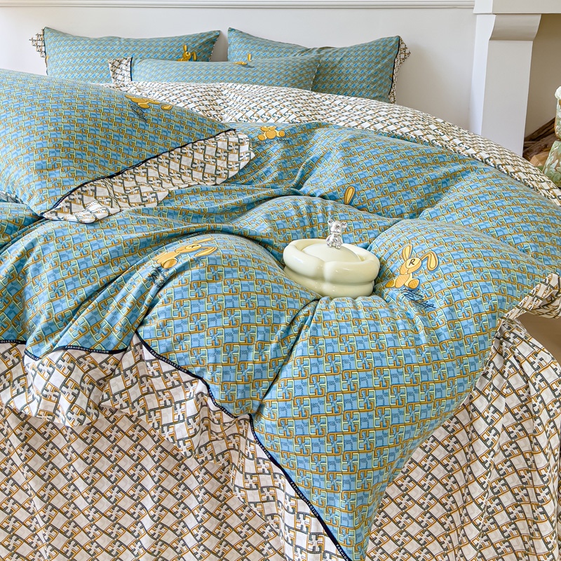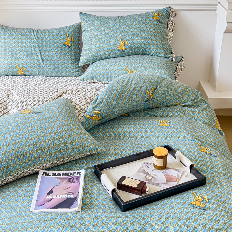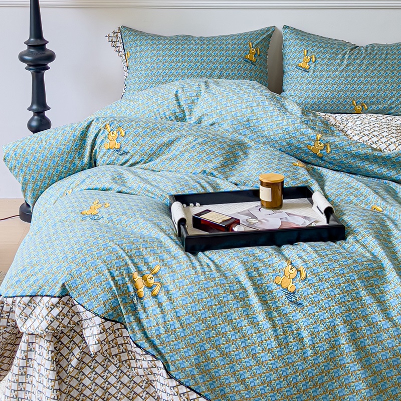 棉生活 2023新款云绒棉印花宽边四件套 潮牌兔