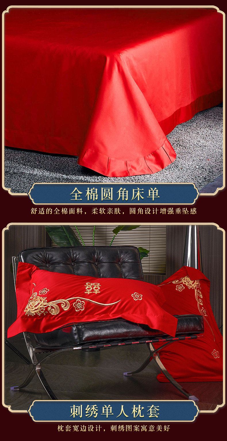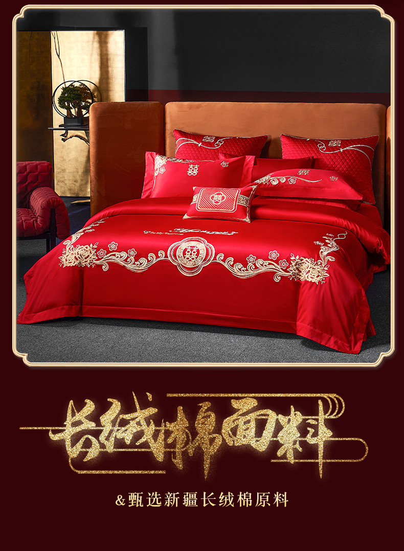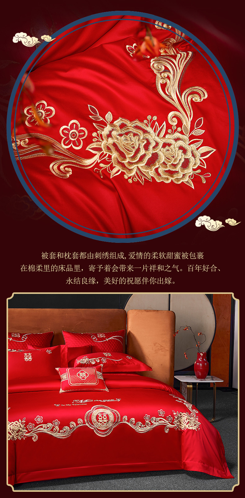 当前位置: 91家纺网 > 商品网购 > 床品套件 > 四件套 > 婚庆四件套 > 高大尚婚庆馆 2023新款臻棉贡缎系列婚庆四件套 传喜