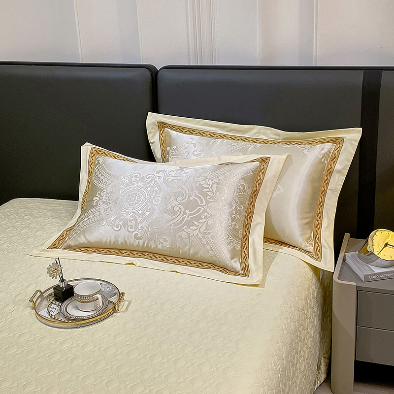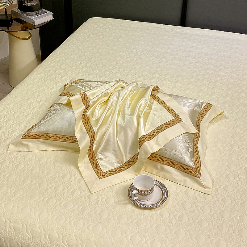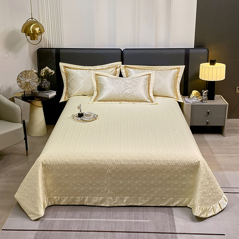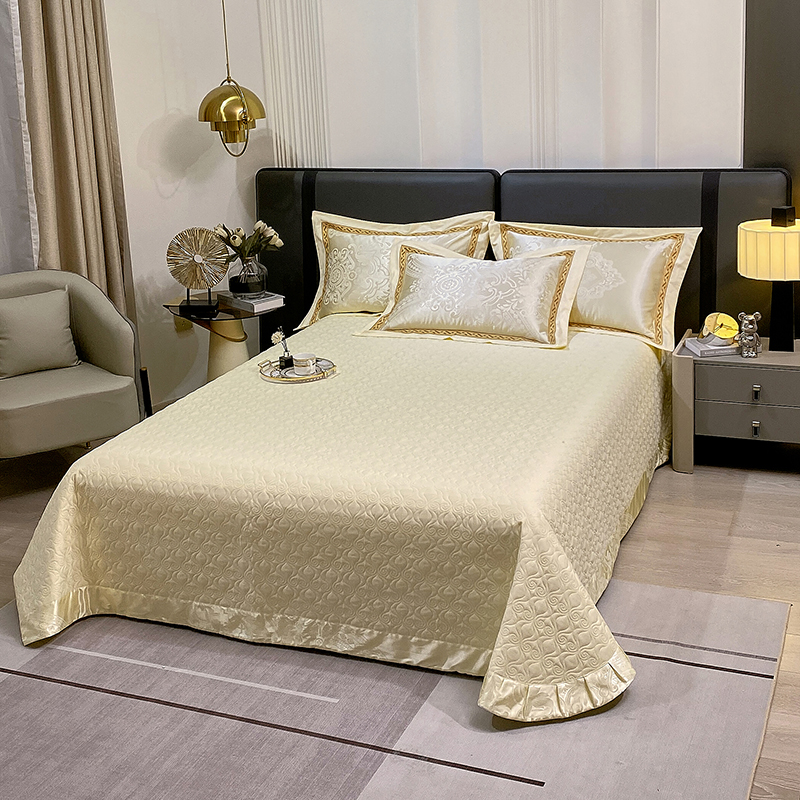 小时代家纺 2023新款纯棉贡缎提花夹棉单床盖 素雅米黄