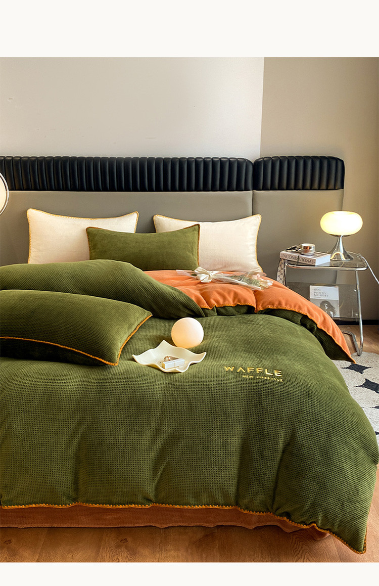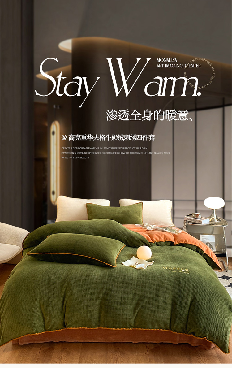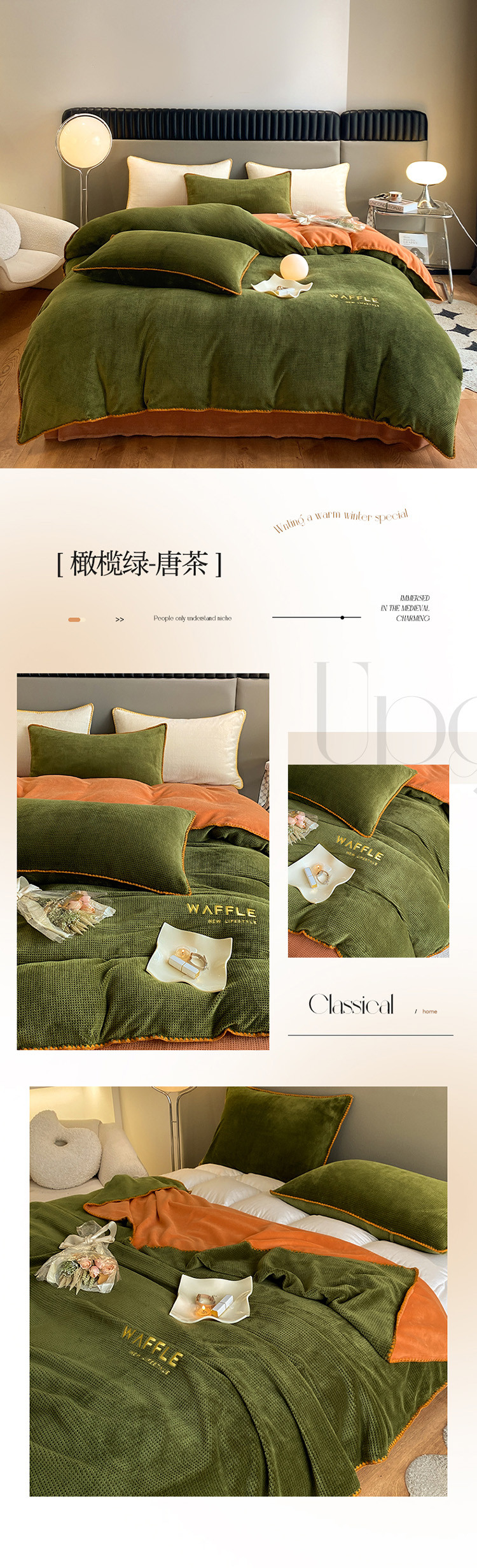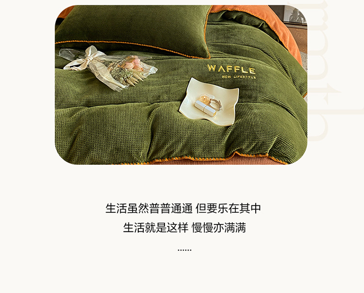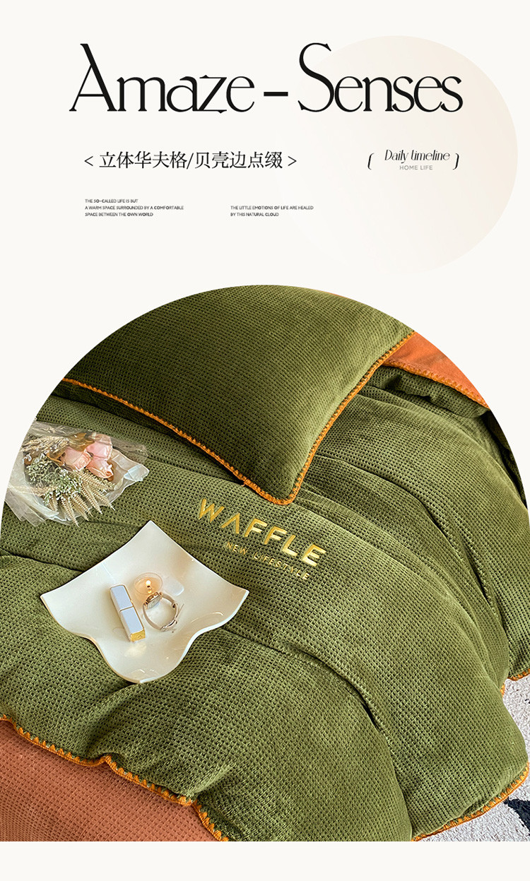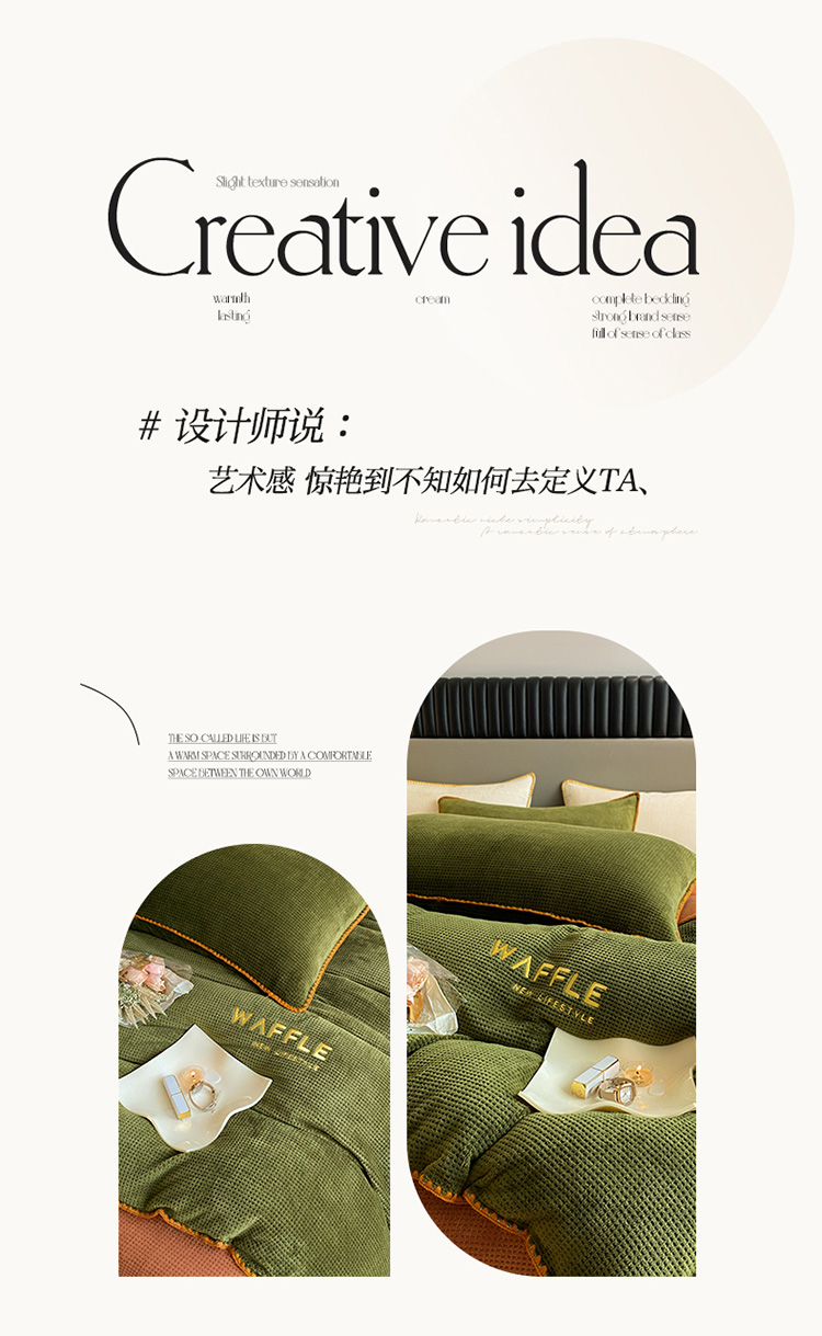 当前位置: 91家纺网 > 商品网购 > 床品套件 > 四件套 > 牛奶绒四件套 > 吾诺 2023贝壳边华夫格牛奶绒四件套-轻奢版拍摄风格 橄榄绿-唐茶