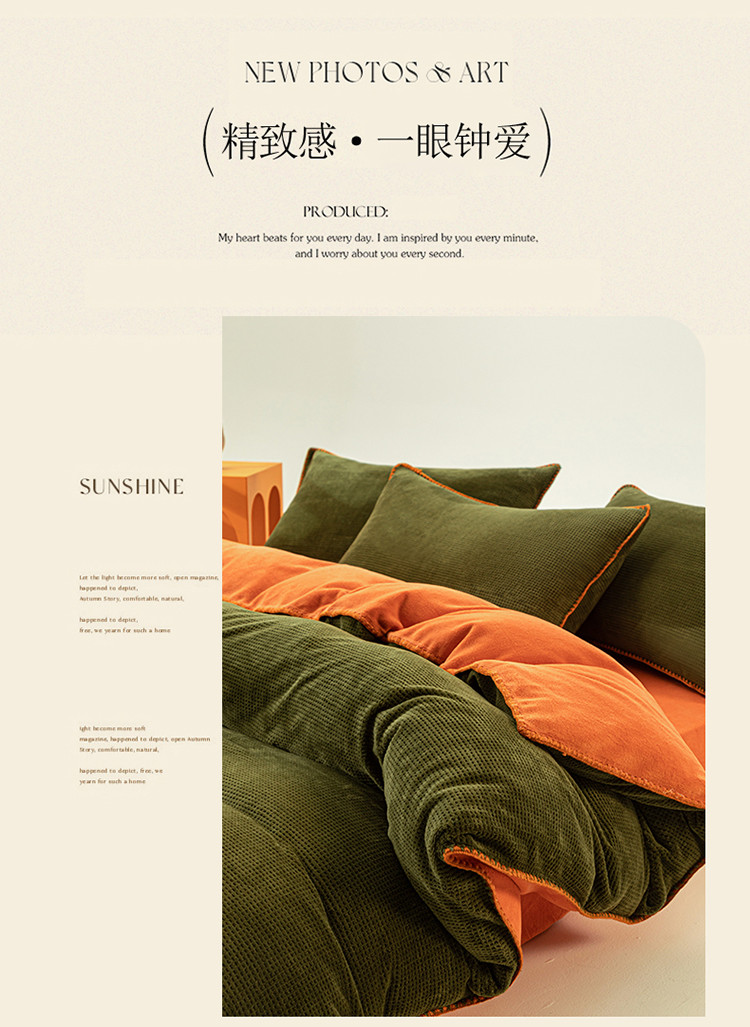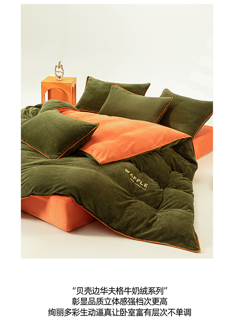 当前位置: 91家纺网 > 商品网购 > 床品套件 > 四件套 > 牛奶绒四件套 > 吾诺2023秋冬贝壳边华夫格牛奶绒四件套-纯净版拍摄风格 橄榄绿-唐茶