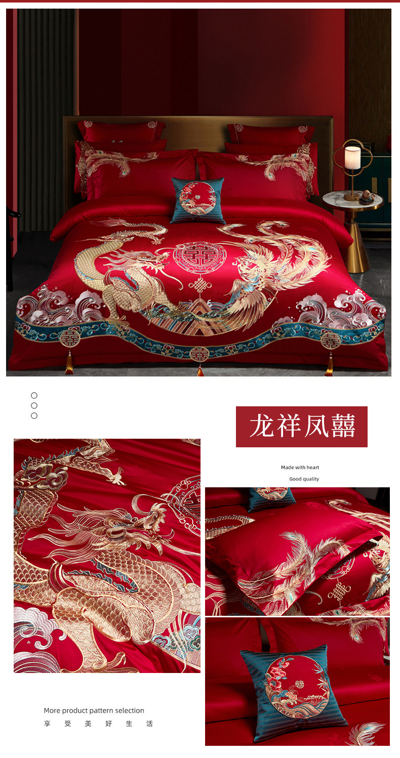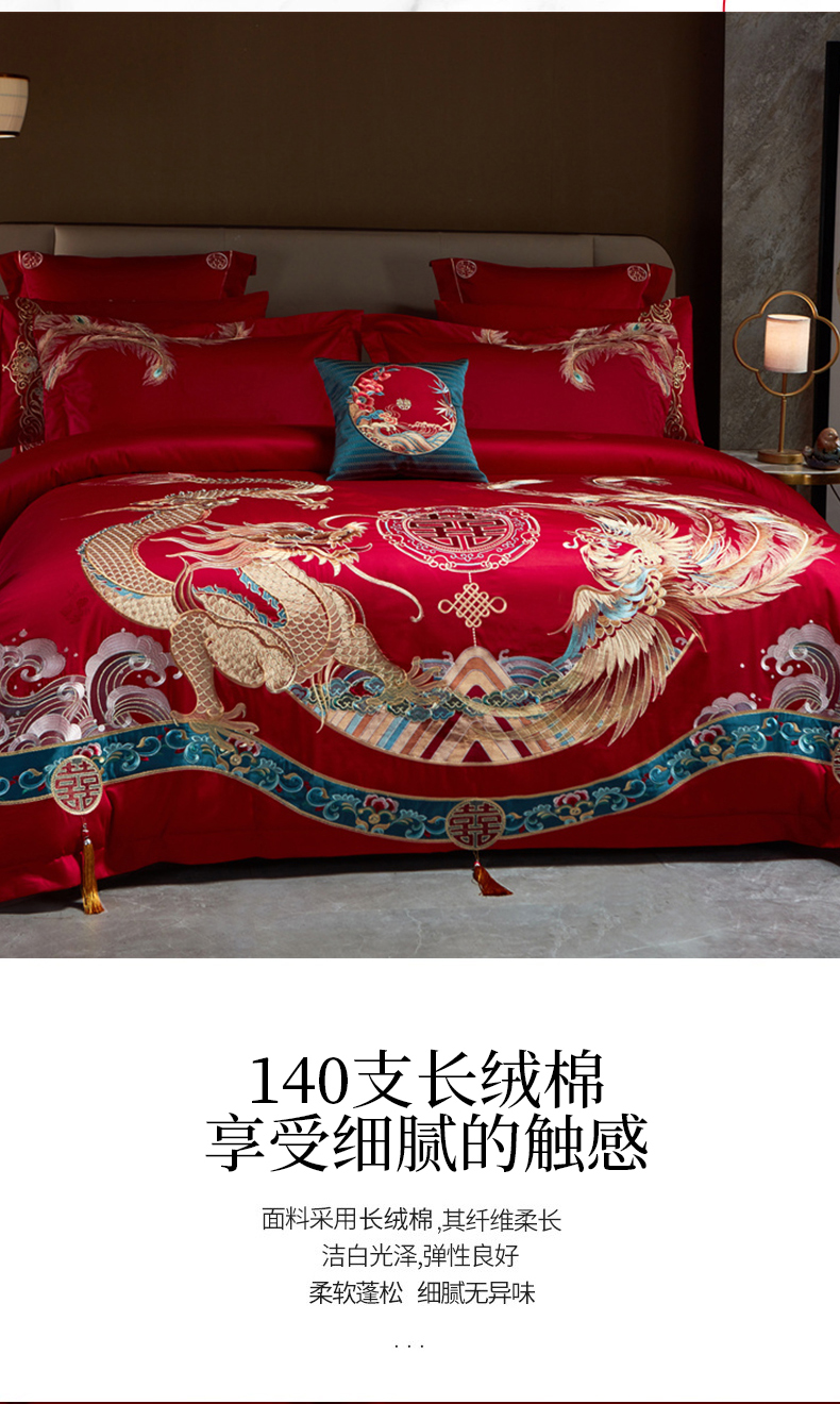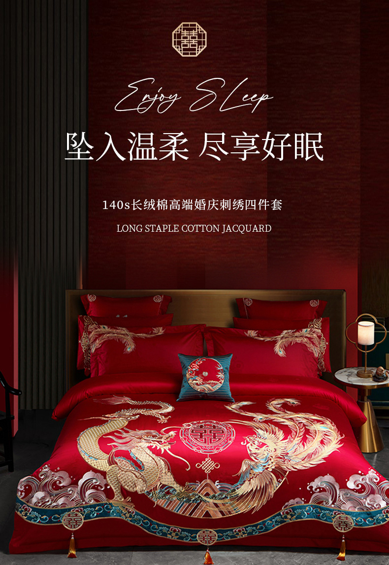 当前位置: 91家纺网 > 商品网购 > 床品套件 > 四件套 > 长绒棉四件套 > (总)用心 2023新款140s长绒棉高端婚庆刺绣四件套