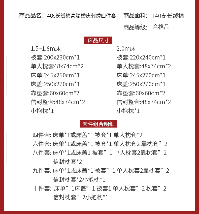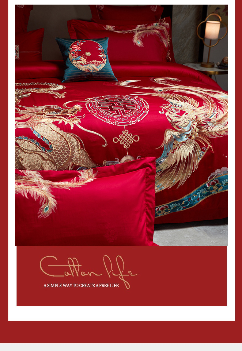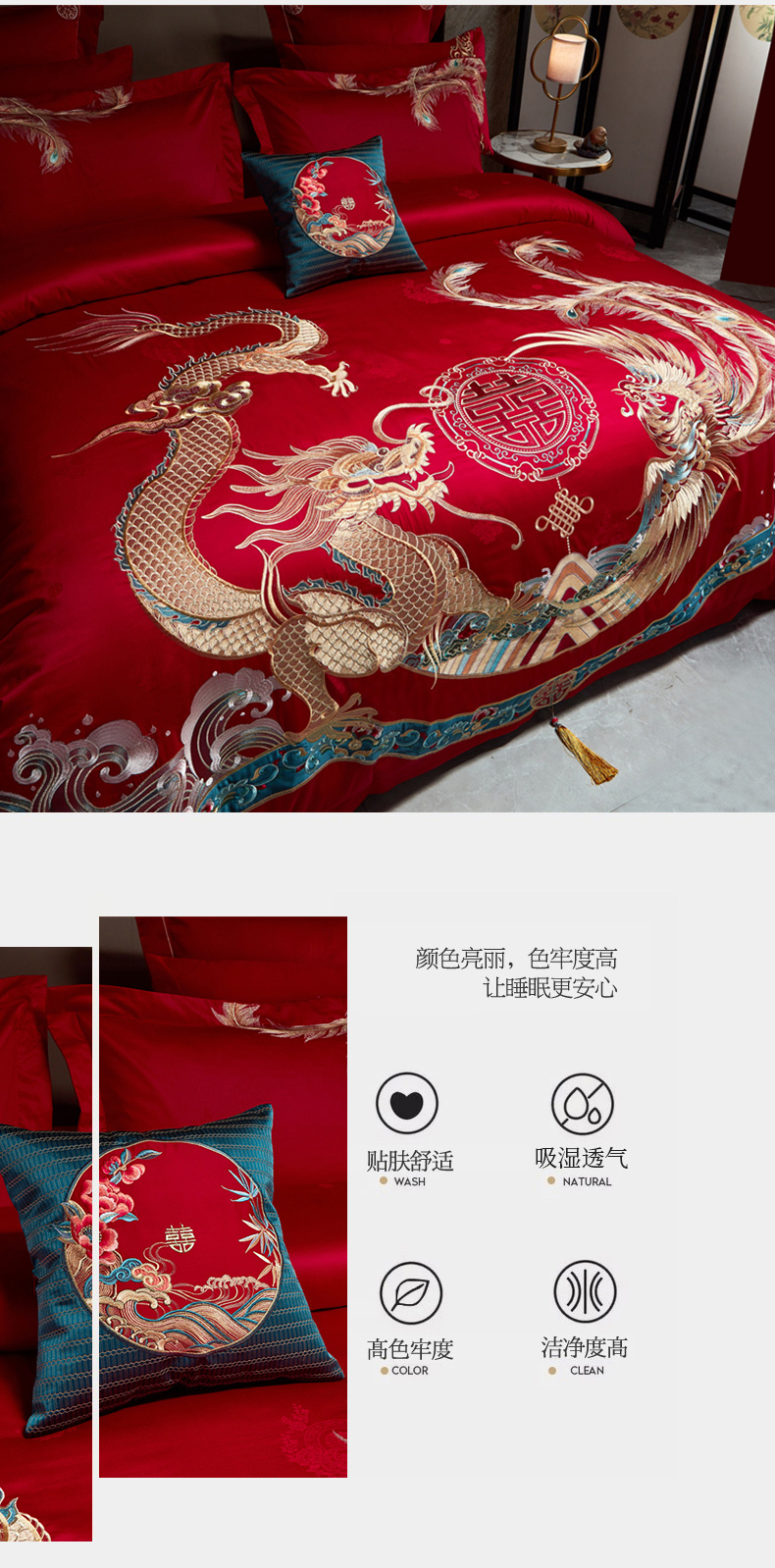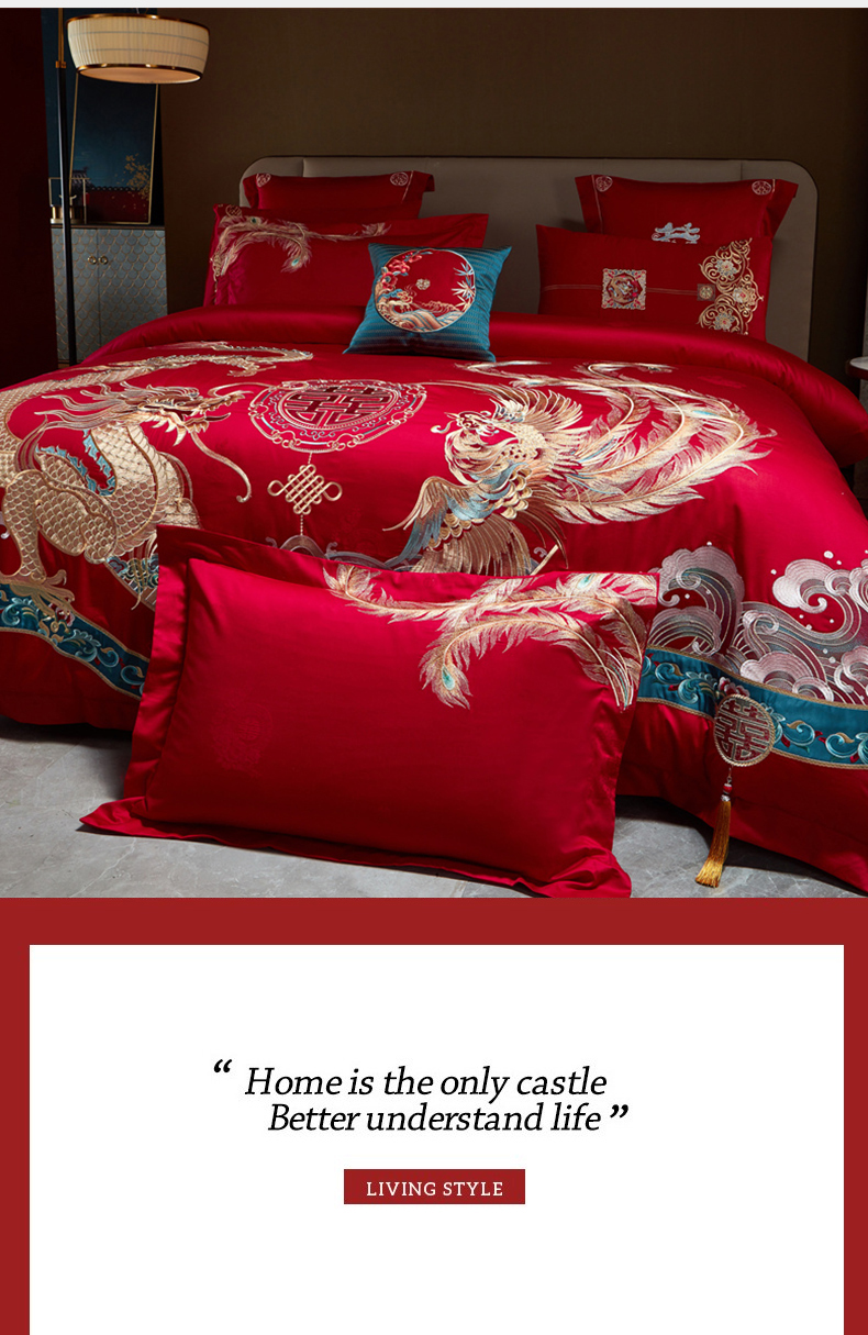 当前位置: 91家纺网 > 商品网购 > 床品套件 > 四件套 > 长绒棉四件套 > (总)用心 2023新款140s长绒棉高端婚庆刺绣四件套
