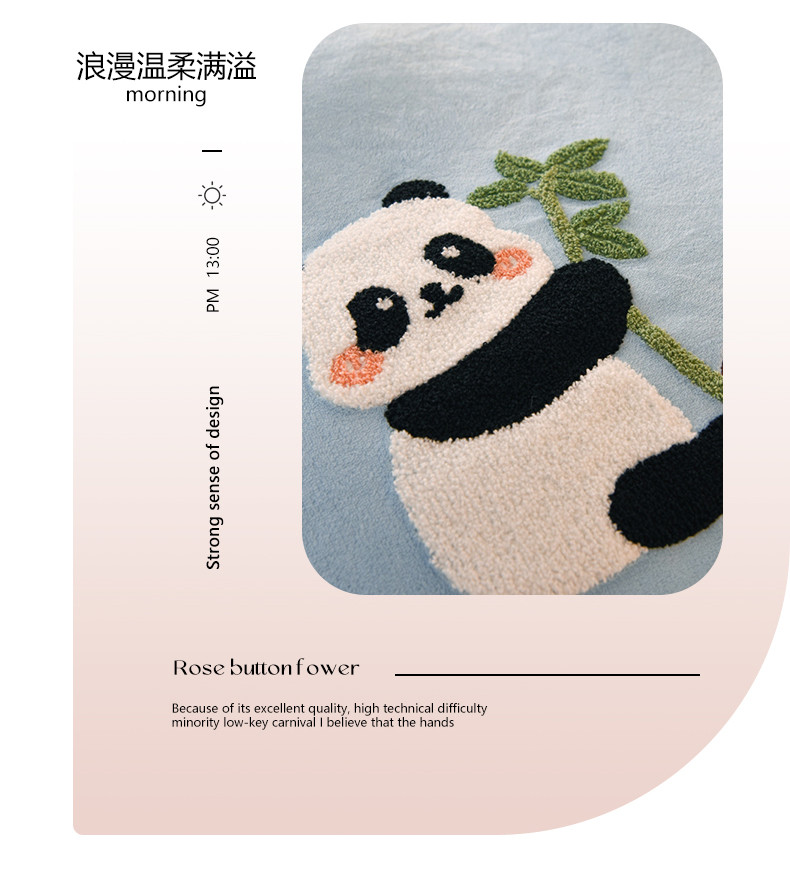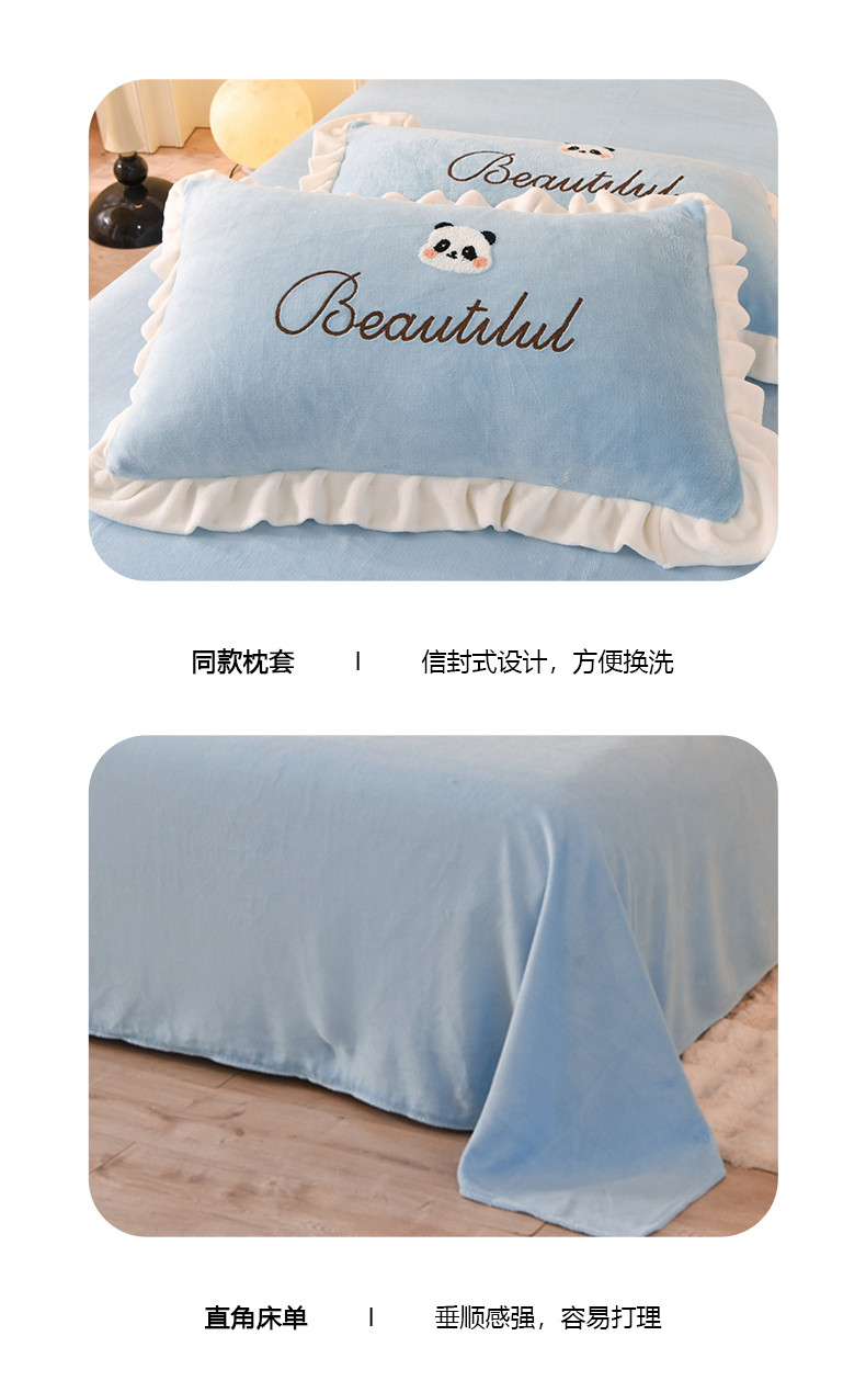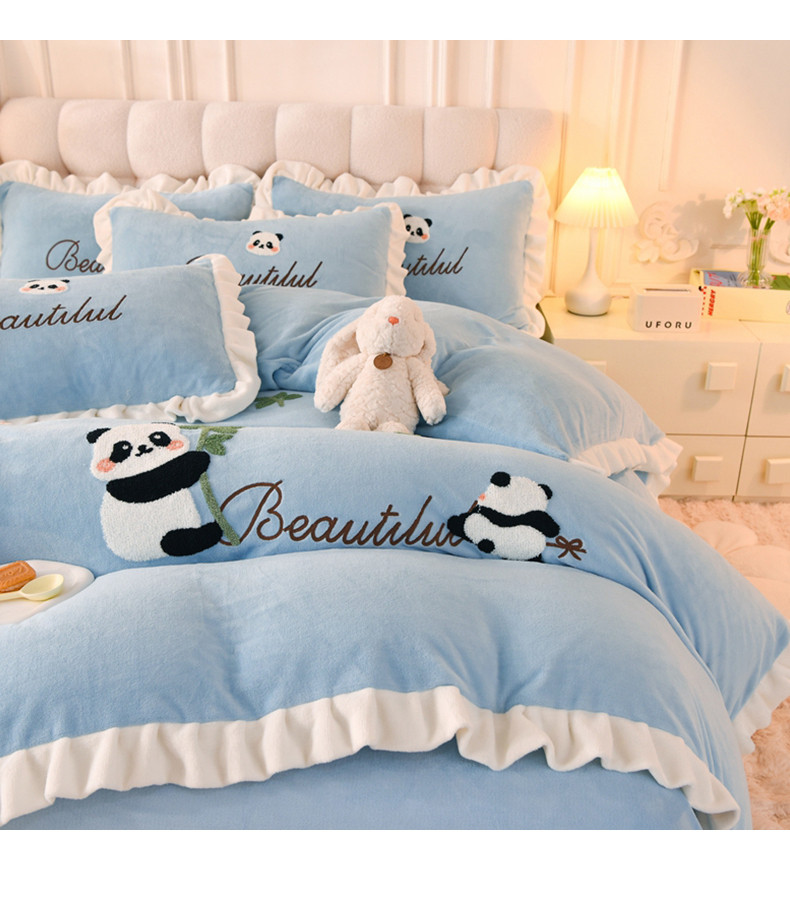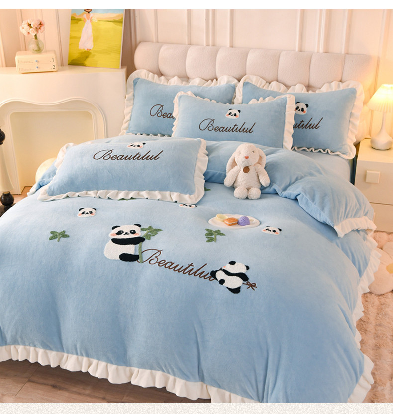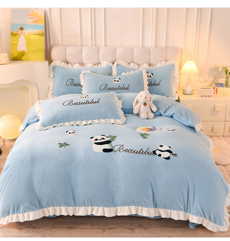 菲儿家纺 2023新款牛奶绒毛巾绣四件套 小熊猫-星空蓝
